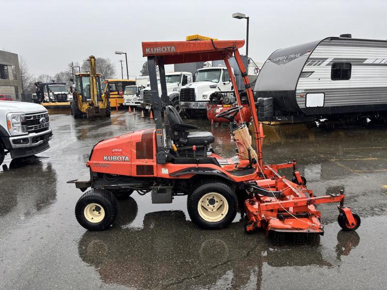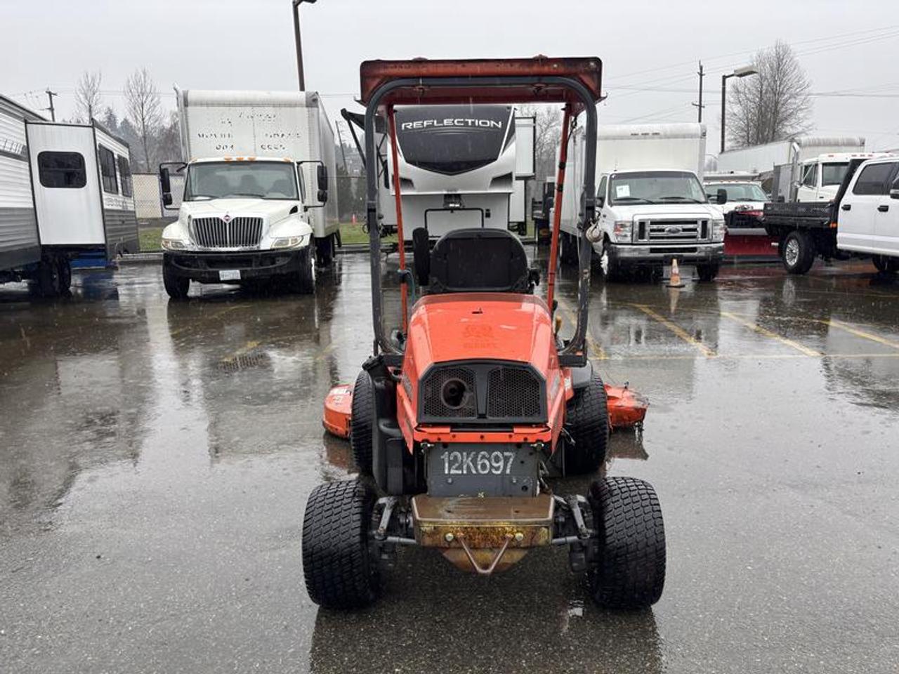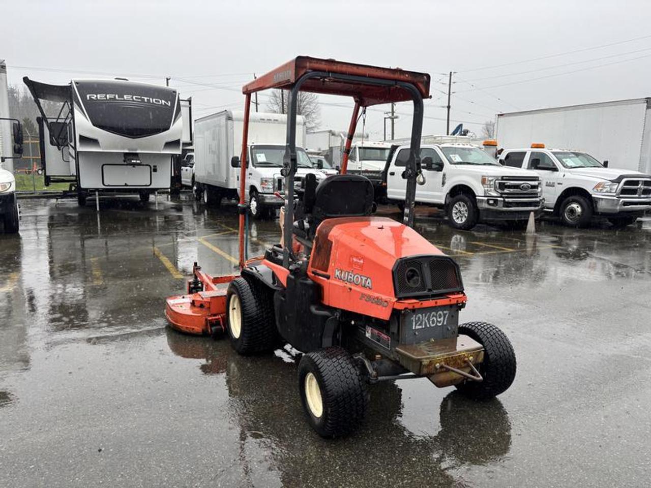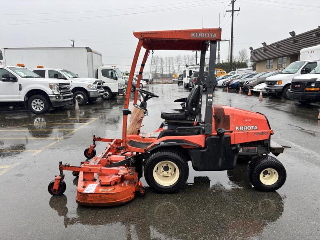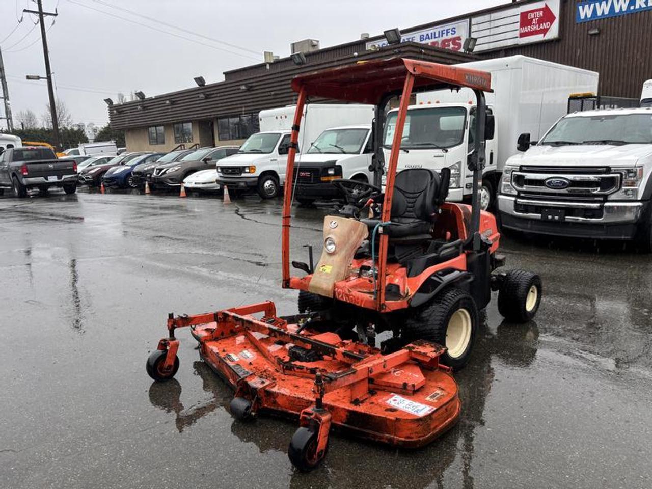2011 Kubota F3680 60 Inch Riding Lawn Mower Diesel 4 wheel Drive, yellow exterior, black interior. Made in Canada. Kubota 4 cylinder 36 HP 1499cc diesel engine, 4WD hydrostatic transmission, Front PTO, 60 inch front mower deck , 61.5 L fuel tank ,Power steering, Hydraulic lift, Enclosed cab ,A/C , Wet disc brakes, 1,400 KG total weight, 24x12.00-12 front tires , 18x9.50-8 rear tires. Vehicle come with registration. This listing is a former municipality asset and comes with BC registration $8,920.00 plus $375 processing fee, $9,295.00 total payment obligation before taxes. Listing report, warranty, contract commitment cancellation fee, financing available on approved credit (some limitations and exceptions may apply). All above specifications and information is considered to be accurate but is not guaranteed and no opinion or advice is given as to whether this item should be purchased. We do not allow test drives due to theft, fraud, acts of vandalism and undetectable impaired driving. Instead we provide the following benefits: Complimentary Warranty (with options to extend), Limited Money Back Satisfaction Guarantee on Fully Completed Contracts, Contract Commitment Cancellation, and an Open-Ended Sell-Back Option. Ask seller for details or call 604-522-REPO(7376) to confirm listing availability.