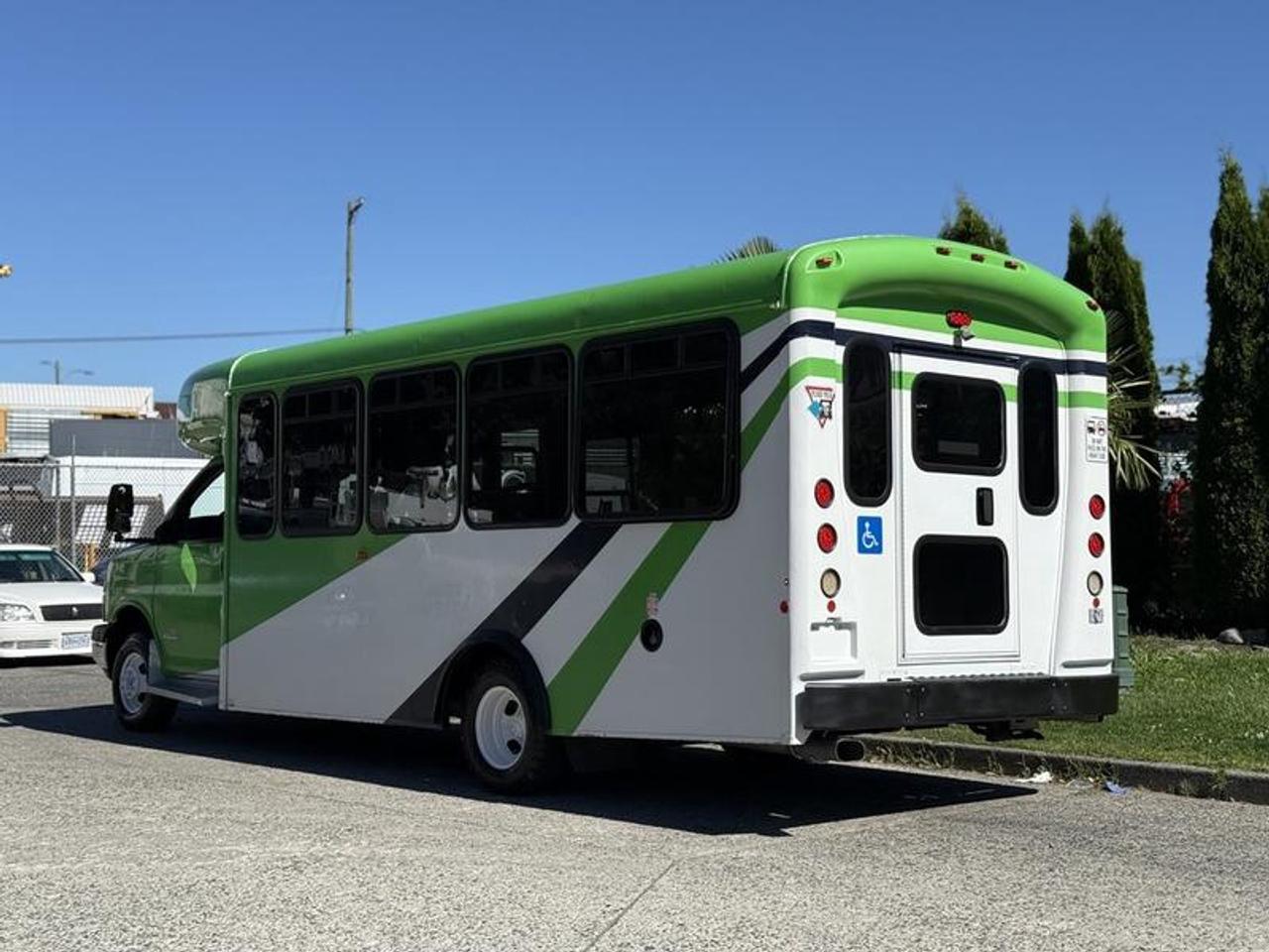 2013 Chevrolet Express G4500 Diesel 11-Passenger Bus with Wheelchair Ramp, 6.0L, 8 cylinder, 2 door, automatic, RWD, air conditioning, green exterior, blue interior, cloth. Duramax diesel. Certification and decal valid until January 2026. This item is currently OFFSITE. You must register an appointment with our office to schedule an offsite viewing. Appointments must be made a minimum of one business day in advance (and as defined by the days that Repo.com is open for business) before your appointment can be scheduled and confirmed. We may, at our own discretion, instead opt to transport smaller items to Repo.com's main yard for viewing purposes. $27,820.00 plus $375 processing fee, $28,195.00 total payment obligation before taxes. Listing report, warranty, contract commitment cancellation fee, financing available on approved credit (some limitations and exceptions may apply). All above specifications and information is considered to be accurate but is not guaranteed and no opinion or advice is given as to whether this item should be purchased. We do not allow test drives due to theft, fraud, acts of vandalism and undetectable impaired driving. Instead we provide the following benefits: Complimentary Warranty (with options to extend), Limited Money Back Satisfaction Guarantee on Fully Completed Contracts, Contract Commitment Cancellation, and an Open-Ended Sell-Back Option. Ask seller for details or call 604-522-REPO(7376) to confirm listing availability.