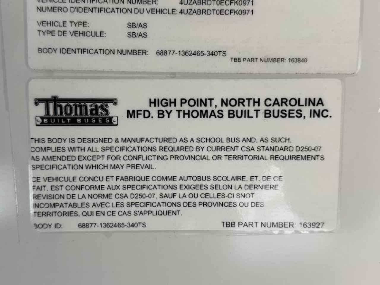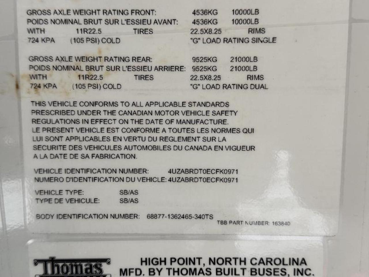 2014 Freightliner B2 Thomas 39-passenger diesel bus with Ricon wheelchair lift, powered by a 6.7L Cummins ISB 6-cylinder engine and automatic transmission. This full-size school or transit bus features a RWD drivetrain, air brakes, heated mirrors, battery switch, and an automatic door for efficient loading. The wheelchair lift supports up to 800 lbs, making it suitable for accessible transportation services. Finished in classic yellow with a grey vinyl interior, it includes AM/FM radio and a GVWR of 14,061 kg (31,000 lbs). Overall vehicle dimensions are 39 feet 3 inches long, 8 feet 2 inches wide, and 9 feet 10 inches high. Ideal for school fleets, private transportation, or community accessibility programs. This item is currently OFFSITE. You must register an appointment with our office to schedule an offsite viewing. Appointments must be made a minimum of one business day in advance (and as defined by the days that Repo.com is open for business) before your appointment can be scheduled and confirmed. We may, at our own discretion, instead opt to transport smaller items to Repo.com's main yard for viewing purposes. $88,000.00 plus $375 processing fee, $88,375.00 total payment obligation before taxes. Listing report, warranty, contract commitment cancellation fee, financing available on approved credit (some limitations and exceptions may apply). All above specifications and information is considered to be accurate but is not guaranteed and no opinion or advice is given as to whether this item should be purchased. We do not allow test drives due to theft, fraud, acts of vandalism and undetectable impaired driving. Instead we provide the following benefits: Complimentary Warranty (with options to extend), Limited Money Back Satisfaction Guarantee on Fully Completed Contracts, Contract Commitment Cancellation, and an Open-Ended Sell-Back Option. Ask seller for details or call 604-522-REPO(7376) to confirm listing availability.