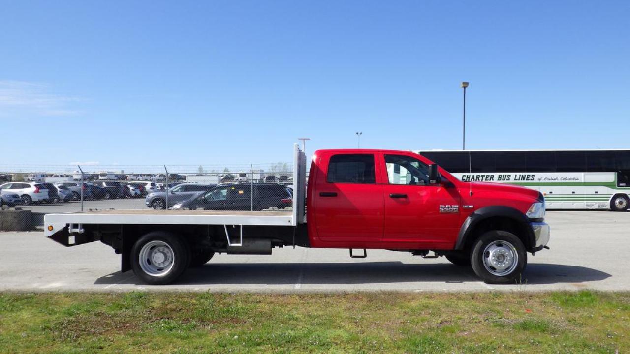 2015 RAM 5500 Crew Cab 12 Foot Flatdeck 4WD Dually, 6.4L V8 OHV 16V engine, 4 door, Automatic, 4WD, Red exterior.Bluetooth, Aux, USB, Power Windows, Power Locks,Power Mirrors, Trailer Brake Controller, Tow/Haul Mode, 4WD Selector, Tow Mirrors, Side Steps, Flat Deck Ratchets. Dimensions of Deck Length 12 Feet Width 8 Feet. Certificate and Decal Valid to April 2025 $36,710.00 plus $375 processing fee, $37,085.00 total payment obligation before taxes. Listing report, warranty, contract commitment cancellation fee, financing available on approved credit (some limitations and exceptions may apply). All above specifications and information is considered to be accurate but is not guaranteed and no opinion or advice is given as to whether this item should be purchased. We do not allow test drives due to theft, fraud, acts of vandalism and undetectable impaired driving. Instead we provide the following benefits: Complimentary Warranty (with options to extend), Limited Money Back Satisfaction Guarantee on Fully Completed Contracts, Contract Commitment Cancellation, and an Open-Ended Sell-Back Option. Ask seller for details or call 604-522-REPO(7376) to confirm listing availability.