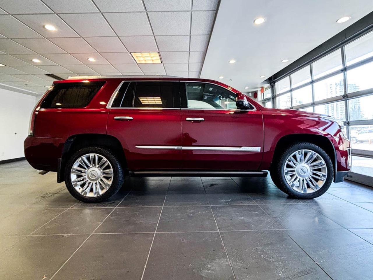 Experience uncompromising luxury and confidence in this 2017 Cadillac Escalade Platinum 4WD. Powered by a 6.2L V8 with Active Fuel Management, it delivers smooth performance and impressive towing capability. Magnetic Ride Control with Sport mode and power-retractable assist steps elevate every drive. Enjoy Bluetooth connectivity, HD Radio, and a 16-speaker Bose Centerpoint Surround Sound system. Advanced safety features including Lane Keep Assist, Lane Change Alert, Rear Cross-Traffic Alert, Side Blind Zone Alert, StabiliTrak with Rollover Mitigation, and Hill Start Assist provide added peace of mind.
