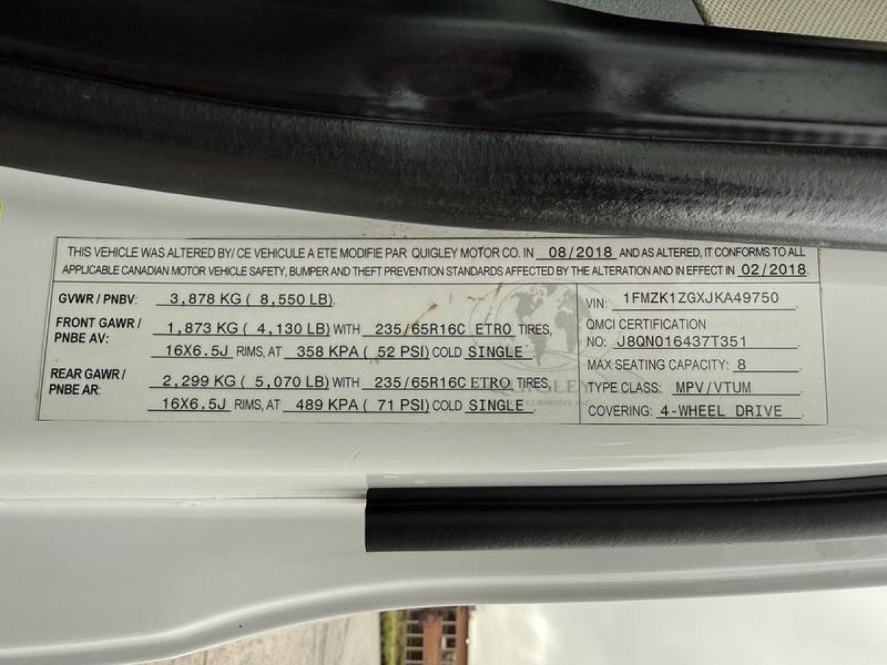2018 Ford Transit XLT 8-passenger van professionally converted by Quigley with a 4x4 drivetrain. Powered by a 3.5L EcoBoost V6 engine paired with an automatic transmission. Features include backup camera, rear heat and air conditioning, trailer brake controller, AUX switches, cruise control, and power accessories throughout. White exterior with black cloth interior. A versatile full-size passenger van equipped for both transport and off-road capability. This item is currently OFFSITE. You must register an appointment with our office to schedule an offsite viewing. Appointments must be made a minimum of one business day in advance (and as defined by the days that Repo.com is open for business) before your appointment can be scheduled and confirmed. We may, at our own discretion, instead opt to transport smaller items to Repo.com's main yard for viewing purposes. $39,870.00 plus $375 processing fee, $40,245.00 total payment obligation before taxes. Listing report, warranty, contract commitment cancellation fee, financing available on approved credit (some limitations and exceptions may apply). All above specifications and information is considered to be accurate but is not guaranteed and no opinion or advice is given as to whether this item should be purchased. We do not allow test drives due to theft, fraud, acts of vandalism and undetectable impaired driving. Instead we provide the following benefits: Complimentary Warranty (with options to extend), Limited Money Back Satisfaction Guarantee on Fully Completed Contracts, Contract Commitment Cancellation, and an Open-Ended Sell-Back Option. Ask seller for details or call 604-522-REPO(7376) to confirm listing availability.