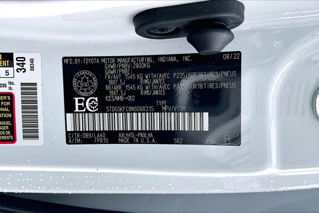 -55,681km -No accident claims -BC local -Naturally aspirated 2.5L 4 cylinder engine combined with three electric motors (2 in the front and 1 in the rear) making 245HP -CVT -AWD -Multi-zone A/C -AM/FM stereo with Bluetooth connection -Wireless AppleCarPlay and Android Auto integration -Navigation system -Rear entertainment system -JBL sound system -Heated leather steering wheel with audio controls and cruise control -Adaptive cruise control -Front collision mitigation -Lane keeping assist -Lane departure warning -Automatic headlights -Auto-dimming rearview mirror with universal garage door opener -Leather seats -Heated and cooled front seats -Powered front seats -Memory driver seat with power adjustable lumbar -Heated 2nd row captain seats -3rd row seats -Power windows and side mirrors -Heated power folding side mirrors -Rear defrost/defogger -Power door locks -Keyless entry -Push to start button -Remote rear passenger doors -Remote trunk release -Sunroof -LED headlights -Fog lamps -Front and rear parking aid -Back-up camera **Documentation fee $998**