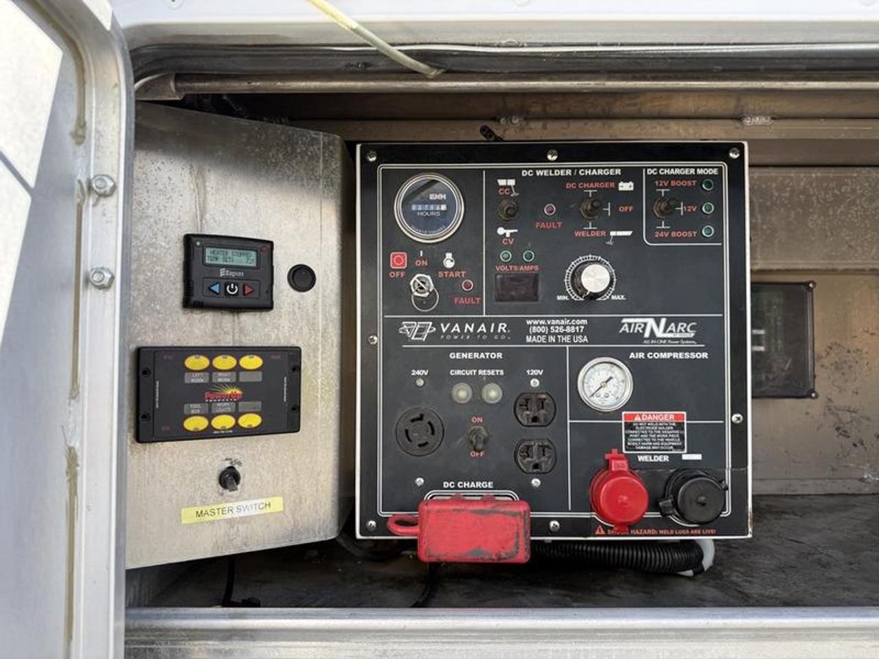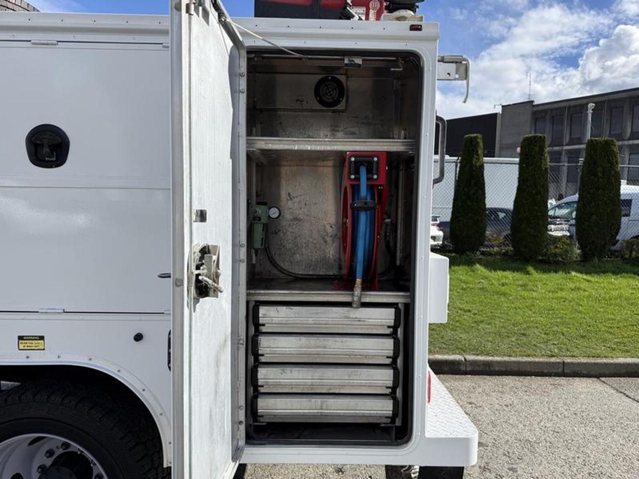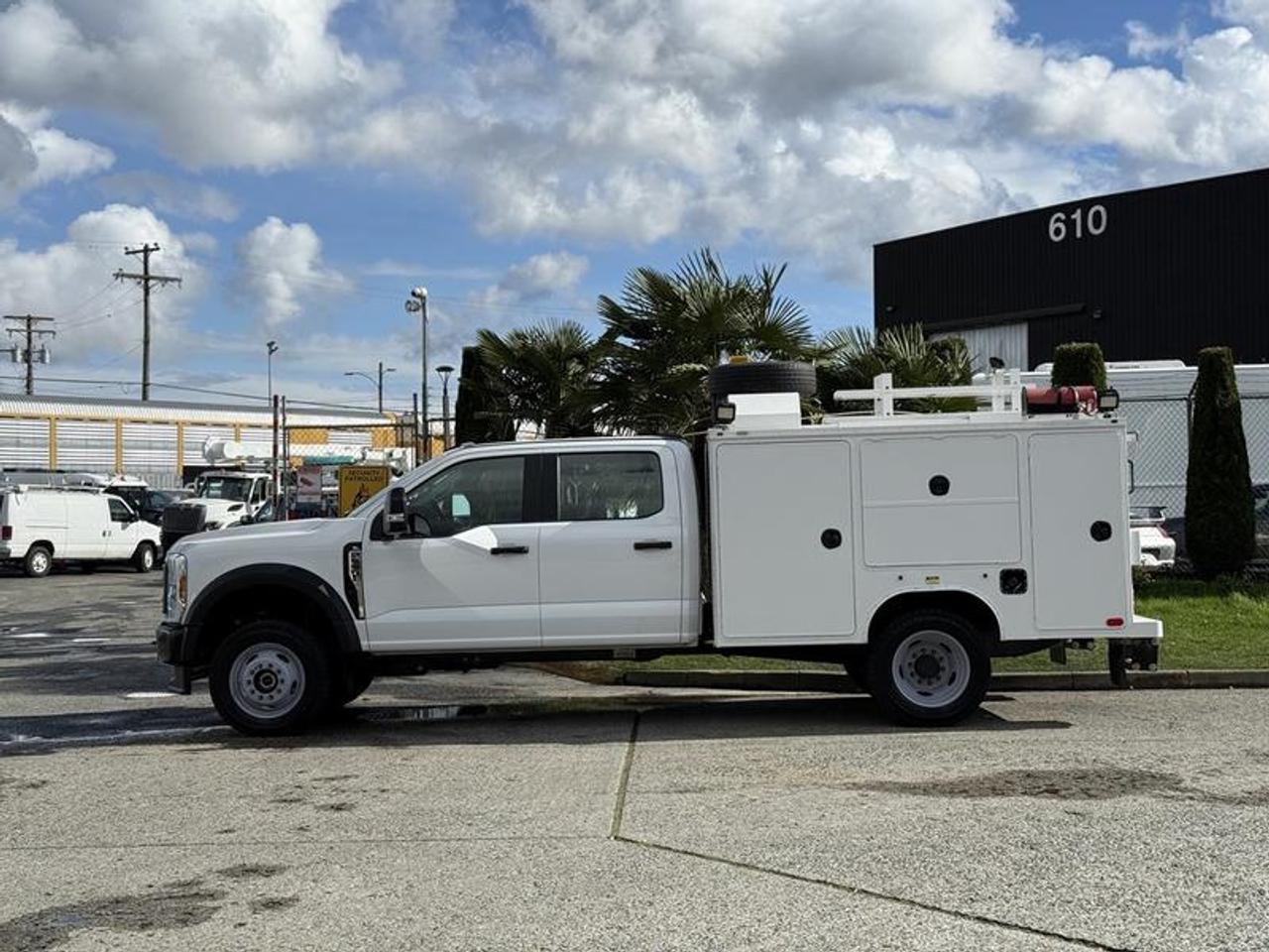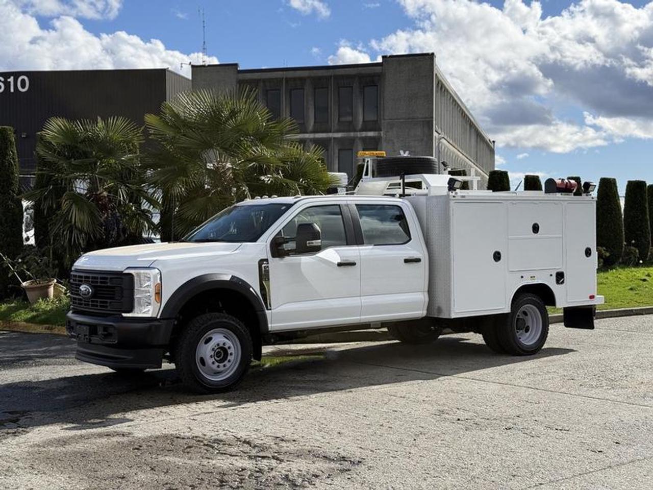 2024 Ford F-550 XL Crew Cab 4WD service truck equipped with a 7.3L V8 OHV 16V gas engine and automatic transmission, finished in white with a grey cloth interior. This four-door unit features four-wheel drive, cruise control, air conditioning, power windows, power door locks, and power mirrors. Built for heavy-duty work applications, it is outfitted with a VANAIR AirNArc compressor and welder (198 hours), KOHLER Command Pro engine, compressed air system with air tank, and power-up work lights. Additional features include an Espar heater, roof-mounted spare tire, roof rack, locking storage compartments, and trailer brake, making it well-suited for field service, construction, and mobile repair operations. This item is currently OFFSITE. You must register an appointment with our office to schedule an offsite viewing. Appointments must be made a minimum of one business day in advance (and as defined by the days that Repo.com is open for business) before your appointment can be scheduled and confirmed. We may, at our own discretion, instead opt to transport smaller items to Repo.com's main yard for viewing purposes. $148,820.00 plus $375 processing fee, $149,195.00 total payment obligation before taxes. Listing report, warranty, contract commitment cancellation fee, financing available on approved credit (some limitations and exceptions may apply). All above specifications and information is considered to be accurate but is not guaranteed and no opinion or advice is given as to whether this item should be purchased. We do not allow test drives due to theft, fraud, acts of vandalism and undetectable impaired driving. Instead we provide the following benefits: Complimentary Warranty (with options to extend), Limited Money Back Satisfaction Guarantee on Fully Completed Contracts, Contract Commitment Cancellation, and an Open-Ended Sell-Back Option. Ask seller for details or call 604-522-REPO(7376) to confirm listing availability.