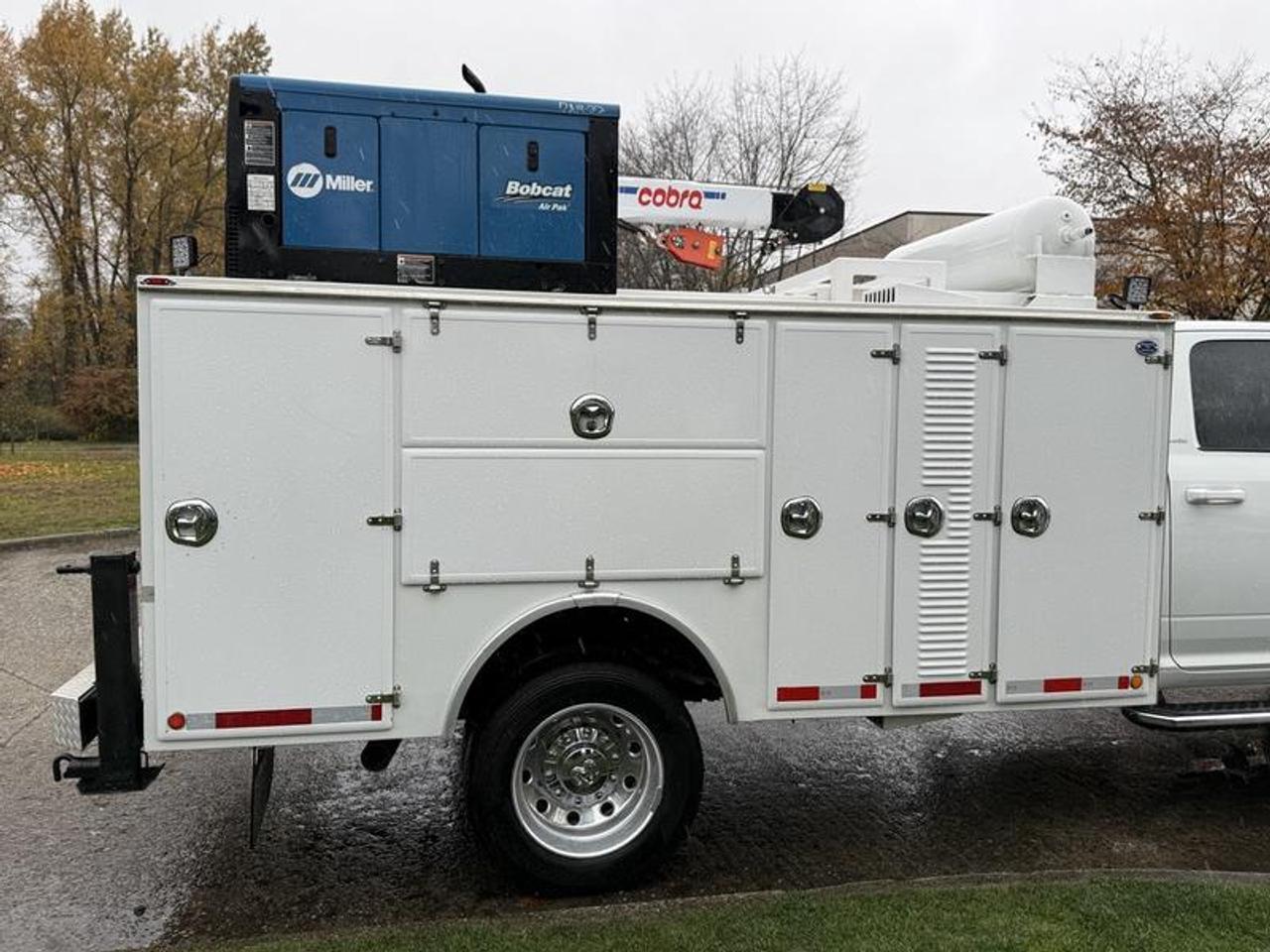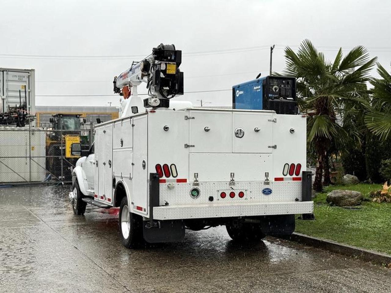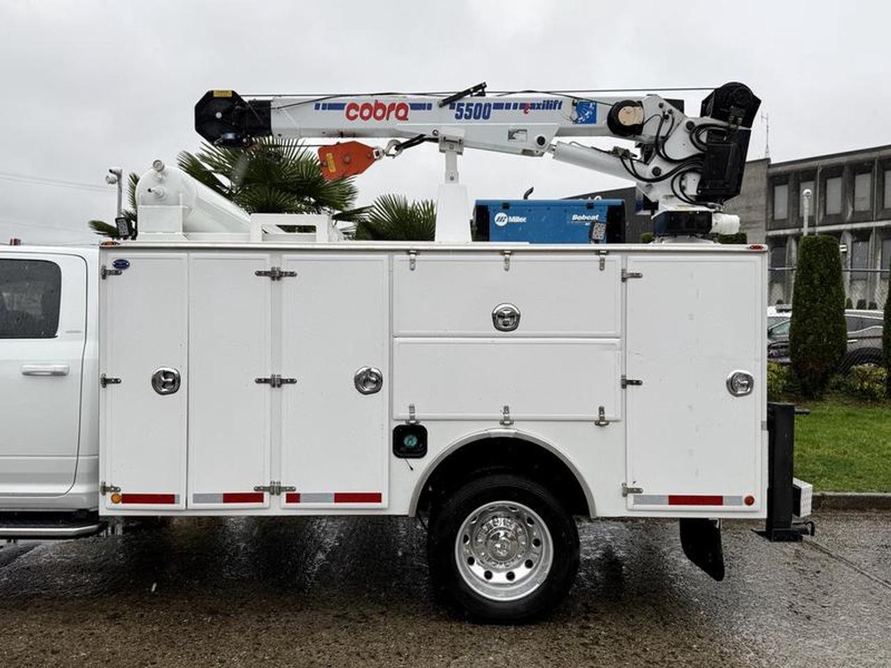 This 2024 Ram 5500 Laramie 4x4 crew cab Cummins service truck is equipped with a 6.7L 6-cylinder engine, automatic transmission and four-wheel drive, and features a white exterior with a black leather interior. It includes a Cobra 5500 crane, dual rear outriggers, extensive storage compartments with tool shelves, and a Bobcat 200 air compressor, generator, welder and battery charger. The interior is fitted with Alpine speakers, red seatbelts, AM/FM radio with Bluetooth, navigation, auxiliary switches, SOS emergency switch, reverse camera, front and rear parking sensors, 12V, USB and Type-C inputs, trailer brake, and power mirrors, windows and door locks, along with air conditioning, heat and cruise control. The truck measures approximately 25 feet 2 inches long, 8 feet 2 inches wide and 9 feet 7 inches high, with a GVWR of 8,846 kg (19,500 lb). The rear service box area is about 11 feet 3 inches long, 4 feet 2 inches wide and 3 feet 3 inches high. This item is currently OFFSITE. You must register an appointment with our office to schedule an offsite viewing. Appointments must be made a minimum of one business day in advance (and as defined by the days that Repo.com is open for business) before your appointment can be scheduled and confirmed. We may, at our own discretion, instead opt to transport smaller items to Repo.com's main yard for viewing purposes. $239,820.00 plus $375 processing fee, $240,195.00 total payment obligation before taxes. Listing report, warranty, contract commitment cancellation fee, financing available on approved credit (some limitations and exceptions may apply). All above specifications and information is considered to be accurate but is not guaranteed and no opinion or advice is given as to whether this item should be purchased. We do not allow test drives due to theft, fraud, acts of vandalism and undetectable impaired driving. Instead we provide the following benefits: Complimentary Warranty (with options to extend), Limited Money Back Satisfaction Guarantee on Fully Completed Contracts, Contract Commitment Cancellation, and an Open-Ended Sell-Back Option. Ask seller for details or call 604-522-REPO(7376) to confirm listing availability.
