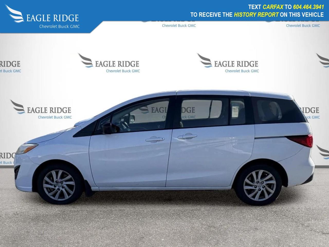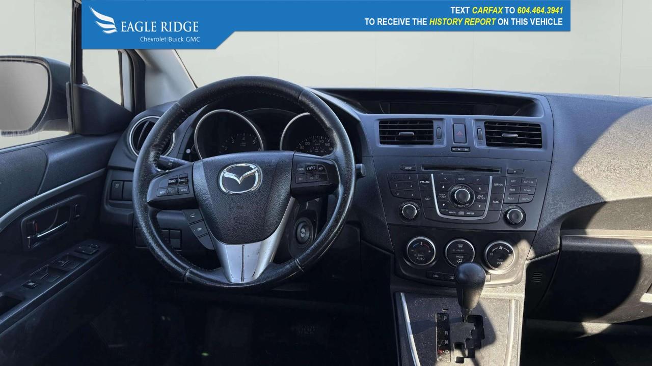 The 2012 Mazda Mazda5 GS is a compact 3-row wagon-style minivan powered by a 2.5-liter four-cylinder engine with a five-speed automatic transmission. It seats up to six or seven passengers with sliding rear doors and offers good maneuverability for its class. Standard features include air conditioning, power windows and locks, Bluetooth connectivity, and a versatile cargo area, making it a practical and efficient choice for families and everyday driving.