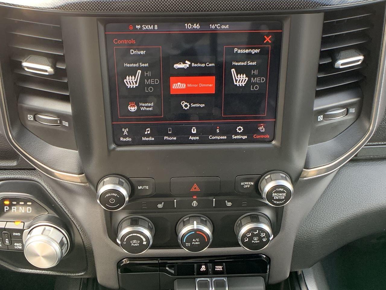 6 Speakers, Active Noise Control System, Air Conditioning, Alloy wheels, Auto-dimming door mirrors, Black Dual Exhaust Tips, Brake assist, Bucket Seats, Electronic Stability Control, Hands-Free Communication w/Bluetooth, Heated door mirrors, Heavy-Duty Engine Cooling, HEMI Badge, Illuminated entry, Leather steering wheel, Outside temperature display, ParkView Rear Back-Up Camera, Power door mirrors, Power driver seat, Power steering, Power windows, Rear 60/40 Split Folding Bench Seat, Rear step bumper, Rear Wheelhouse Liners, Remote keyless entry, Split folding rear seat, Steering wheel mounted audio controls, Turn signal indicator mirrors, Wheels: 18" x 8" Black Painted Aluminum.