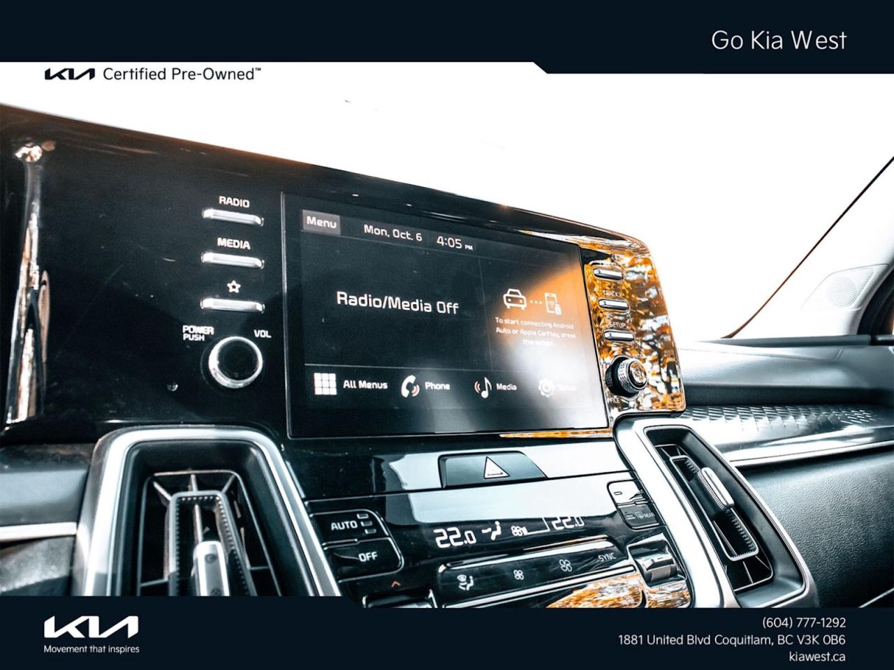 If you are interested and need more information call or message our sales team, we will be glad to help you now!Our knowledgeable sales staff will help assist you with every step. To book a test drive or receive further information give us a call at (604)777-1292 or email us: sales@kiawest.comNew to Canada? Ask about our New to Canada Program!IN HOUSE FINANCING, IN HOUSE LEASING AVAILABLE O.A.C.*All Cars have Dealer Preparation (Detail & Fuel) for $995 as additional services. Price shown DOES NOT include Government Fees & Taxes, Insurance, or Licensing.This vehicle may be leased or financed by anyone*, however, due to the recent increase in fraudulent vehicle purchase activity, Go Kia West reserves the right to decline any form of payment, including but not limited to cash, bank draft, certified cheque, EFT, or credit card. *on approved credit, see dealer for details. Dealer# 50448**Due to the possibility of human error, we cannot guarantee the accuracy of the displayed information, the availability of this vehicle, or the accuracy of its photo or stock photo. Such information may not reflect exact vehicle colour, trim, options, price or other specifications. Please contact Go Kia West for verification or if you would like more information on this vehicle. **