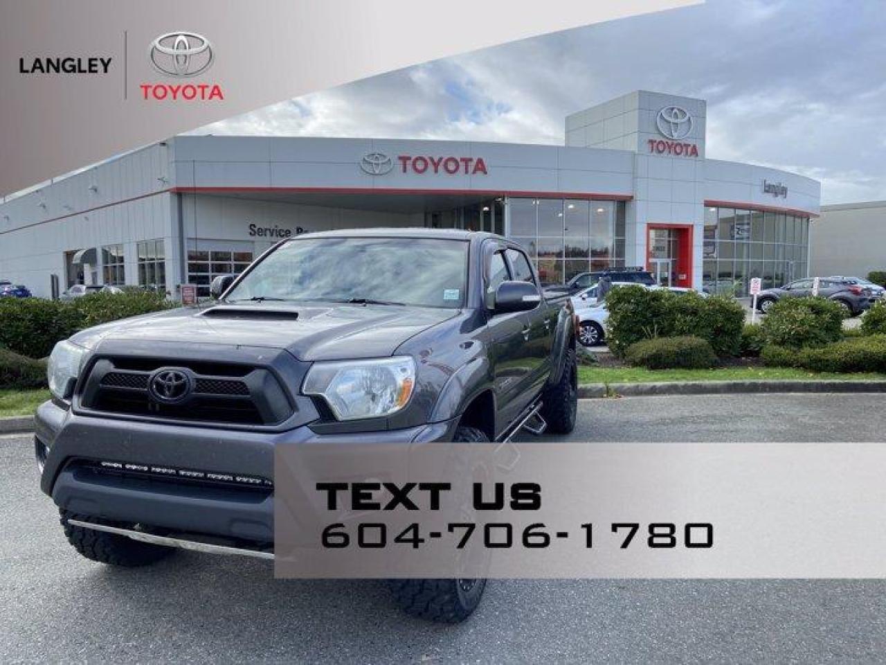TACOMA 4X4 DOUBLE CAB V6, Automatic, 4.0L 236HP/266 ft-lb torque, Power Steering, Four-Wheel Drive, Driver Air Bag, Passenger Air Bag, Front Side Air Bag, ABS, Traction Control, Stability Control, Back-Up Camera, Brake Assist, Tire Pressure Monitor, Cruise Control, Automatic Headlights, Integrated Turn Signal Mirrors, Auto-Dimming Rearview Mirror, AM/FM Stereo, Satellite Radio, CD Player, MP3 Player, Auxiliary Audio Input, Steering Wheel-Audio Controls, Bluetooth, Air Conditioning, Heated Front Seats, Power Windows, Power Door Locks, Keyless Entry, Power Mirrors, Running Boards*Why Buy from Langley Toyota*We offer financing for Good Credit, Bad Credit, No Credit! We will find you a vehicle that works for your situation, guaranteed! Call (604) 530-3156 - Book a test drive today! Dealer #9497 * Visit Us Today * Come in for a quick visit at Langley Toyota, 20622 Langley Bypass, Langley, BC V3A 6K8*Stop By Today*Test drive this must-see, must-drive, must-own beauty today at Langley Toyota, 20622 Langley Bypass, Langley, BC V3A 6K8.