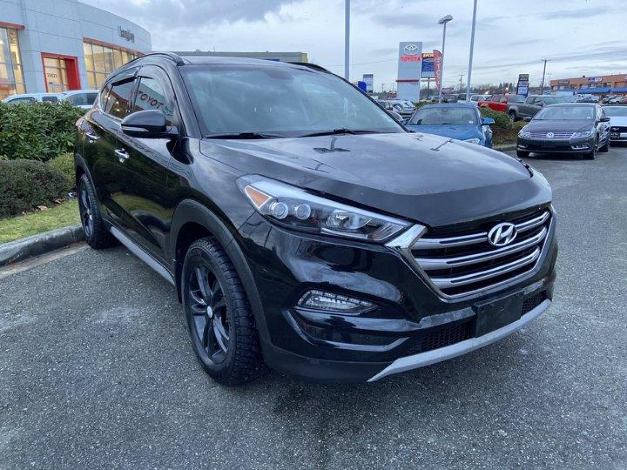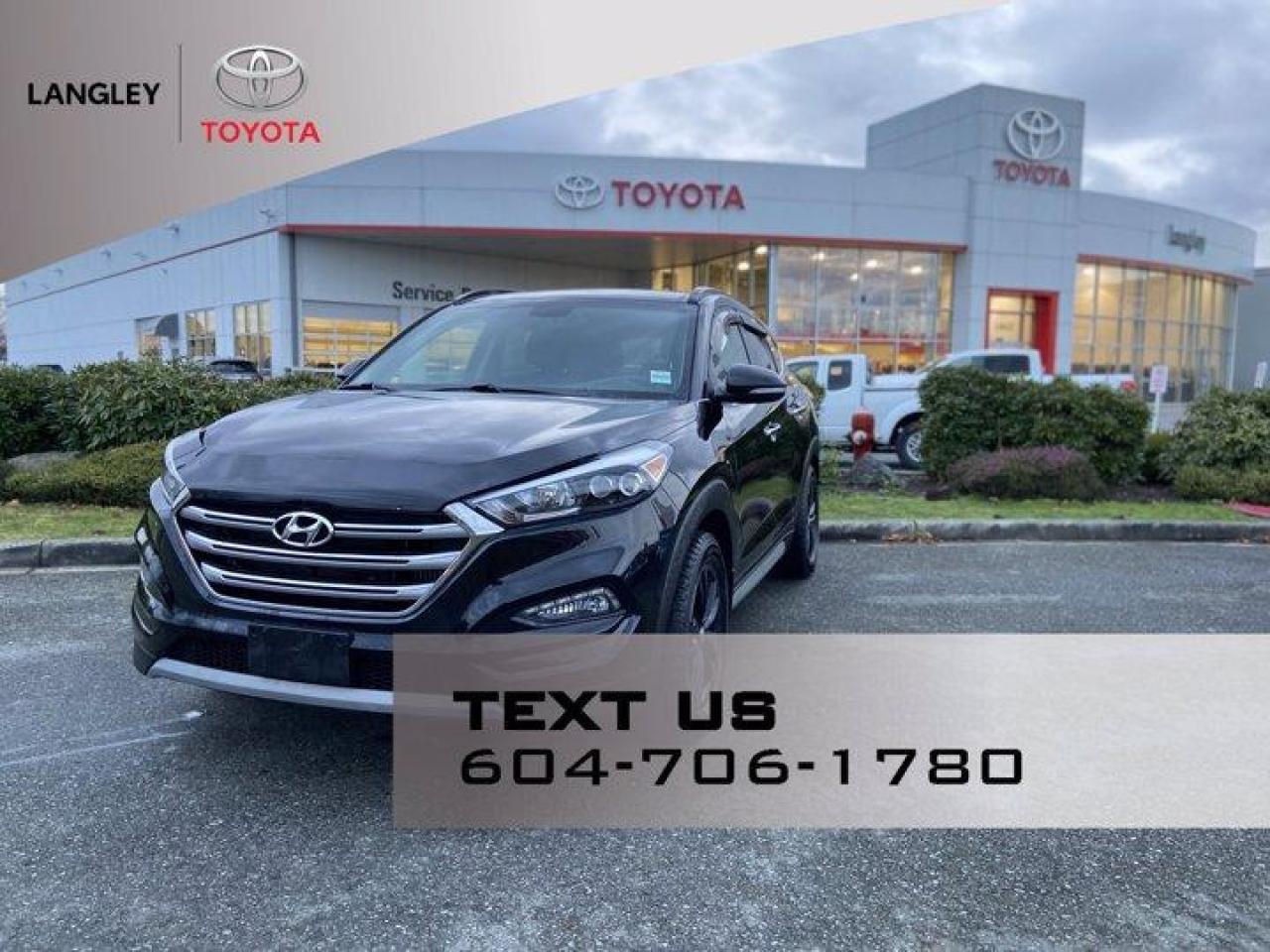 *2017 Hyundai Tucson Limited comes with the following.**Intercooled Turbo Regular Unleaded I-4, 175 hp @ 5500 rpm, 195 ft-lb @ 1500 rpm, Power Steering, All-Wheel Drive, 7-Speed EcoShift Dual Clutch, Back-Up Camera, Brake Assist, Blind Spot Monitor, Cross-Traffic Alert, Cruise Control, Daytime Running Lights, Automatic Headlights, Integrated Turn Signal Mirrors, Steering Wheel-Audio Controls, Navigation System, Smart Device Integration, Apple CarPlay, Android Auto, Bluetooth Connection, Multi-Zone Air Conditioning, Climate Control, Heated Front/Rear Seat(s), Heated Steering Wheel, Power Windows, Power Door Locks, Keyless Entry, Power Mirror(s), Heated Mirrors, Power Liftgate, Hands-Free Liftgate, Variable Speed Intermittent Wipers, Passenger Capacity 5. **Sun/Moon Roof.**Why Buy from Langley Toyota *We offer financing for Good Credit, Bad Credit, No Credit! We will find you a vehicle that works for your situation, guaranteed! Call (604) 530-3156 - Book a test drive today! Dealer #9497 * Visit Us Today * Come in for a quick visit at Langley Toyota, 20622 Langley Bypass, Langley, BC V3A 6K8