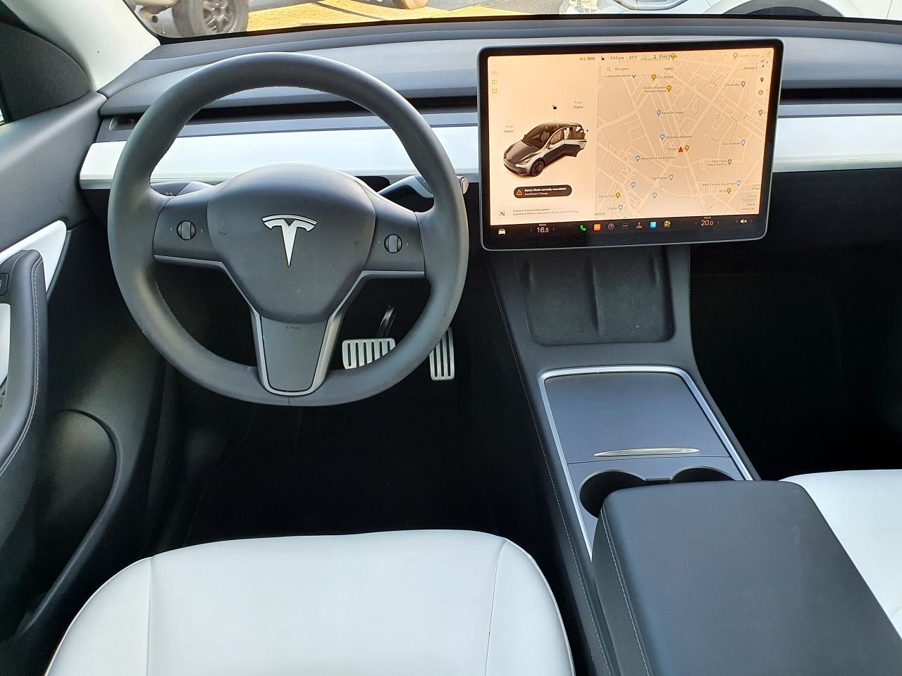 - Premium Five-Seat Interior: Sophisticated black and white vegan leather seating with a spacious glass roof.