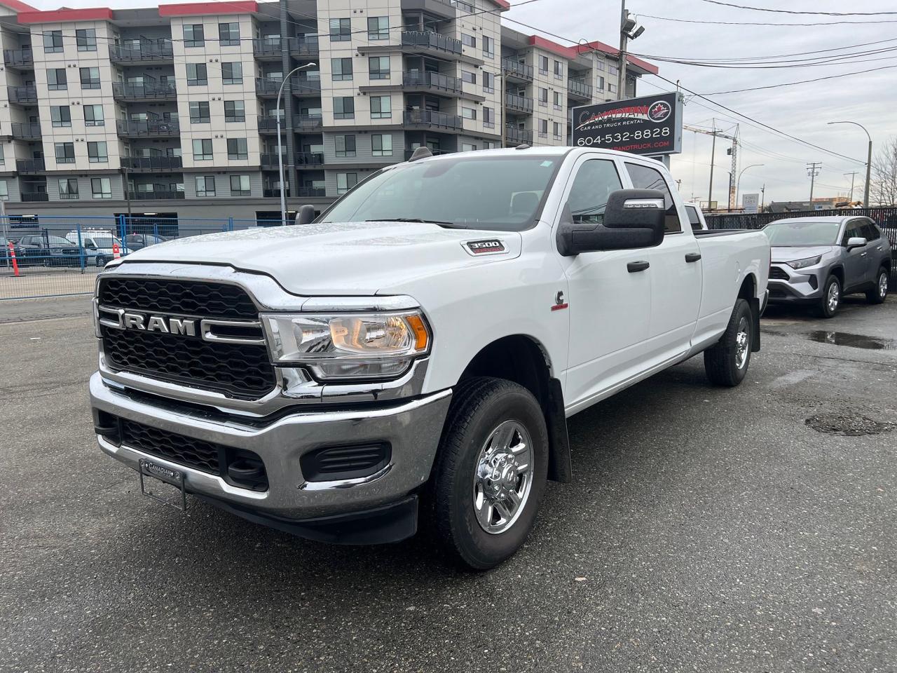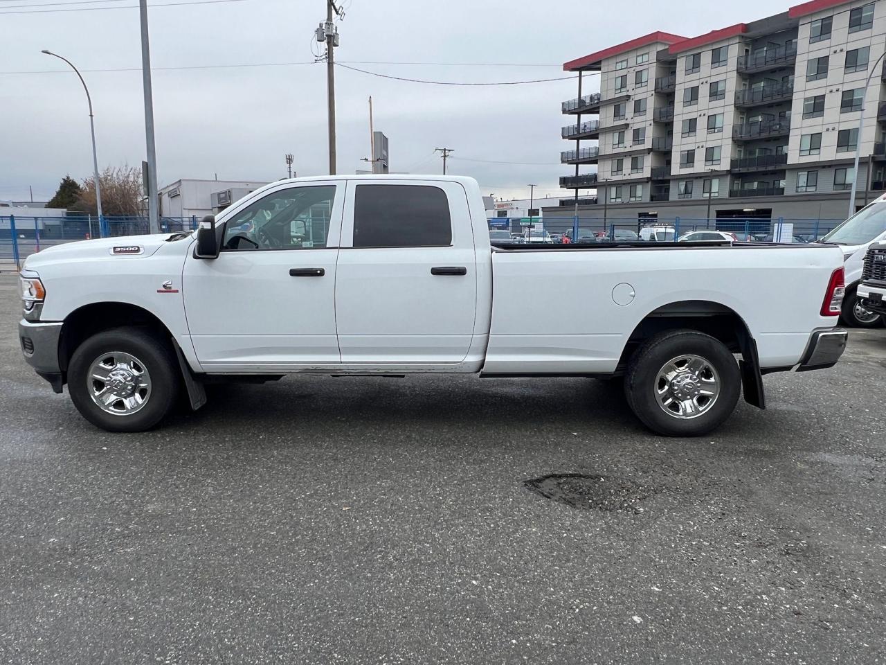 2023 Ram 3500 Tradesman with the 6.7L cummins diesel engine, 4x4, long box, bed liner, reverse camera, 6 passenger capacity, cloth interior, am/fm/bluetooth, apple carplay/android auto, adjustable steering wheel and so much more!