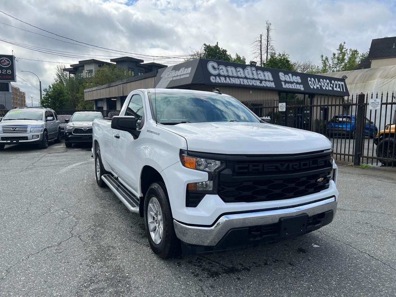 2024 Chevrolet Silverado 1500 regular cab with the 5.3L V8 engine, automatic, rear wheel drive, 8" long box, bluetooth, apple carplay, reverse camera, bench seat with the capacity to seat 3 occupants