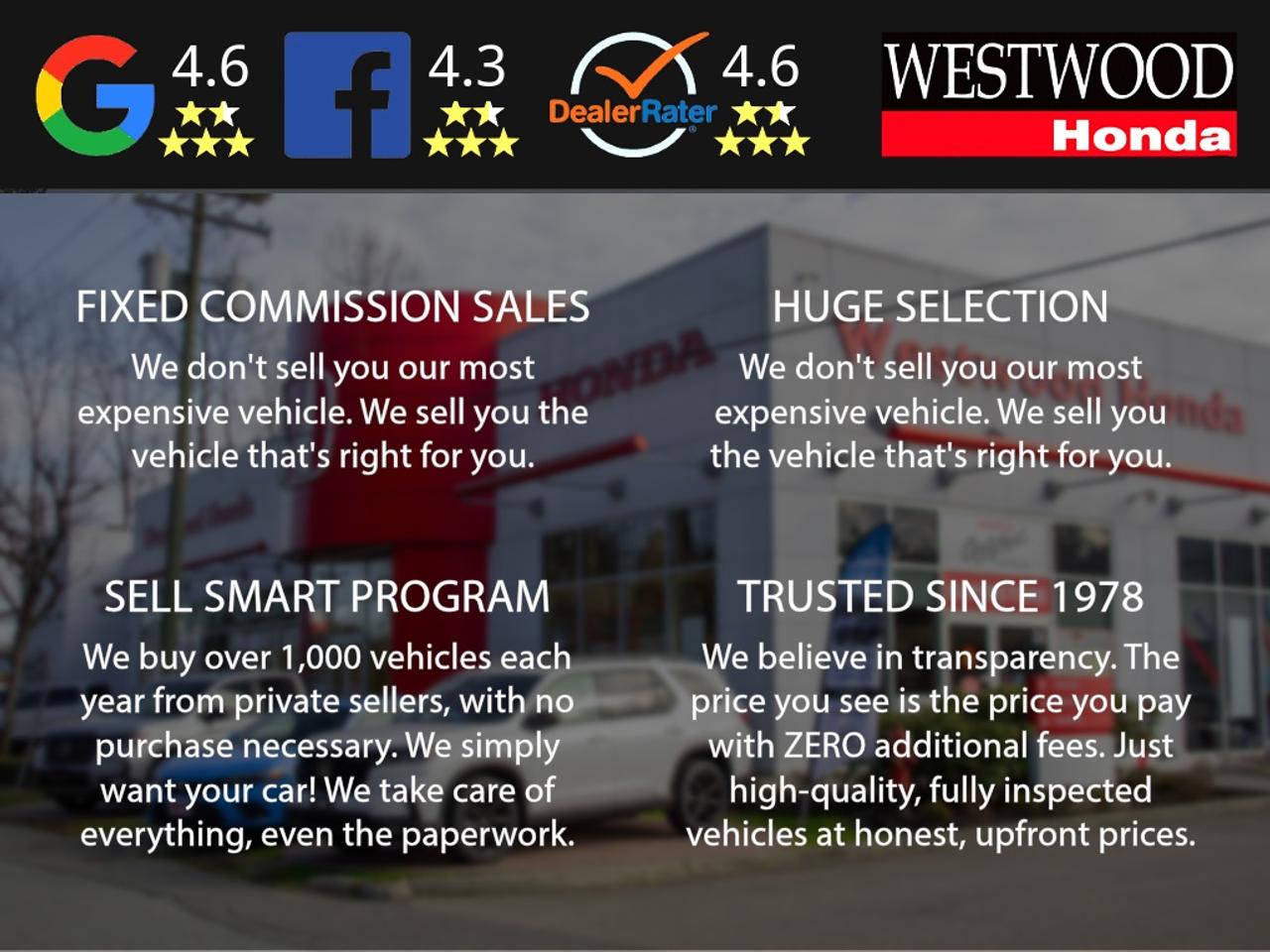 Add $795 Dealer Fee. Includes Buysmart Registration. Plus taxes and Govt. Levies.One low hassle free pre negotiated price, Air Conditioning, Brake assist, Electronic Stability Control, Heated Front Bucket Seats, Lane departure: Lane Keeping Assist System (LKAS) active, Leather-Trimmed Seating Surfaces, Navigation System, Power moonroof.We stand behind our used Hondas! Our certified program gives Hondas 5 years old and newer a 7 year / 160,000km transferable powertrain warranty and includes full service records of the services performed to meet our CUV standards. Westwood Honda's Buy Smart Standard program includes a thorough safety inspection, detailed Car Proof report that shows the history of the car your buying,2 months 5000 km powertrain warranty and 6 months tire, brakes, battery, and bulbs. We give you a complete professional detail, full tank of gas and our best low price first which is based on live market pricing to guarantee you tremendous value and a non-stressful, no-haggle experience. And youll get 3 free months of Sirius radio where equipped! Buy your car from home.Just click build your deal to start the process. It is easy 7 day Exchange. Westwood Honda DL #31286.