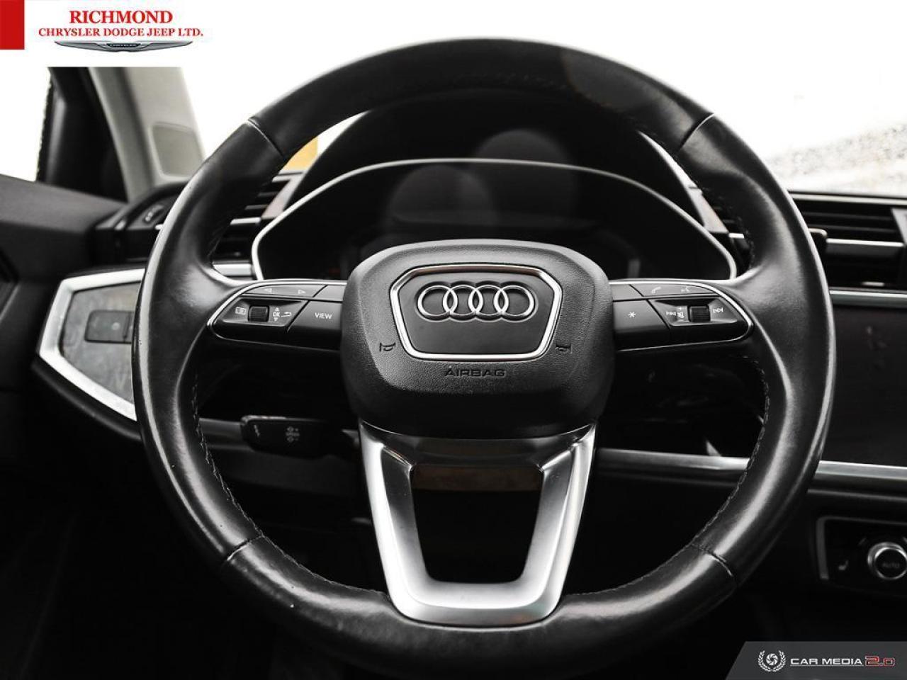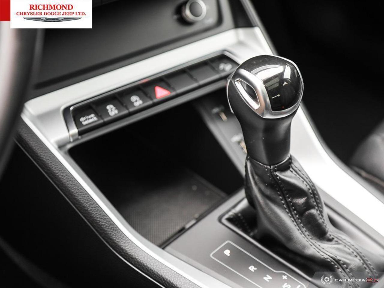 2021 Audi Q3 PREMIUM Mythos Black Metallic ABS brakes, Alloy wheels, Electronic Stability Control, Exterior Parking Camera Rear, Front dual zone A/C, Heated door mirrors, Heated Front Bucket Seats, Heated front seats, Illuminated entry, Low tire pressure warning, Rain sensing wipers, Rear anti-roll bar, Steering wheel mounted audio controls, Tilt steering wheel, Traction control, Wheels: 7J x 17'' 5-Twin Spoke Design 2. ONE OWNER 2.0L 4-Cylinder TFSI 8-Speed Automatic with Tiptronic quattro Awards: * ALG Canada Residual Value Awards Richmond Chrysler Dodge Jeep wants to BUY YOUR CAR. That's right! 1. Bring your vehicle by and let us do a no hassle, market evaluation. 2. Bring by any documents that may increase the value or your vehicle. 3. Pick up a check. It's that easy. Find out why so many others have sold us their personal vehicle. Richmond Chrysler Dodge Jeep would like to invite you to experience our Market Value Pricing. Come see why so many people have saved money by purchasing from us. Let us show you why you made the right decision to come here. At Richmond Chrysler Dodge Jeep, WE BUY CARS. We will buy your car even if you don't buy ours! *$599 Documentation Fee and $199 Go Green Fee applicable to all used vehicles.