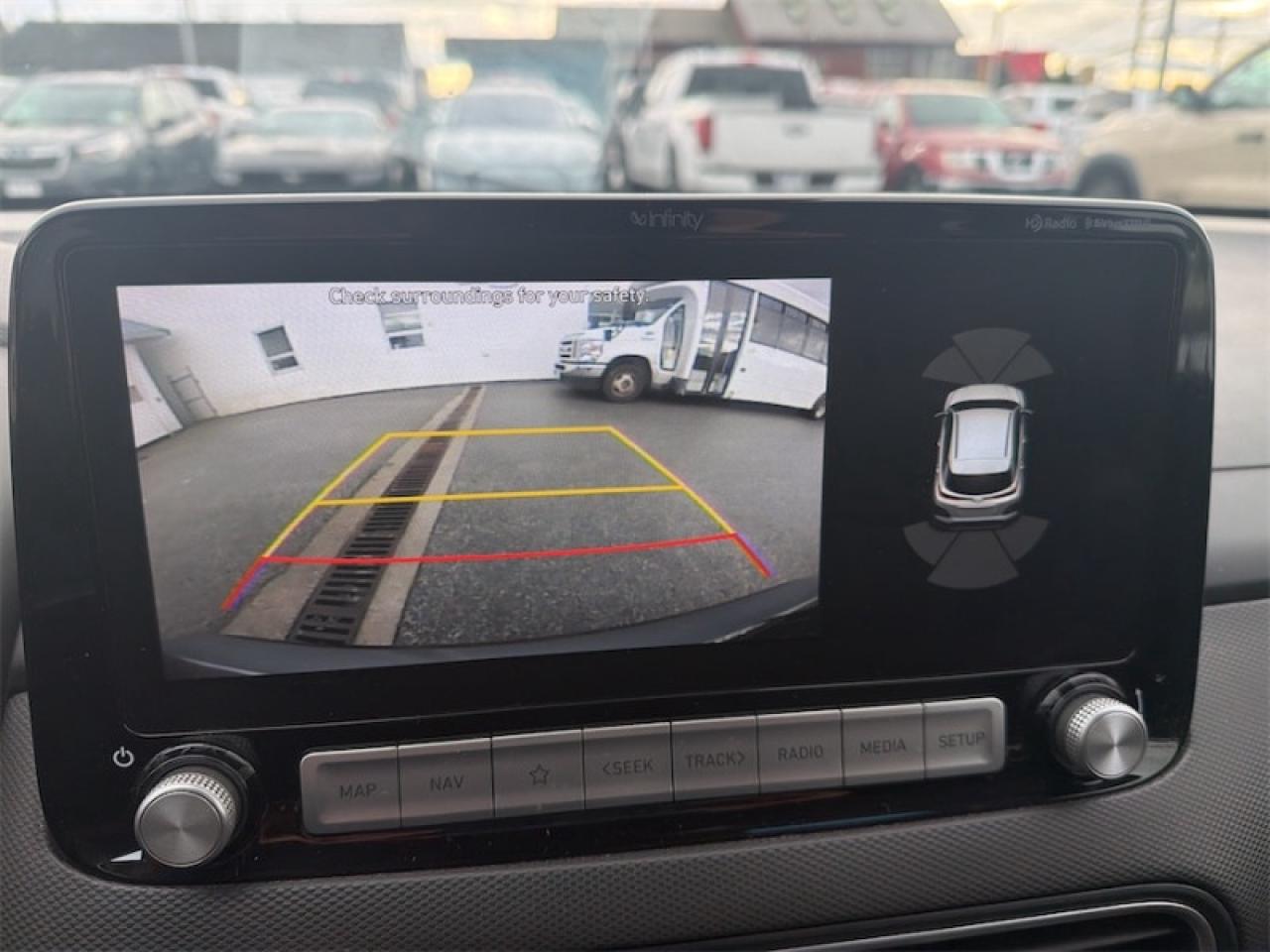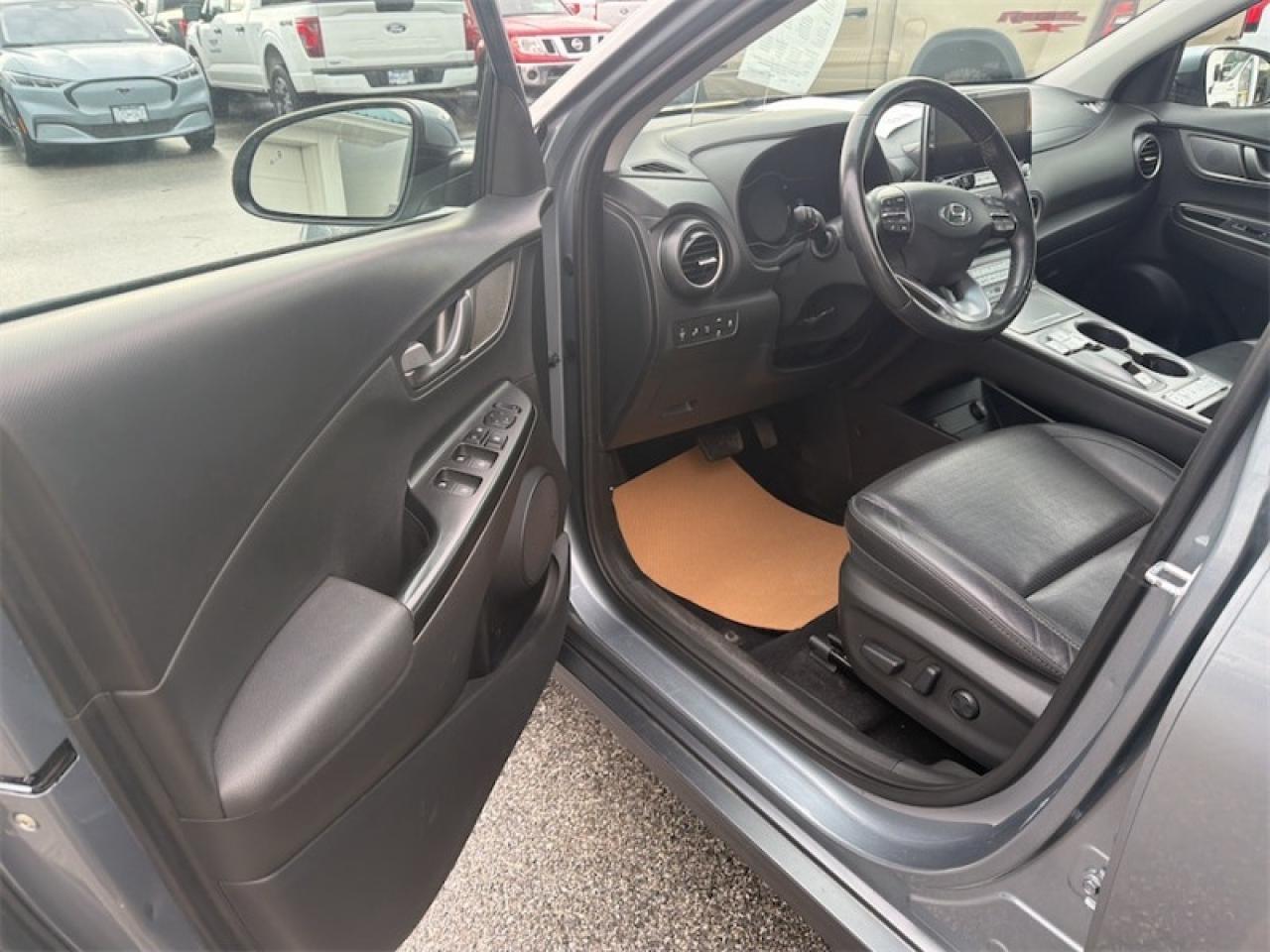 Our Kona Electric's trim level is Ultimate. This Kona Electric Ultimate it the highest trim level you can get and comes with a 65kWh lithium-ion polymer high-voltage battery offering over 400 kms on a single charge! Unique features include LED front headlights, ventilated leather seats, a large sunroof, heads up display and a larger 10.25 inch touch screen. It also comes with stylish aluminum wheels, a high tech lane keeping assist system and forward collision assist system, adaptive cruise control, blind spot collision warning, rear cross-traffic collision warning, and Infinity premium audio system, heated front seats and a heated steering wheel, Android Auto and Apple CarPlay and Hyundai's BlueLink connected vehicle system, a proximity keyless entry system and much more! This vehicle has been upgraded with the following features: Navigation, Sunroof, Heated Seats, Heated Steering Wheel, Infinity Premium Audio, Heads Up Display, Driver Assist.