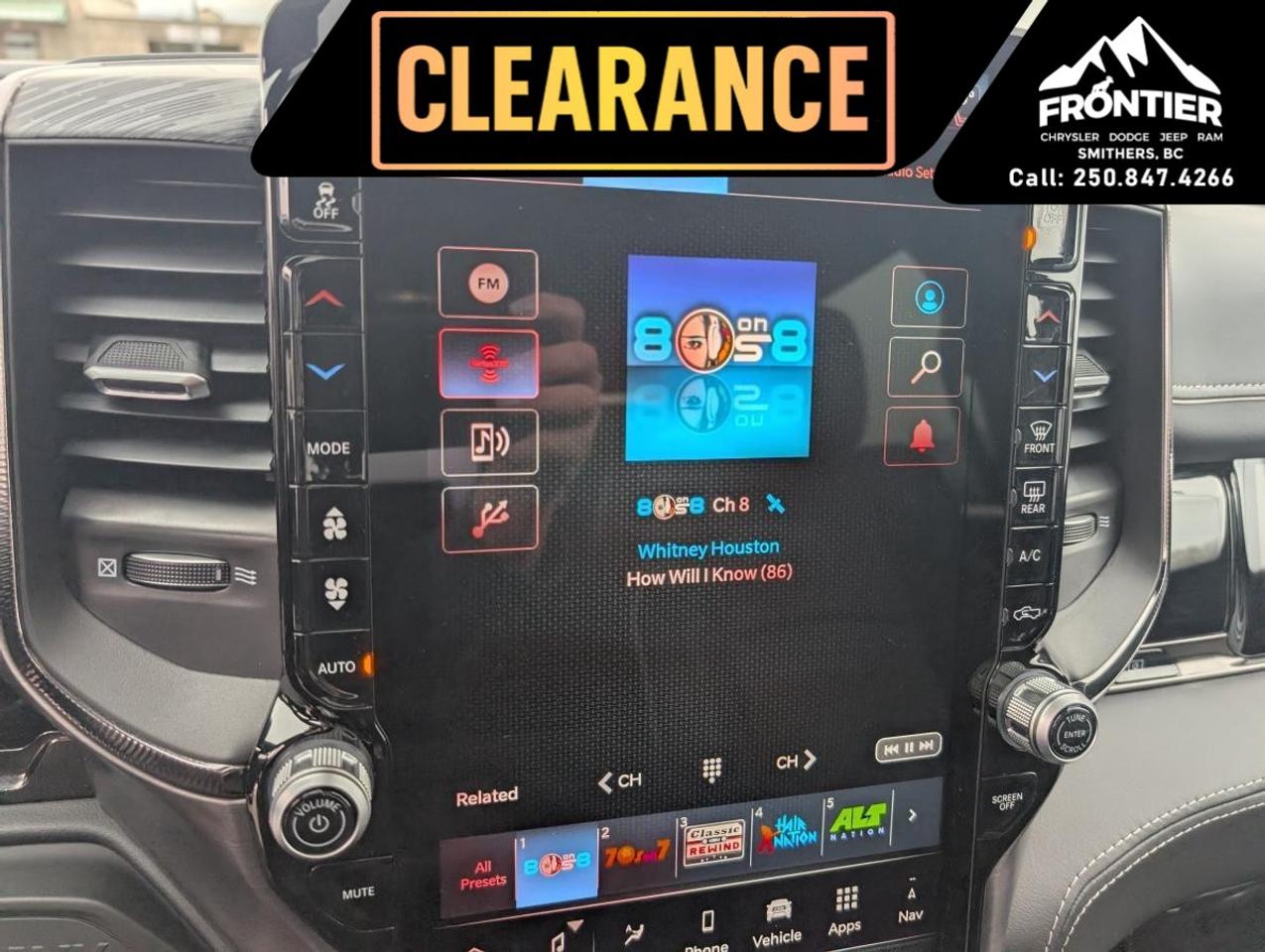 This truck is loaded with technology, including a large 14.4-inch Uconnect 5 NAV touchscreen, Apple CarPlay and Google Android Auto, and a premium 17-speaker Harman Kardon sound system for an immersive audio experience. Additional conveniences like remote start, dual wireless charging pads, and power adjustable seating make every drive easier.