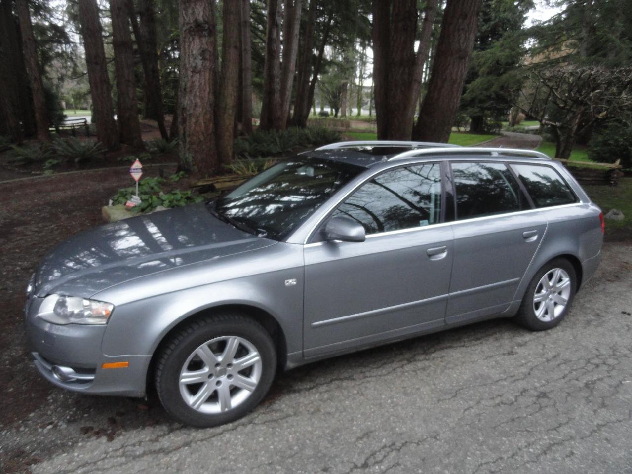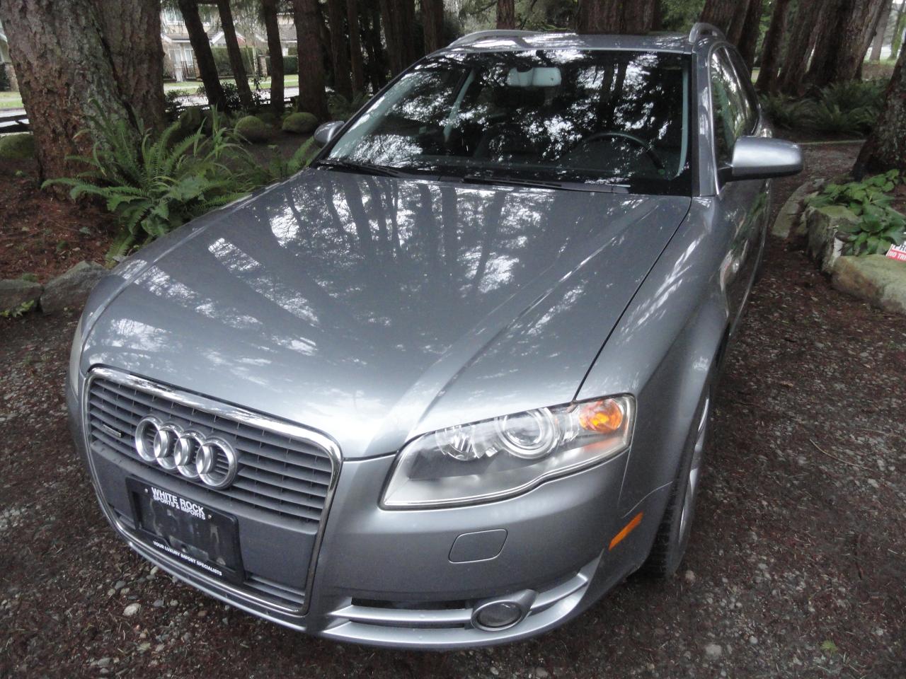 WAS$11900 ON SALE FOR $ 10900 / 2007 AUDI A4 QUATTRO STATION WAGEN / ONLY 92000 KM / GRAY WITH BLACK INTERIOR / 2.0L TURBO ENGINE / AUTO TRANSMISSION / ALL WHEEL DRIVE / LOCAL BC NORTH VANCOUVER ONE OWNER CAR / ACCEDENT FREE / SERVICE BY AUDI DEALER / COMES WITH SERVICE RECORDS / EXTRA SET SNOW TIRES AND RIMS / 2 SET KEYS / OWNER MANUALS / ELC DRIVES SEAT / ADJUSTABLE STEERING WHEEL / GLASS SUNROOF / CRUISE CONTROLE / ELC MIRRORS / POWER LOCKS / AC WORKS FINE / BRAKES LIKE NEW / COMES WITH CAR FAX / FOR MORE IINFORMATION ON THIS GORGEOUS STATION WAGEN CONTACT BART @ 604 536 4533 OR 778998 4533 TO ARRANGE AN APPOINTMENT. DEALER D 7663