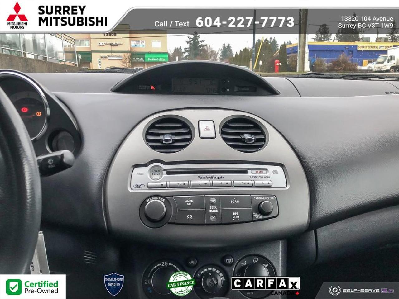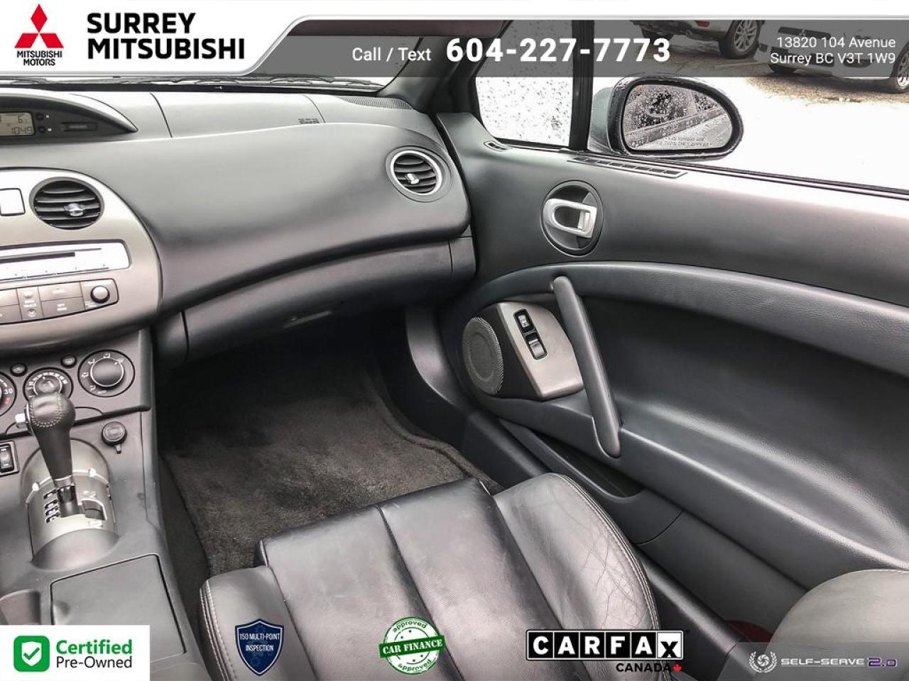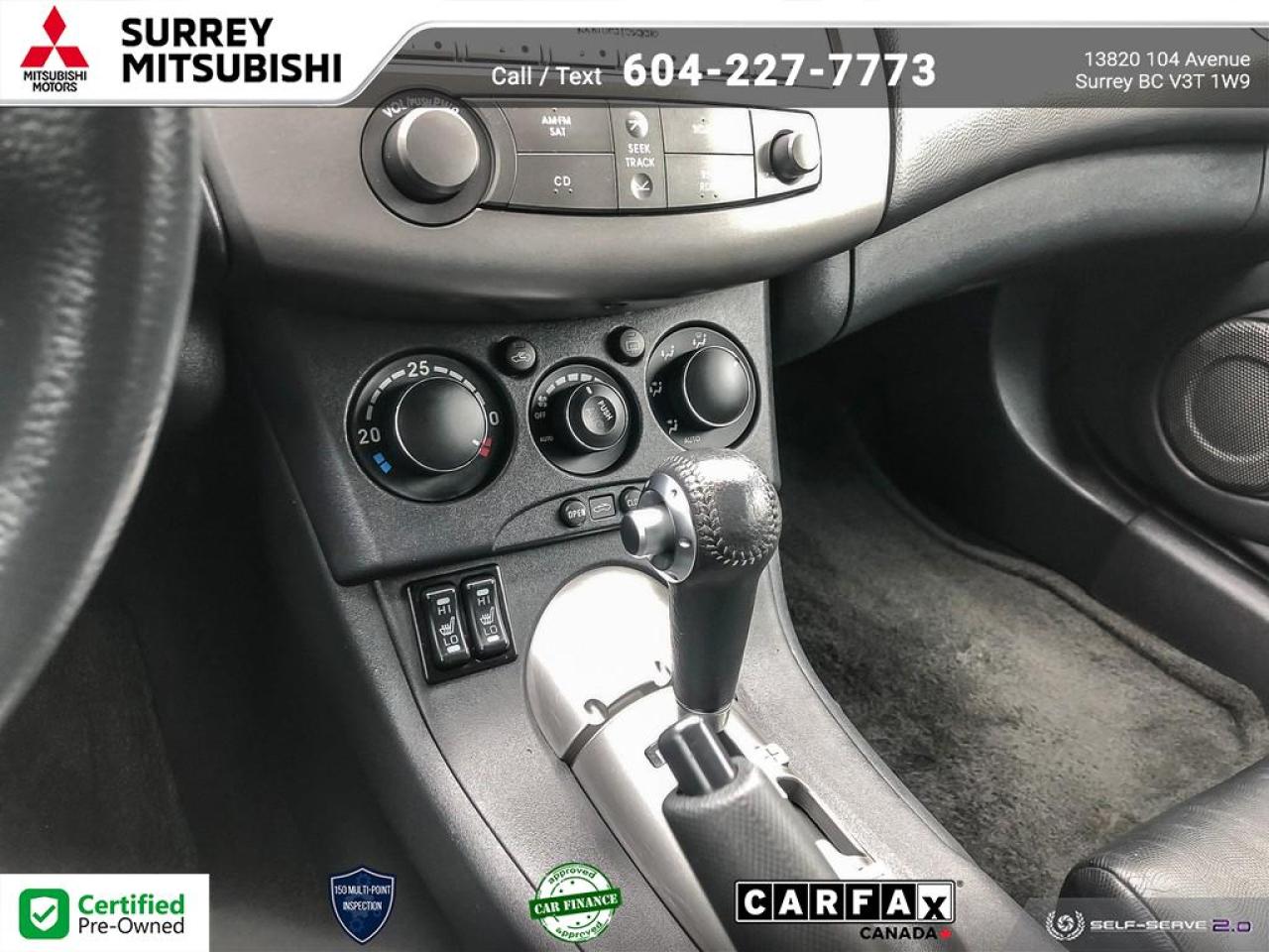 At Surrey Mitsubishi all vehicles are inspected by factory trained technicians, professionally detailed, and come with Carfax report and lien report.Shop with confidence at Surrey Mitsubishi and see why we are greater Vancouver's number one car superstore! We take all trades and offer financing for everyone! All prices are plus $695 prep fee, $159 wheel lock fee, $395 doc fee, $1495 finance fee or $695 Cash Admin Fee . All credit is cod. See Dealer for details.