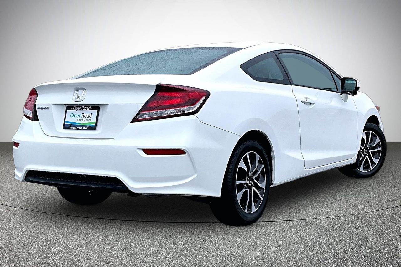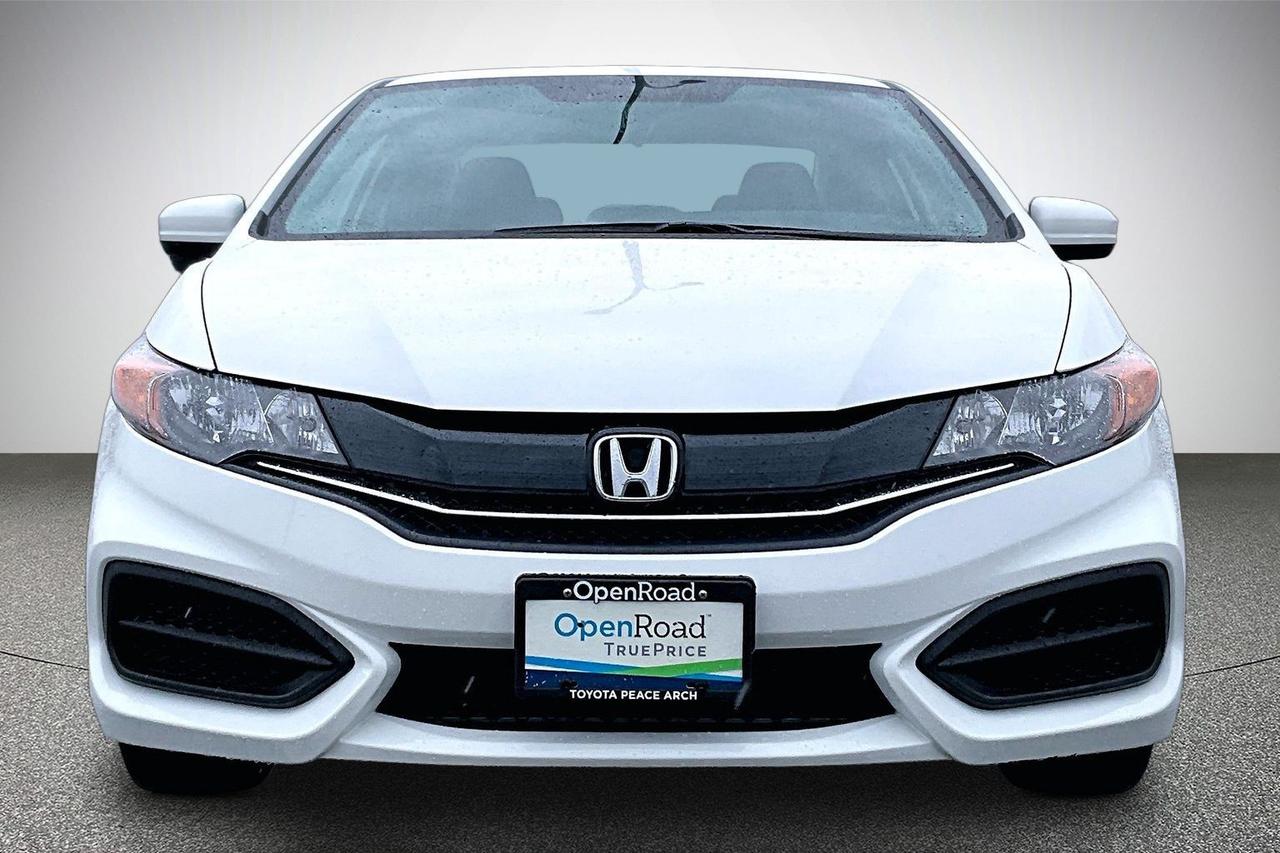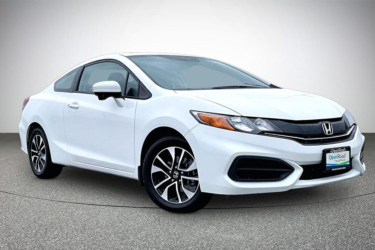The 2014 Honda Civic Coupe LX with a 5-speed manual transmission features a 1.8-litre inline 4-cylinder engine producing 143 horsepower and 129 lb-ft of torque, paired with front-wheel drive for efficient performance. It offers fuel economy of approximately 7.3 L/100 km city and 5.5 L/100 km highway. Standard equipment includes 16-inch steel wheels, EcoAssist with ECON mode, heated front seats, air conditioning, cruise control, and a tilt and telescopic steering wheel. Interior highlights include Bluetooth connectivity, USB and auxiliary inputs, a multi-information display, and a split-folding rear seat. Safety features include stability control, traction control, multiple airbags, ABS brakes, and a rearview camera. Have confidence with your OpenRoad purchase! Every OpenRoad Certified Pre-Owned vehicle comes fully reconditioned and complete with a comprehensive 153 point mechanical inspection, a CarFax history & lien report, a 3-Day Money Back Guarantee, a 30-Day/2,000 kms Exchange Policy, a 90-Day/5,000 kms Powertrain Warranty, guaranteed clear title, and membership to our exclusive Club OpenRoad! As a proud member of the OpenRoad Auto Group, a trusted name since 2000 serving the Lower mainland (including White Rock, Surrey, Langley, Maple Ridge, Delta, Richmond, Mission and beyond) with outstanding Toyota vehicles, Toyota parts, and Toyota service since 1966! OpenRoad Toyota Peace Arch is a “True Price” dealer, meaning no inflated prices, and no need for back and forth haggling! We use up to the minute technology offering LIVE MARKET VALUE PRICING to ensure you are receiving the most competitive price possible on all of our Pre-Owned vehicles! All advertised vehicle prices do not include our $699 documentation fee.