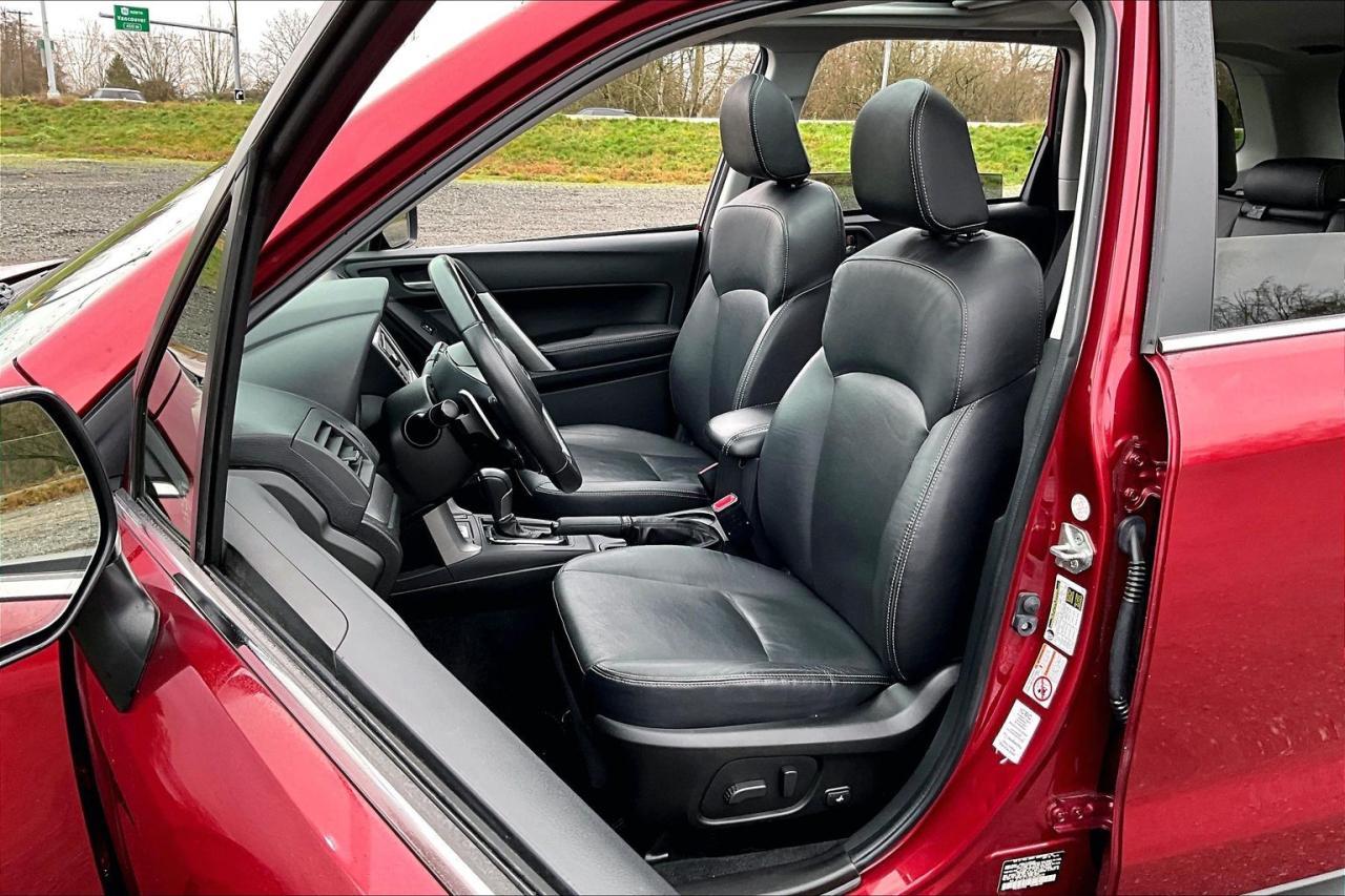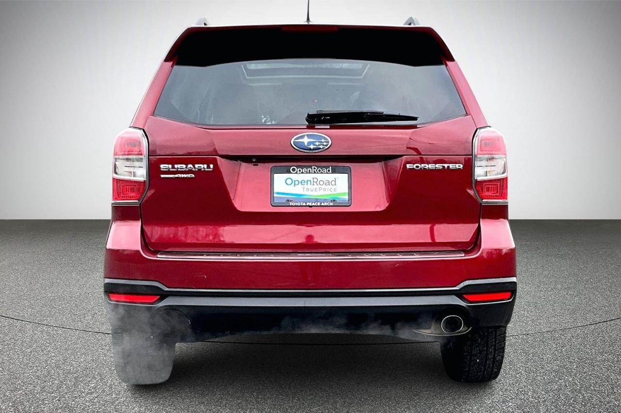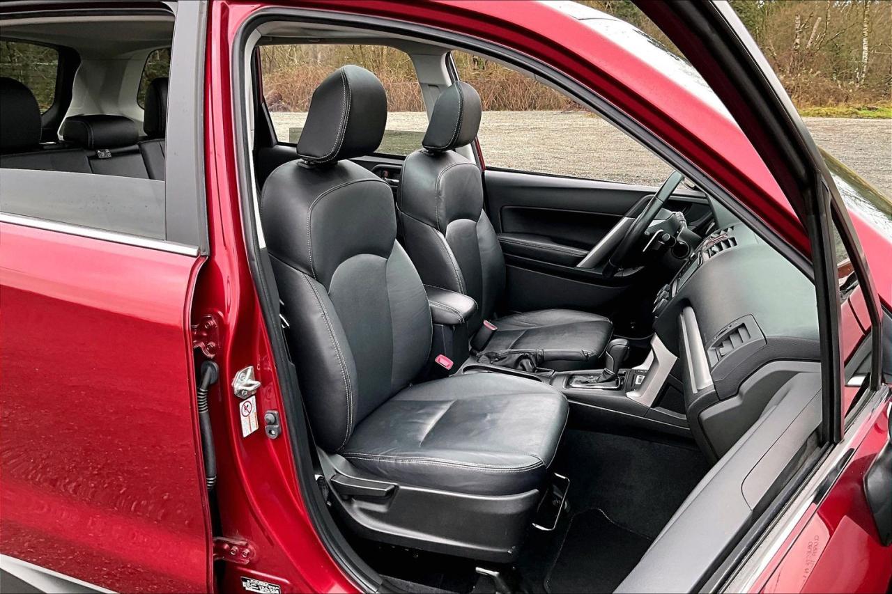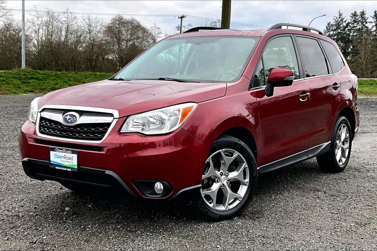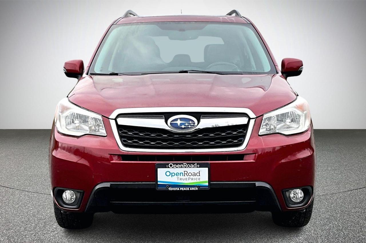 The 2015 Subaru Forester 2.5i Limited delivers a refined blend of capability, comfort, and safety. It features a 2.5-liter horizontally opposed four-cylinder engine paired with a continuously variable transmission and Subaru’s Symmetrical All-Wheel Drive for confident all-weather performance. The Limited trim adds leather upholstery, heated front seats, dual-zone automatic climate control, a power driver’s seat, and a premium audio system with Bluetooth connectivity. Exterior highlights include 18-inch alloy wheels, fog lights, and roof rails. Safety is well addressed with stability and traction control, anti-lock brakes, multiple airbags, and a rearview camera. Have confidence with your OpenRoad purchase! Every OpenRoad Certified Pre-Owned vehicle comes fully reconditioned and complete with a comprehensive 153 point mechanical inspection, a CarFax history & lien report, a 3-Day Money Back Guarantee, a 30-Day/2,000 kms Exchange Policy, a 90-Day/5,000 kms Powertrain Warranty, guaranteed clear title, and membership to our exclusive Club OpenRoad! As a proud member of the OpenRoad Auto Group, a trusted name since 2000 serving the Lower mainland (including White Rock, Surrey, Langley, Maple Ridge, Delta, Richmond, Mission and beyond) with outstanding Toyota vehicles, Toyota parts, and Toyota service since 1966! OpenRoad Toyota Peace Arch is a “True Price” dealer, meaning no inflated prices, and no need for back and forth haggling! We use up to the minute technology offering LIVE MARKET VALUE PRICING to ensure you are receiving the most competitive price possible on all of our Pre-Owned vehicles! All advertised vehicle prices do not include our $599 documentation fee.