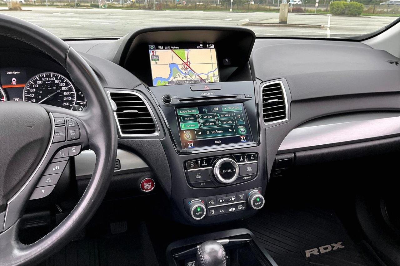 The 2016 Acura RDX Elite is the top-trim compact luxury SUV in its model year, combining performance, comfort, technology, and safety. It is powered by a 3.5 L V6 with 279 hp and comes standard with AWD. The Elite trim adds unique 18-inch machined alloy wheels, fog lights, auto-dimming side mirrors, and front and rear parking sensors. Inside, leather seating is heated and ventilated up front along with dual-zone automatic climate control, integrated navigation, premium audio, and a dual-screen infotainment system. AcuraWatch driver-assist features include adaptive cruise control, lane keeping assist, lane departure warning, and forward collision mitigation. Additional amenities include a powered liftgate, multi-angle rear camera, HomeLink, and memory driver’s seat. Have confidence with your OpenRoad purchase! Every OpenRoad Certified Pre-Owned vehicle comes fully reconditioned and complete with a comprehensive 153 point mechanical inspection, a CarFax history & lien report, a 3-Day Money Back Guarantee, a 30-Day/2,000 kms Exchange Policy, a 90-Day/5,000 kms Powertrain Warranty, guaranteed clear title, and membership to our exclusive Club OpenRoad! As a proud member of the OpenRoad Auto Group, a trusted name since 2000 serving the Lower mainland (including White Rock, Surrey, Langley, Maple Ridge, Delta, Richmond, Mission and beyond) with outstanding Toyota vehicles, Toyota parts, and Toyota service since 1966! OpenRoad Toyota Peace Arch is a “True Price” dealer, meaning no inflated prices, and no need for back and forth haggling! We use up to the minute technology offering LIVE MARKET VALUE PRICING to ensure you are receiving the most competitive price possible on all of our Pre-Owned vehicles! All advertised vehicle prices do not include our $599 documentation fee.