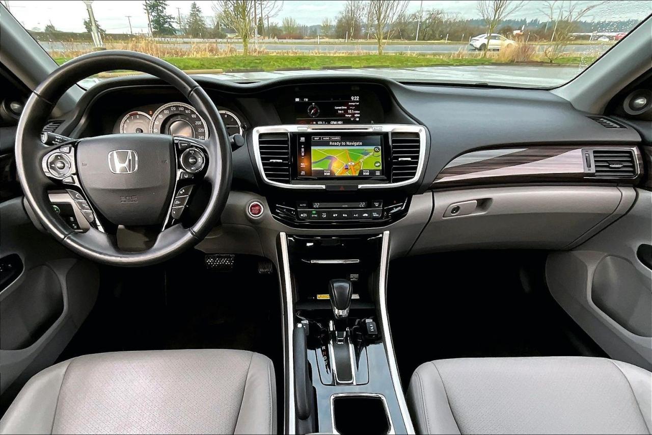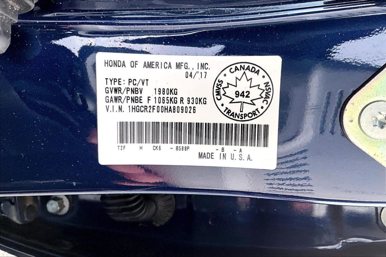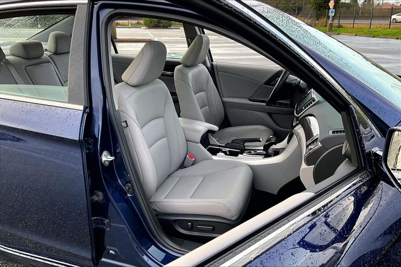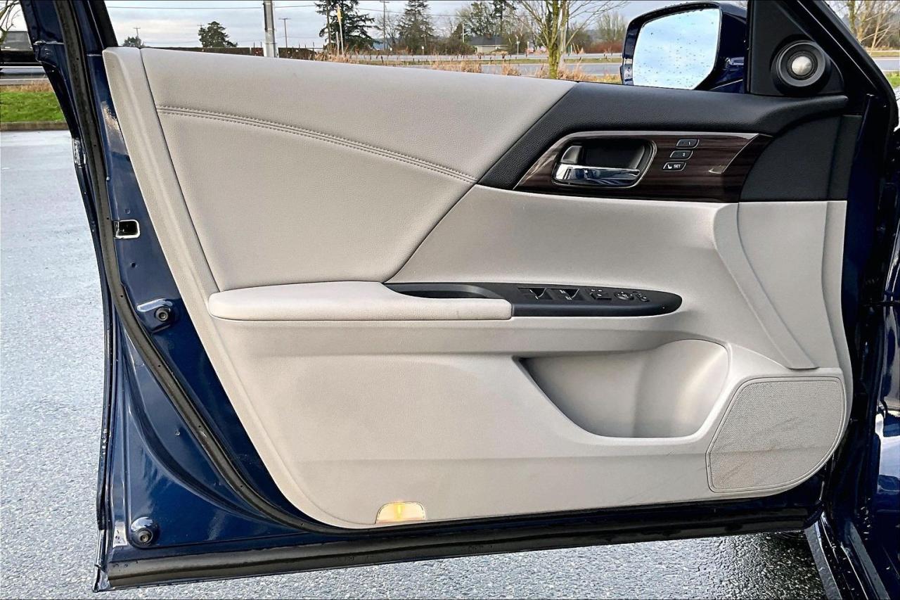 The 2017 Honda Accord Sedan L4 Touring with CVT combines comfort, technology and efficiency in a premium midsize package. It is powered by a 2.4-litre, direct-injected i-VTEC four-cylinder with a smooth continuously variable transmission and ECON mode for better fuel economy. Touring trim adds leather upholstery, heated front and rear seats, a one-touch power moonroof, dual-zone climate control and a 360-watt premium audio system. Standard tech includes an integrated navigation system, wireless charging, multi-angle rearview camera, Bluetooth and smartphone integration. Safety and convenience are enhanced by Honda Sensing features, rain-sensing wipers, auto high-beams and front/rear parking sensors. Have confidence with your OpenRoad purchase! Every OpenRoad Certified Pre-Owned vehicle comes fully reconditioned and complete with a comprehensive 153 point mechanical inspection, a CarFax history & lien report, a 3-Day Money Back Guarantee, a 30-Day/2,000 kms Exchange Policy, a 90-Day/5,000 kms Powertrain Warranty, guaranteed clear title, and membership to our exclusive Club OpenRoad! As a proud member of the OpenRoad Auto Group, a trusted name since 2000 serving the Lower mainland (including White Rock, Surrey, Langley, Maple Ridge, Delta, Richmond, Mission and beyond) with outstanding Toyota vehicles, Toyota parts, and Toyota service since 1966! OpenRoad Toyota Peace Arch is a “True Price” dealer, meaning no inflated prices, and no need for back and forth haggling! We use up to the minute technology offering LIVE MARKET VALUE PRICING to ensure you are receiving the most competitive price possible on all of our Pre-Owned vehicles! All advertised vehicle prices do not include our $599 documentation fee.
