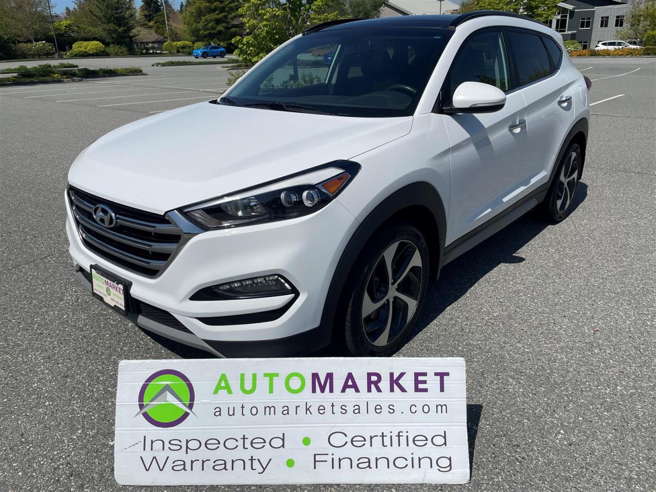 Welcome to the Automarket, your community financing dealership of "YES". We are featuring the most beautiful Tucson Limited in the market place. This incredible SUV is loaded with AWD, Panoramic Moonroof, Heated Leather Seats and Steering Wheel, Apple/Android Carplay, Power Tailgate, All Power Features, Sport Wheels and so so much more.