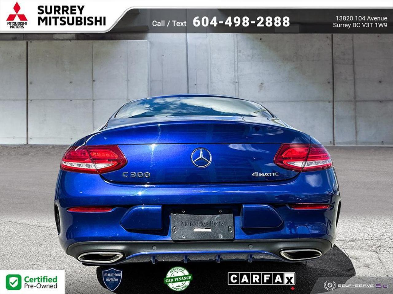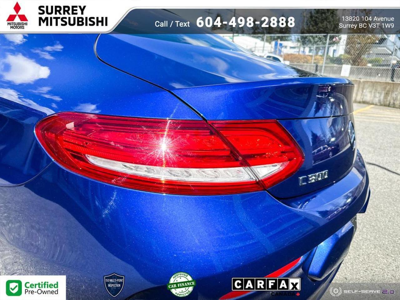 Rendered with stunning clarity and bold sophistication! This 2 door, 4 passenger coupe just recently passed the 50,000 kilometer mark! The following features are included: automatic dimming door mirrors, air conditioning, and a split folding rear seat. Mercedes-Benz made sure to keep road-handling and sportiness at the top of it's priority list. Smooth gearshifts are achieved thanks to the efficient 4 cylinder engine, and for added security, dynamic Stability Control supplements the drivetrain.