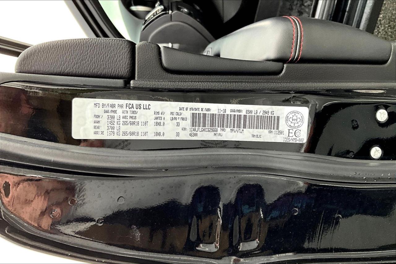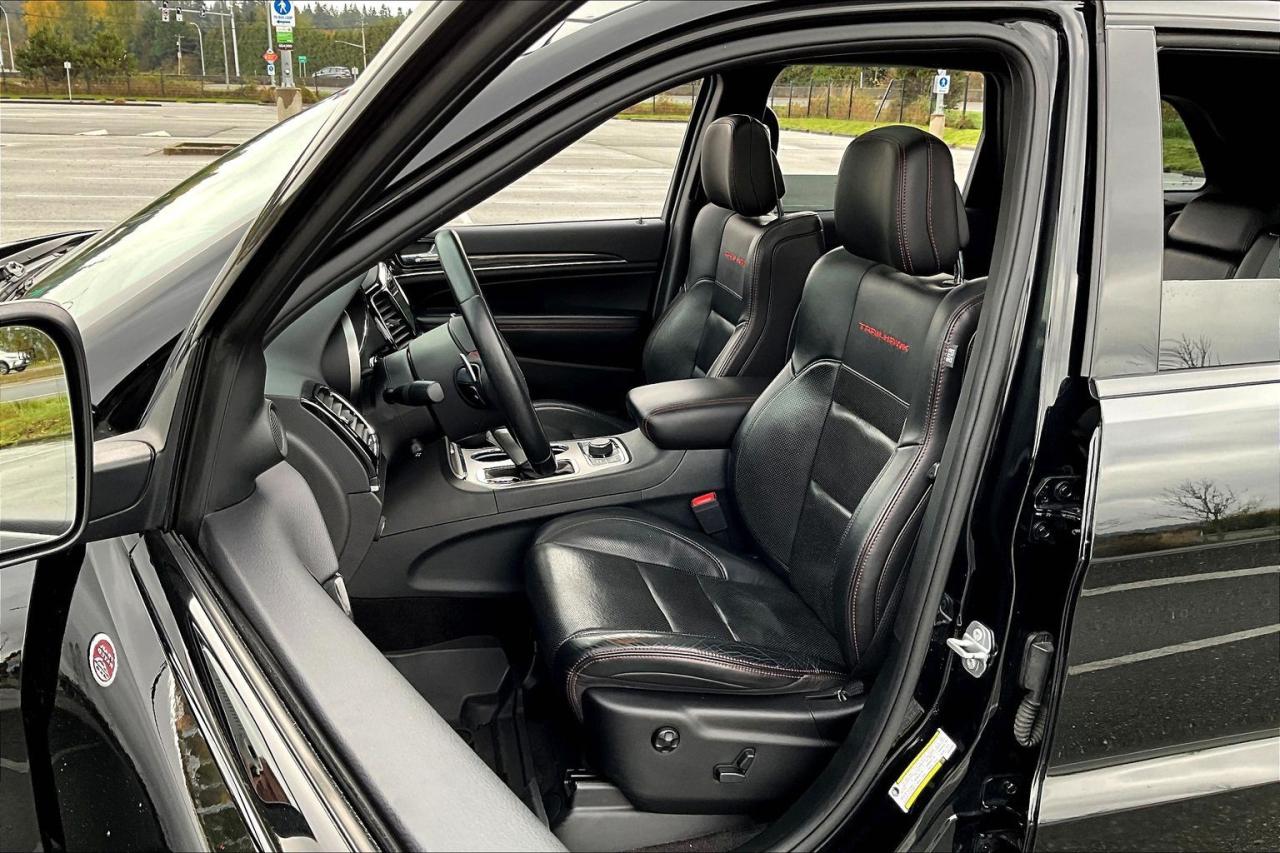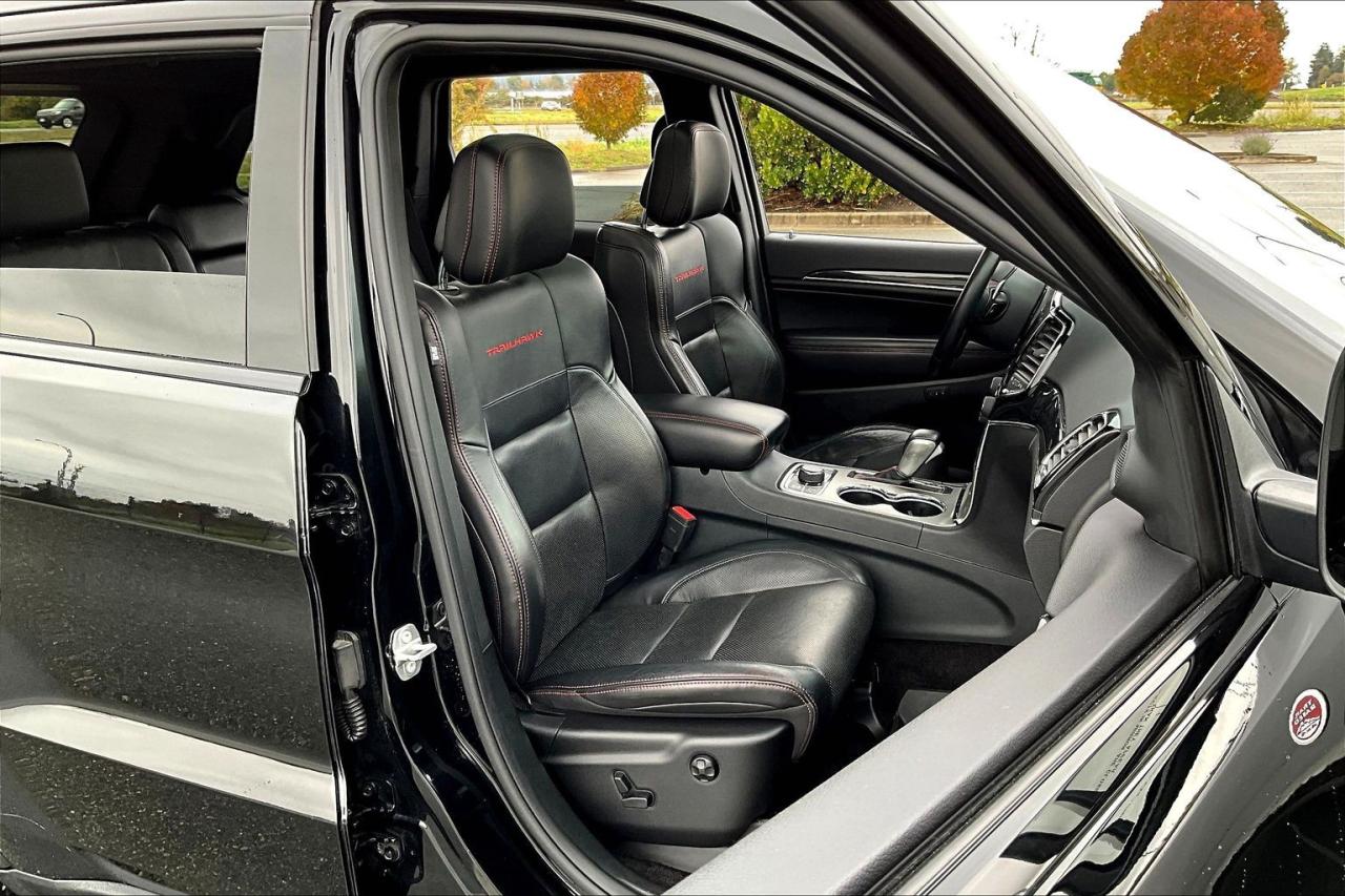 The 2019 Jeep Grand Cherokee Trailhawk 4X4 combines rugged capability with upscale comfort. It features the Quadra-Drive II 4WD system with an electronic limited-slip differential, skid plates, and signature red tow hooks for off-road durability. Power comes from a 3.6L Pentastar V6 engine delivering 295 hp and 260 lb-ft of torque, with an available V8 option for added strength. The interior offers leather and suede-trimmed seats, an 8.4-inch Uconnect touchscreen, heated steering wheel, and dual-zone climate control. Safety highlights include blind-spot monitoring, rear cross-traffic alert, a ParkView backup camera, and Selec-Terrain drive modes for diverse road and trail conditions. Have confidence with your OpenRoad purchase! Every OpenRoad Certified Pre-Owned vehicle comes fully reconditioned and complete with a comprehensive 153 point mechanical inspection, a CarFax history & lien report, a 3-Day Money Back Guarantee, a 30-Day/2,000 kms Exchange Policy, a 90-Day/5,000 kms Powertrain Warranty, guaranteed clear title, and membership to our exclusive Club OpenRoad! As a proud member of the OpenRoad Auto Group, a trusted name since 2000 serving the Lower mainland (including White Rock, Surrey, Langley, Maple Ridge, Delta, Richmond, Mission and beyond) with outstanding Toyota vehicles, Toyota parts, and Toyota service since 1966! OpenRoad Toyota Peace Arch is a “True Price” dealer, meaning no inflated prices, and no need for back and forth haggling! We use up to the minute technology offering LIVE MARKET VALUE PRICING to ensure you are receiving the most competitive price possible on all of our Pre-Owned vehicles! All advertised vehicle prices do not include our $599 documentation fee.