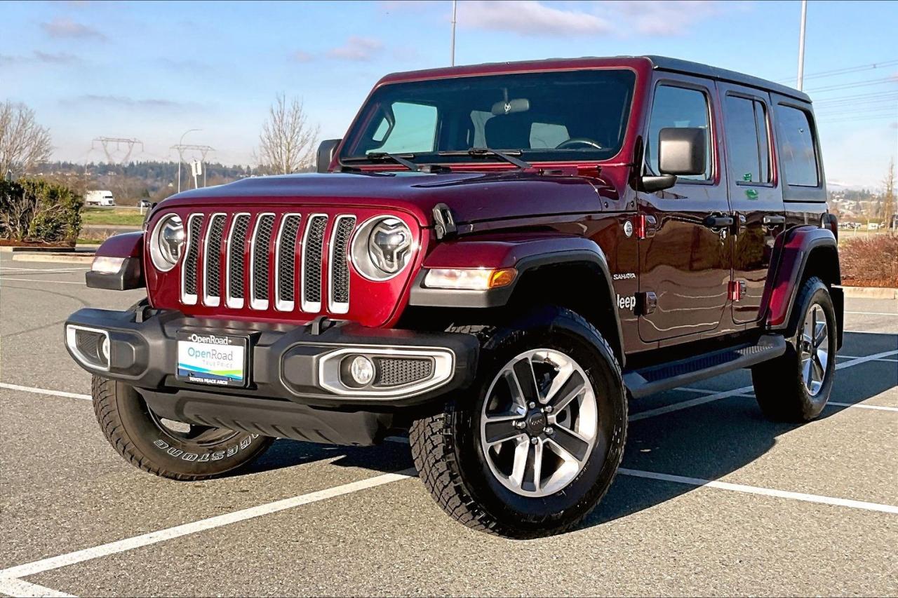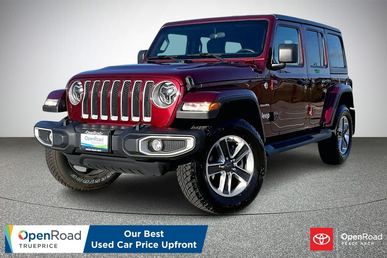 The 2021 Jeep Wrangler Unlimited Sahara with the 2.0-litre turbocharged engine delivers a strong balance of efficiency, power, and comfort. The turbocharged four-cylinder produces responsive performance and is paired with a smooth 8-speed automatic transmission and full-time four-wheel drive. Exterior features include 18-inch alloy wheels, body-colour accents, side steps, and a removable hardtop. Inside, the Sahara offers upgraded upholstery, dual-zone automatic climate control, ambient lighting, and generous seating for five. Technology highlights include the Uconnect infotainment system with Apple CarPlay and Android Auto, a digital driver display, rearview camera, and available advanced safety features such as blind-spot monitoring. Have confidence with your OpenRoad purchase! Every OpenRoad Certified Pre-Owned vehicle comes fully reconditioned and complete with a comprehensive 153 point mechanical inspection, a CarFax history & lien report, a 3-Day Money Back Guarantee, a 30-Day/2,000 kms Exchange Policy, a 90-Day/5,000 kms Powertrain Warranty, guaranteed clear title, and membership to our exclusive Club OpenRoad! As a proud member of the OpenRoad Auto Group, a trusted name since 2000 serving the Lower mainland (including White Rock, Surrey, Langley, Maple Ridge, Delta, Richmond, Mission and beyond) with outstanding Toyota vehicles, Toyota parts, and Toyota service since 1966! OpenRoad Toyota Peace Arch is a “True Price” dealer, meaning no inflated prices, and no need for back and forth haggling! We use up to the minute technology offering LIVE MARKET VALUE PRICING to ensure you are receiving the most competitive price possible on all of our Pre-Owned vehicles! All advertised vehicle prices do not include our $599 documentation fee.