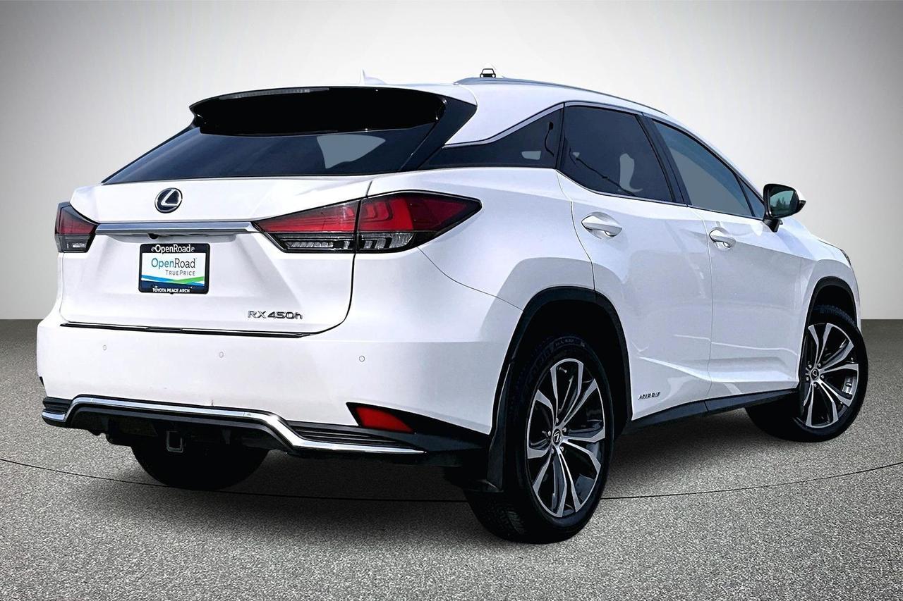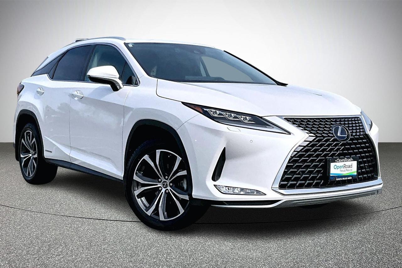 The 2021 Lexus RX 450h AWD Luxury is a midsize luxury hybrid SUV combining a 3.5-litre V6 engine with electric motors producing about 308 horsepower and standard all-wheel drive. It delivers smooth, quiet performance with strong fuel efficiency of roughly 7.5 L/100 km combined. The Luxury trim adds premium leather upholstery, wood trim accents, heated and ventilated front seats, power-adjustable seating with memory, and a power liftgate. It includes a large touchscreen infotainment system with Apple CarPlay and Android Auto, plus navigation and voice control. Advanced safety features include adaptive cruise control, lane departure alert, blind-spot monitoring, and forward collision mitigation. A refined suspension provides a comfortable ride with minimal road noise, making it suited for long-distance driving and daily commuting. Have confidence with your OpenRoad purchase! Every OpenRoad Certified Pre-Owned vehicle comes fully reconditioned and complete with a comprehensive 153 point mechanical inspection, a CarFax history & lien report, a 3-Day Money Back Guarantee, a 30-Day/2,000 kms Exchange Policy, a 90-Day/5,000 kms Powertrain Warranty, guaranteed clear title, and membership to our exclusive Club OpenRoad! As a proud member of the OpenRoad Auto Group, a trusted name since 2000 serving the Lower mainland (including White Rock, Surrey, Langley, Maple Ridge, Delta, Richmond, Mission and beyond) with outstanding Toyota vehicles, Toyota parts, and Toyota service since 1966! OpenRoad Toyota Peace Arch is a “True Price” dealer, meaning no inflated prices, and no need for back and forth haggling! We use up to the minute technology offering LIVE MARKET VALUE PRICING to ensure you are receiving the most competitive price possible on all of our Pre-Owned vehicles! All advertised vehicle prices do not include our $699 documentation fee.