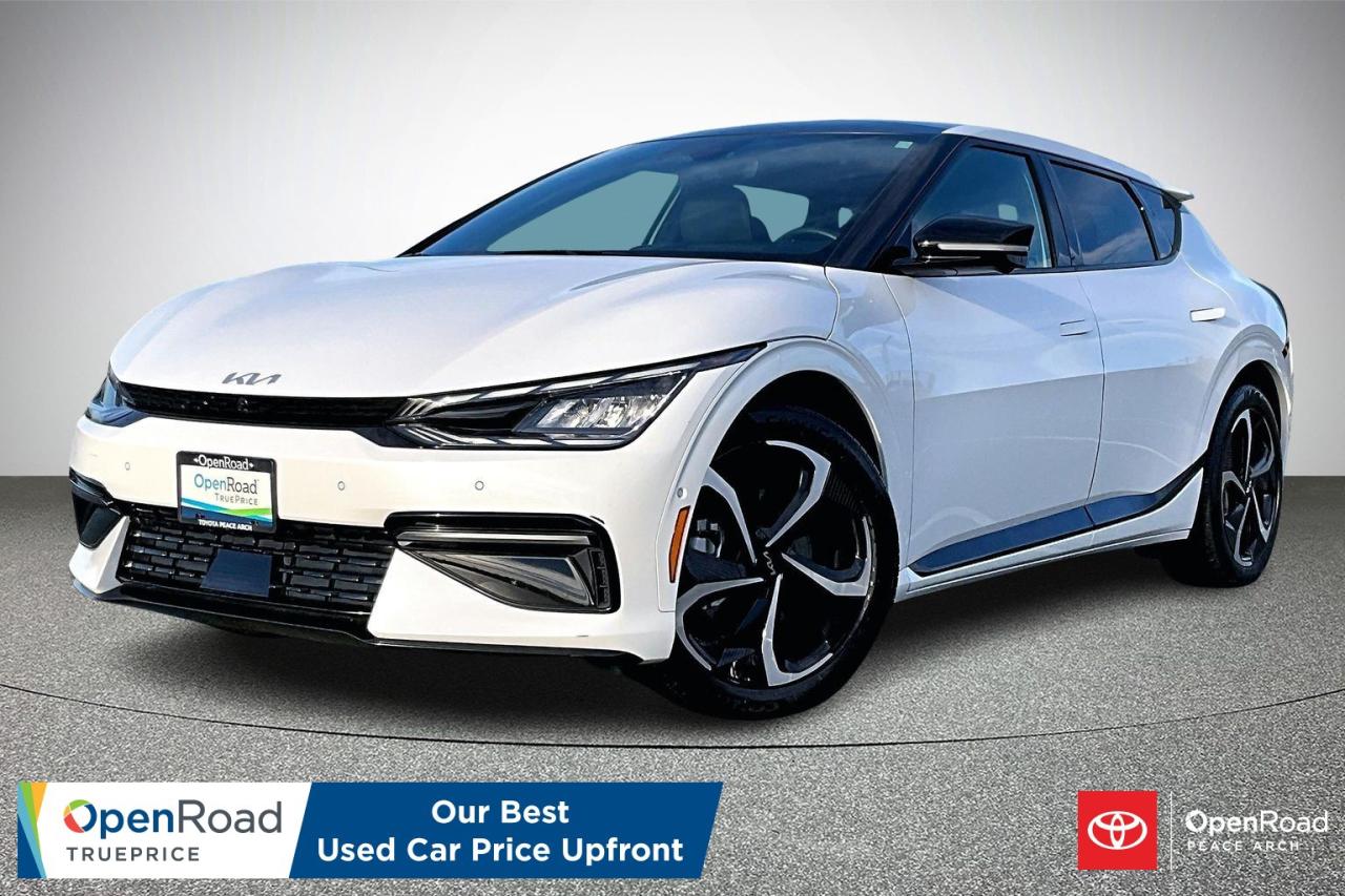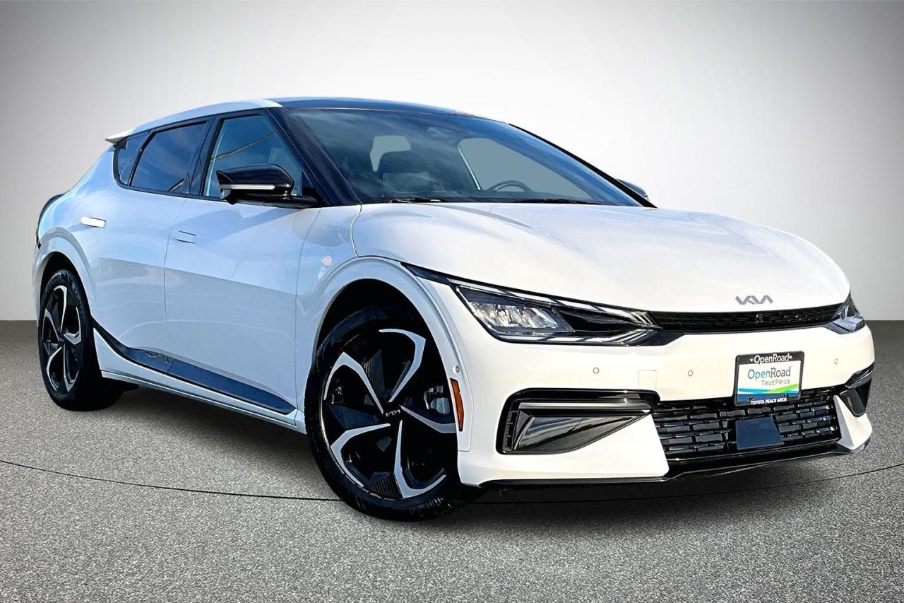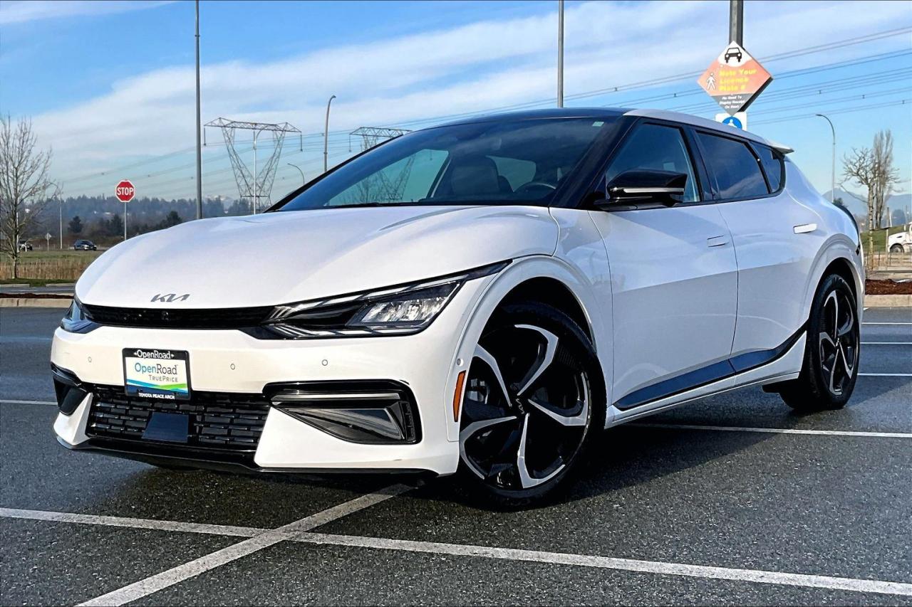 The 2023 Kia EV6 AWD GT-Line delivers a strong balance of performance, technology, and modern design. Dual electric motors provide confident all-wheel drive capability with quick acceleration and smooth, quiet power delivery. The GT-Line trim enhances its sporty character with exclusive exterior accents, 20-inch alloy wheels, and distinctive LED lighting. Inside, the cabin features premium materials, supportive sport seats, and a wide dual-screen digital display. Advanced technology includes an augmented-reality head-up display, surround-view monitoring, and remote parking assist. Comprehensive driver-assistance systems add confidence and safety to everyday driving. Have confidence with your OpenRoad purchase! Every OpenRoad Certified Pre-Owned vehicle comes fully reconditioned and complete with a comprehensive 153 point mechanical inspection, a CarFax history & lien report, a 3-Day Money Back Guarantee, a 30-Day/2,000 kms Exchange Policy, a 90-Day/5,000 kms Powertrain Warranty, guaranteed clear title, and membership to our exclusive Club OpenRoad! As a proud member of the OpenRoad Auto Group, a trusted name since 2000 serving the Lower mainland (including White Rock, Surrey, Langley, Maple Ridge, Delta, Richmond, Mission and beyond) with outstanding Toyota vehicles, Toyota parts, and Toyota service since 1966! OpenRoad Toyota Peace Arch is a “True Price” dealer, meaning no inflated prices, and no need for back and forth haggling! We use up to the minute technology offering LIVE MARKET VALUE PRICING to ensure you are receiving the most competitive price possible on all of our Pre-Owned vehicles! All advertised vehicle prices do not include our $599 documentation fee.