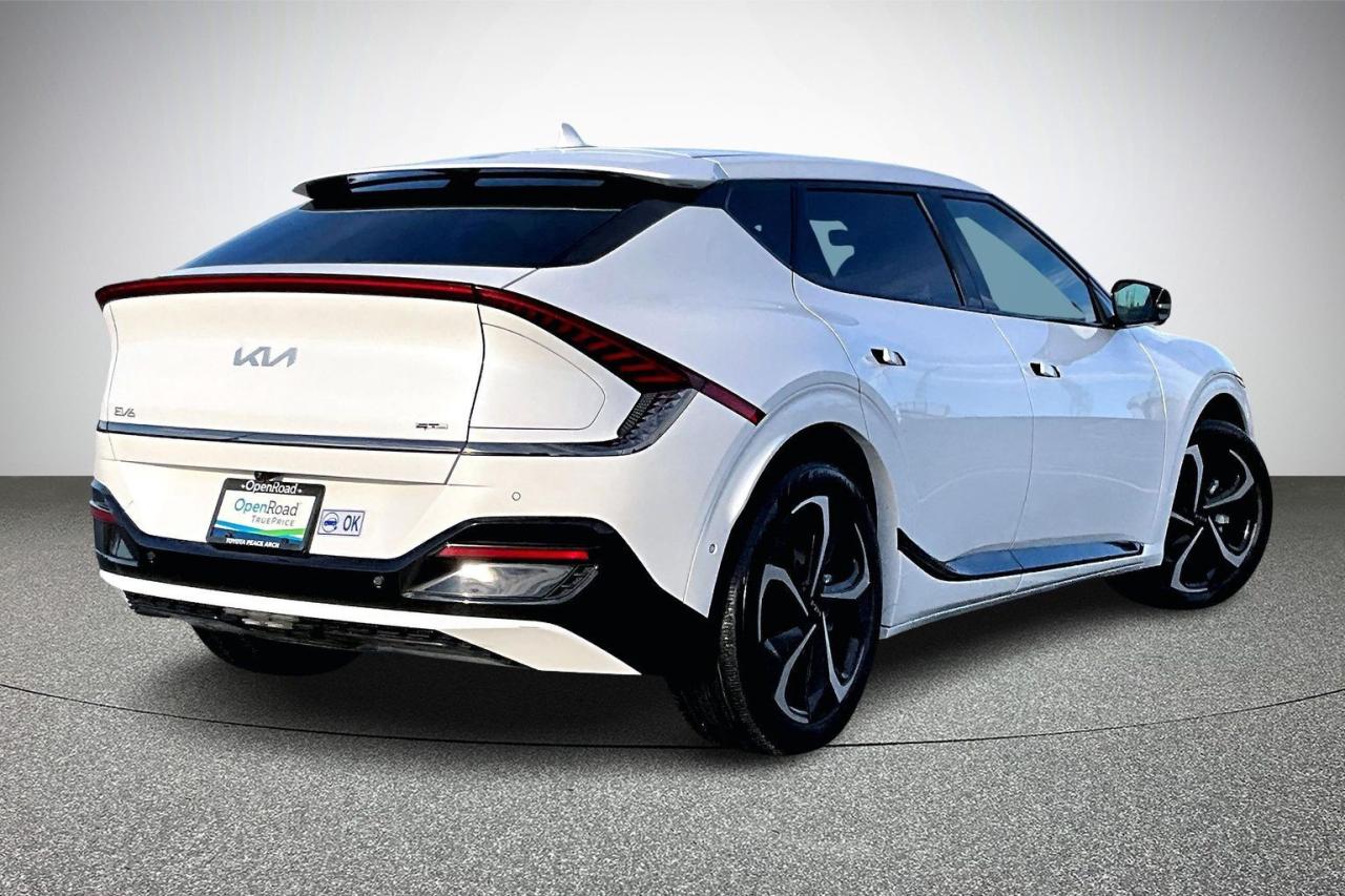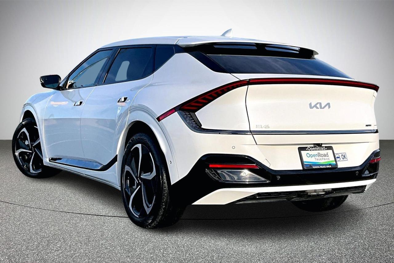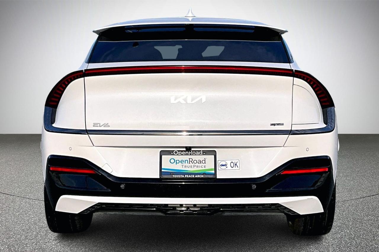 The 2023 Kia EV6 AWD GT-Line delivers a strong balance of performance, technology, and modern design. Dual electric motors provide confident all-wheel drive capability with quick acceleration and smooth, quiet power delivery. The GT-Line trim enhances its sporty character with exclusive exterior accents, 20-inch alloy wheels, and distinctive LED lighting. Inside, the cabin features premium materials, supportive sport seats, and a wide dual-screen digital display. Advanced technology includes an augmented-reality head-up display, surround-view monitoring, and remote parking assist. Comprehensive driver-assistance systems add confidence and safety to everyday driving. Have confidence with your OpenRoad purchase! Every OpenRoad Certified Pre-Owned vehicle comes fully reconditioned and complete with a comprehensive 153 point mechanical inspection, a CarFax history & lien report, a 3-Day Money Back Guarantee, a 30-Day/2,000 kms Exchange Policy, a 90-Day/5,000 kms Powertrain Warranty, guaranteed clear title, and membership to our exclusive Club OpenRoad! As a proud member of the OpenRoad Auto Group, a trusted name since 2000 serving the Lower mainland (including White Rock, Surrey, Langley, Maple Ridge, Delta, Richmond, Mission and beyond) with outstanding Toyota vehicles, Toyota parts, and Toyota service since 1966! OpenRoad Toyota Peace Arch is a “True Price” dealer, meaning no inflated prices, and no need for back and forth haggling! We use up to the minute technology offering LIVE MARKET VALUE PRICING to ensure you are receiving the most competitive price possible on all of our Pre-Owned vehicles! All advertised vehicle prices do not include our $599 documentation fee.
