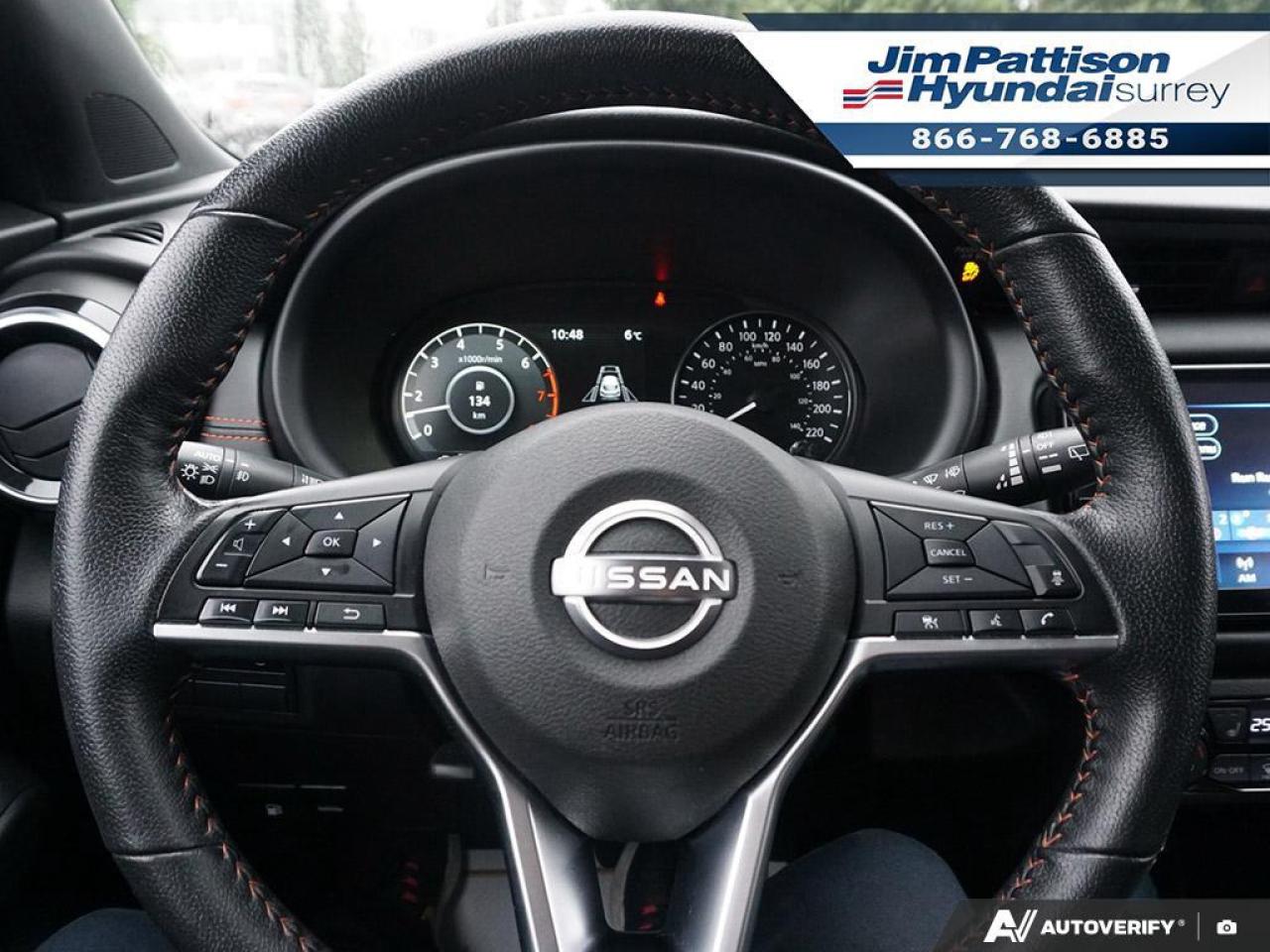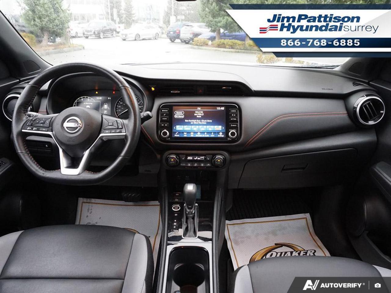 ACCIDENT FREE!! LOCAL CAR!! Options include: Keyless entry, Push button start, Alloy wheels, 360 view camera, Apple CarPlay and Android auto, Heated seats and heated steering, Leather seats, Bluetooth connectivity, Adaptive cruise control, Blind spot warning, Forward emergency collision warning, Rear parking sensor, Rear wiper , Remote start and much more. This used Nissan Kicks SR, top of the line is now available to test drive at Jim Pattison Hyundai Surrey. This amazing local vehicle has been fully inspected at Jim Pattison Hyundai Surrey and all servicing is up to date. It also retains the balance of its factory Nissan Canada warranty. We always include a 30-day powertrain guarantee, 14-day exchange privilege and a CarFax vehicle history report with all of our pre-owned vehicles. For a limited time, this used crossover is also available at special financing rates! Call 1-866-768-6885! Do you prefer text contact? You can TEXT our sales team directly @ 778-770-1084.