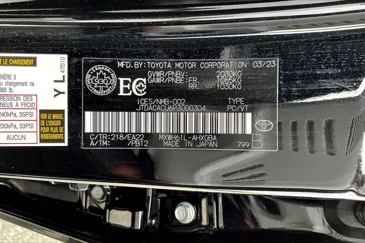 The 2023 Toyota Prius Prime XSE offers a refined blend of performance, technology, and comfort. It features 19-inch alloy wheels, heated SofTex-trimmed front seats, and an 8-way power-adjustable driver’s seat with lumbar support. A wireless charging pad, dual-zone automatic climate control, rain-sensing wipers, and a smart key system enhance convenience. Safety is prioritized with front and rear parking sensors with automatic braking, blind-spot monitoring, and rear cross-traffic alert. Toyota Safety Sense 3.0 adds advanced driver assistance features. Optional amenities include a 12.3-inch multimedia display, fixed glass roof, and Digital Key for smartphone-based vehicle access and control. Have confidence with your OpenRoad purchase! Every OpenRoad Certified Pre-Owned vehicle comes fully reconditioned and complete with a comprehensive 153 point mechanical inspection, a CarFax history & lien report, a 3-Day Money Back Guarantee, a 30-Day/2,000 kms Exchange Policy, a 90-Day/5,000 kms Powertrain Warranty, guaranteed clear title, and membership to our exclusive Club OpenRoad! As a proud member of the OpenRoad Auto Group, a trusted name since 2000 serving the Lower mainland (including White Rock, Surrey, Langley, Maple Ridge, Delta, Richmond, Mission and beyond) with outstanding Toyota vehicles, Toyota parts, and Toyota service since 1966! OpenRoad Toyota Peace Arch is a “True Price” dealer, meaning no inflated prices, and no need for back and forth haggling! We use up to the minute technology offering LIVE MARKET VALUE PRICING to ensure you are receiving the most competitive price possible on all of our Pre-Owned vehicles! All advertised vehicle prices do not include our $599 documentation fee.