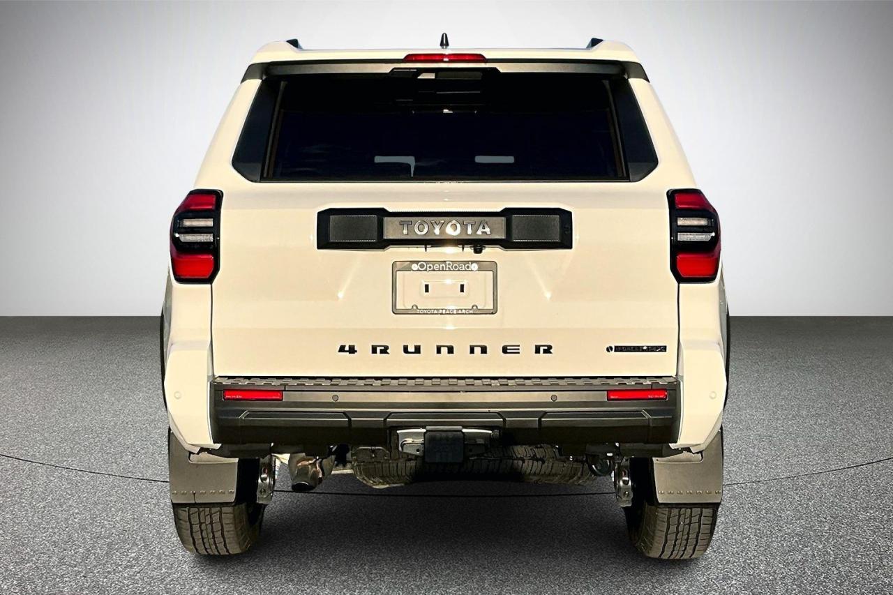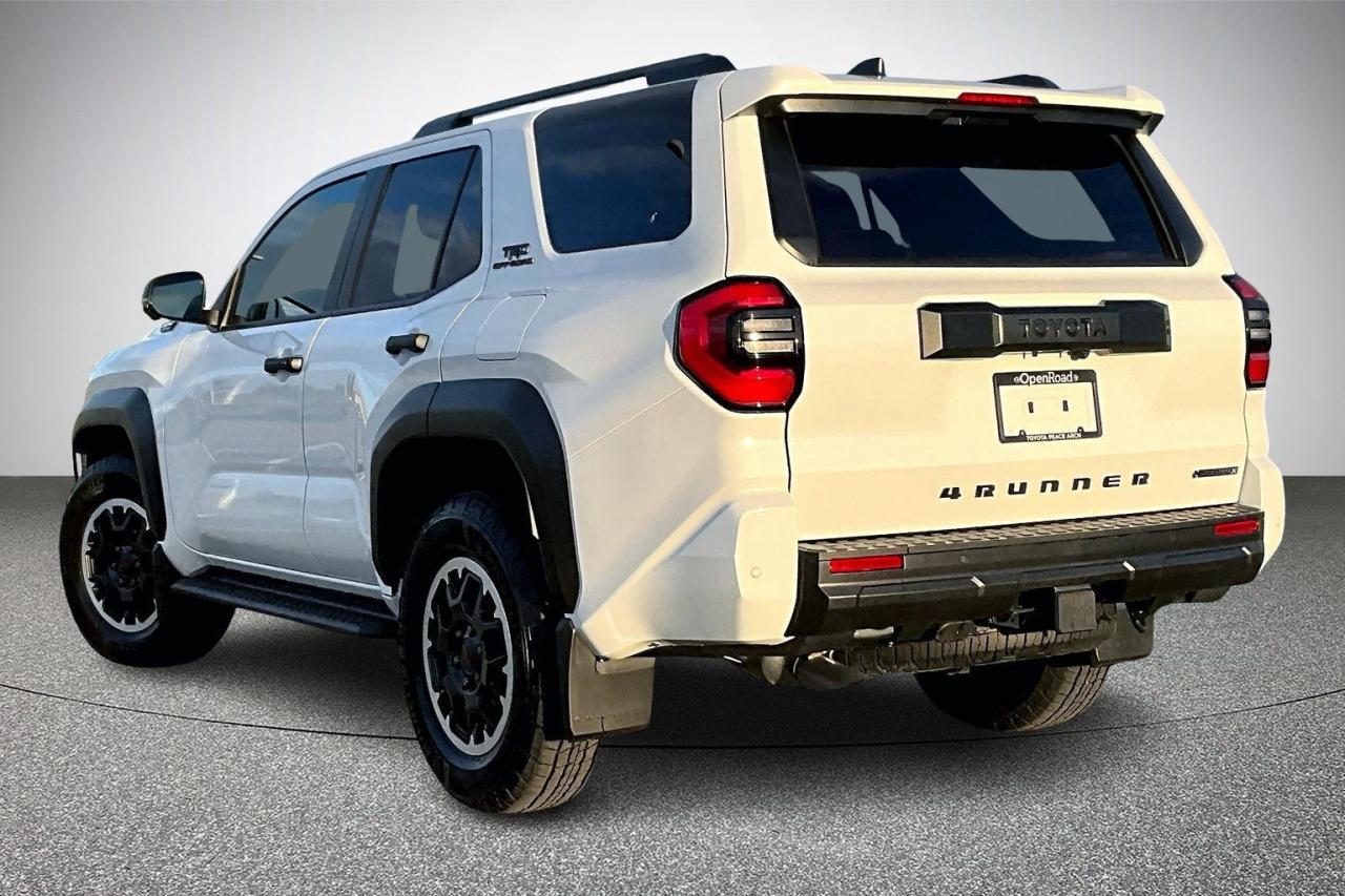 The 2025 Toyota 4Runner Hybrid TRD Off Road Premium pairs a turbocharged 2.4-litre hybrid engine with 326 horsepower and strong low-end torque for confident performance. Built on the TNGA-F frame, it offers part-time 4WD, a two-speed transfer case, and TRD off-road tuning for challenging terrain. The cabin features SofTex-trimmed heated and ventilated front seats, a heated steering wheel, wireless charging, multiple USB-C ports, and a 14-inch touchscreen with premium audio. Exterior highlights include 18-inch TRD wheels, 33-inch all-terrain tires, LED lighting, skid plates, and a hands-free power liftgate, delivering capability and comfort in one package. Have confidence with your OpenRoad purchase! Every OpenRoad Certified Pre-Owned vehicle comes fully reconditioned and complete with a comprehensive 153 point mechanical inspection, a CarFax history & lien report, a 3-Day Money Back Guarantee, a 30-Day/2,000 kms Exchange Policy, a 90-Day/5,000 kms Powertrain Warranty, guaranteed clear title, and membership to our exclusive Club OpenRoad! As a proud member of the OpenRoad Auto Group, a trusted name since 2000 serving the Lower mainland (including White Rock, Surrey, Langley, Maple Ridge, Delta, Richmond, Mission and beyond) with outstanding Toyota vehicles, Toyota parts, and Toyota service since 1966! OpenRoad Toyota Peace Arch is a “True Price” dealer, meaning no inflated prices, and no need for back and forth haggling! We use up to the minute technology offering LIVE MARKET VALUE PRICING to ensure you are receiving the most competitive price possible on all of our Pre-Owned vehicles! All advertised vehicle prices do not include our $599 documentation fee.