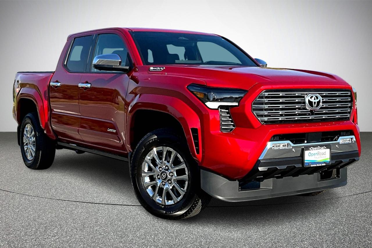 The 2025 Toyota Tacoma Hybrid Limited blends power, refinement, and technology in a versatile midsize truck. It is powered by the i-FORCE MAX 2.4-litre turbo hybrid engine producing 326 horsepower and 465 lb-ft of torque, paired with full-time four-wheel drive. The exterior stands out with 18-inch alloy wheels, chrome accents, a moonroof, LED fog lamps, and power running boards. Inside, luxury features include heated and ventilated power seats, SofTex trim with wood accents, a heated steering wheel, and a 12.3-inch digital gauge cluster. Technology highlights a 14-inch touchscreen with Toyota Multimedia, head-up display, wireless charging, digital key, and advanced safety systems. Have confidence with your OpenRoad purchase! Every OpenRoad Certified Pre-Owned vehicle comes fully reconditioned and complete with a comprehensive 153 point mechanical inspection, a CarFax history & lien report, a 3-Day Money Back Guarantee, a 30-Day/2,000 kms Exchange Policy, a 90-Day/5,000 kms Powertrain Warranty, guaranteed clear title, and membership to our exclusive Club OpenRoad! As a proud member of the OpenRoad Auto Group, a trusted name since 2000 serving the Lower mainland (including White Rock, Surrey, Langley, Maple Ridge, Delta, Richmond, Mission and beyond) with outstanding Toyota vehicles, Toyota parts, and Toyota service since 1966! OpenRoad Toyota Peace Arch is a “True Price” dealer, meaning no inflated prices, and no need for back and forth haggling! We use up to the minute technology offering LIVE MARKET VALUE PRICING to ensure you are receiving the most competitive price possible on all of our Pre-Owned vehicles! All advertised vehicle prices do not include our $599 documentation fee.