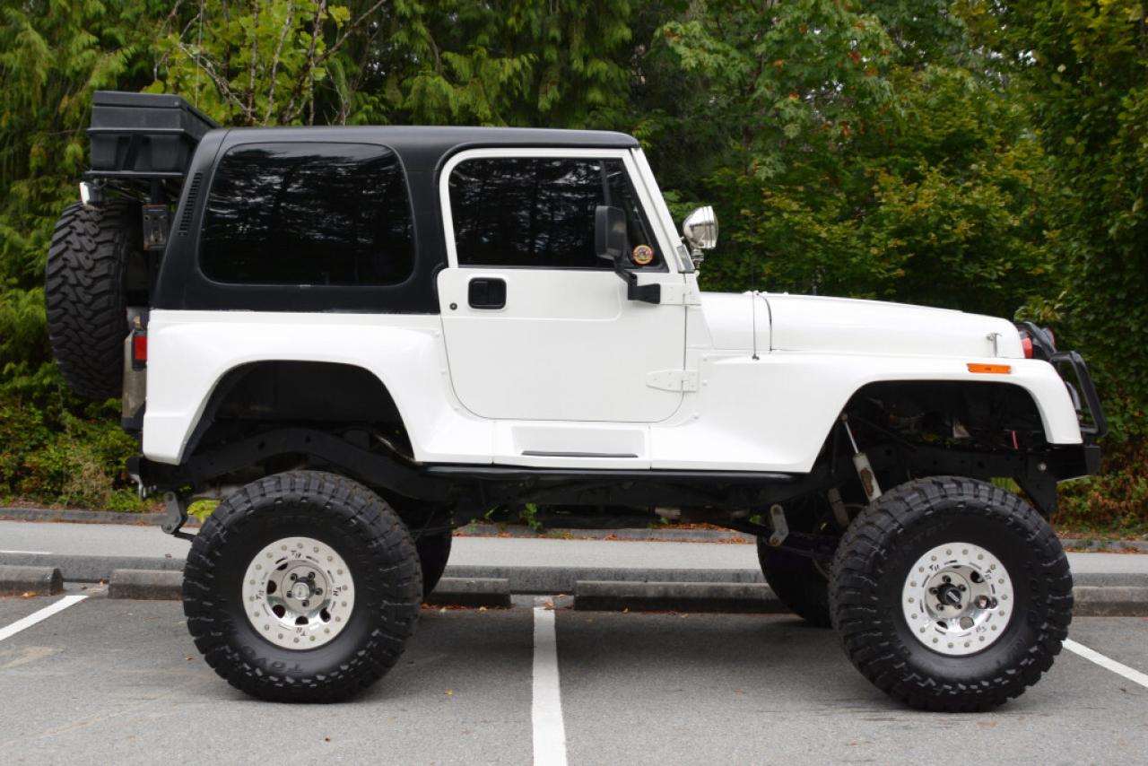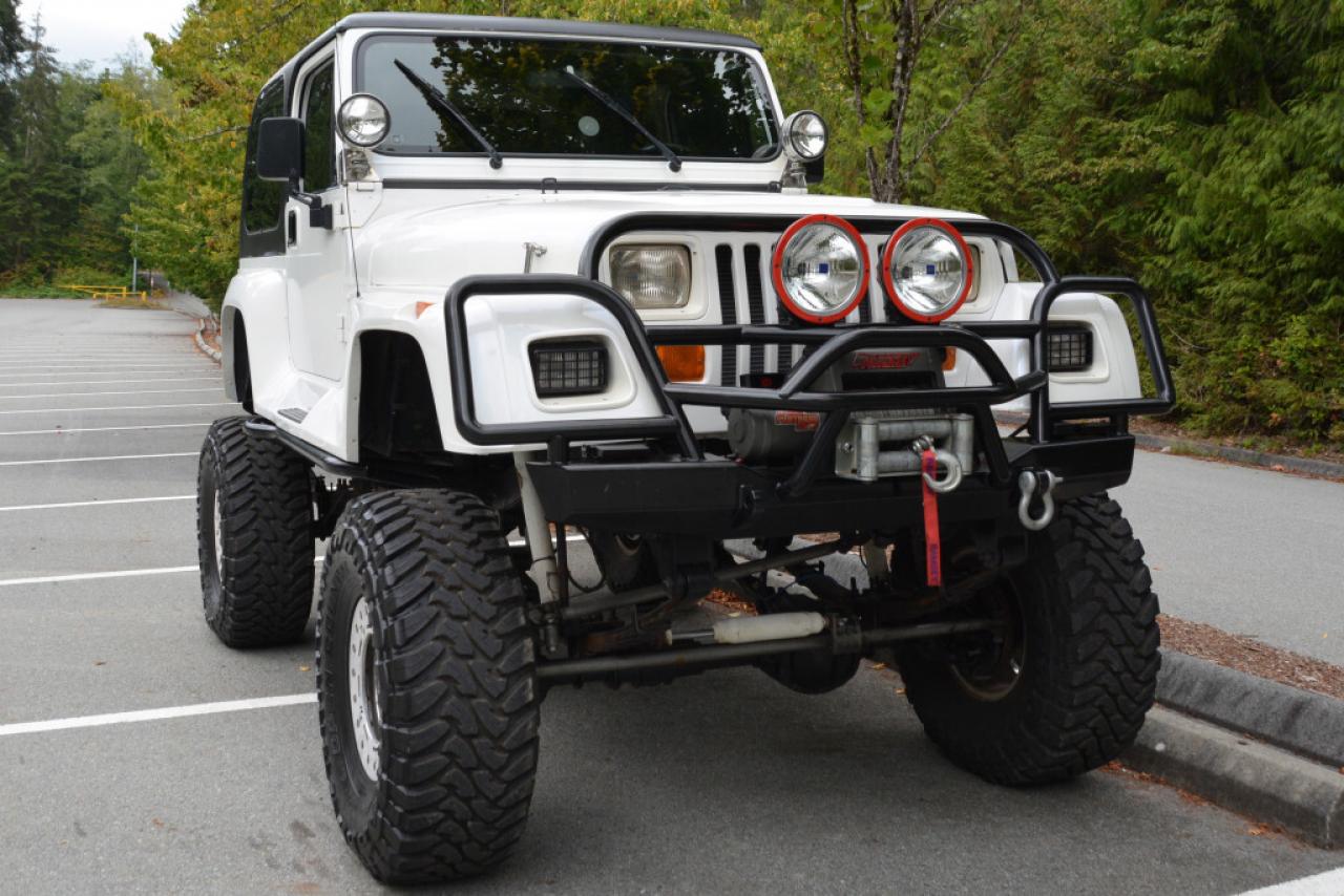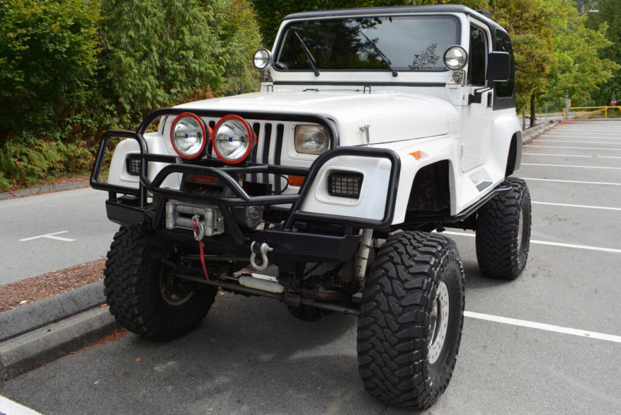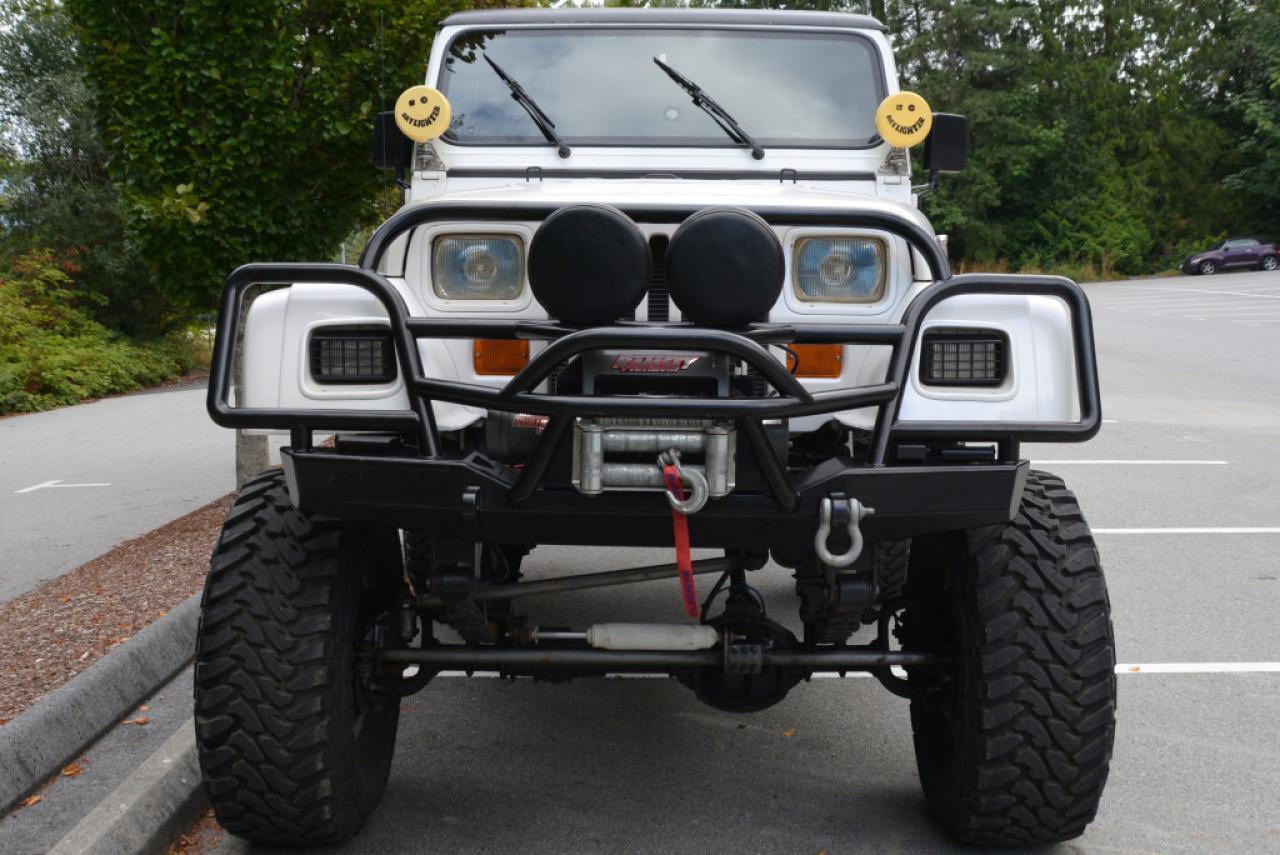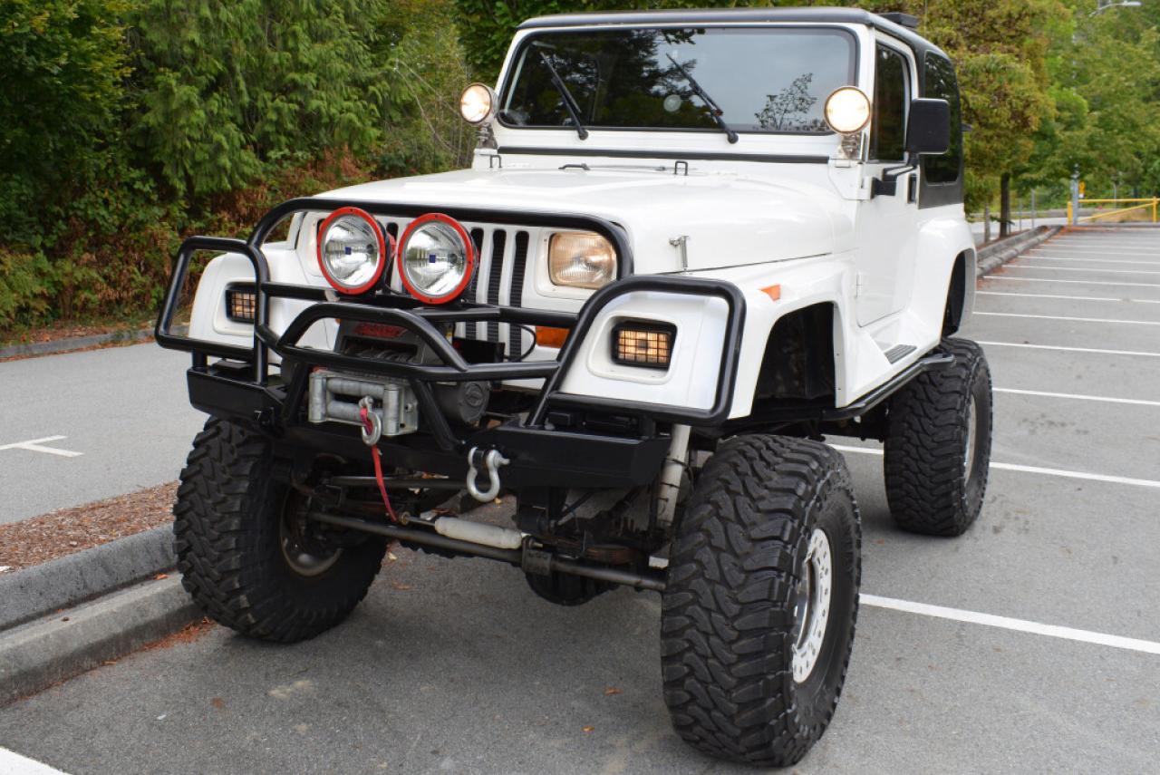 A local Jeep Wrangler YJ Renegade Lifted 4x4. Well equipped with Cloth seats with two-tone seat covers, Alpine CD deck, Aux input, Custom center console with downward firing subwoofer, Motorola CB radio, Passport radar detector, All weather floor mats, Steel front bumper and bull bar, Ramsey platinum 9500lb winch, Daylighter and Hella HID front off road lights, Hella rear off road lights, Steel rear bumper with trailer hitch, Dual Scepter 20L water containers, High level jack, Rock sliders, BeCool radiator, Dual batteries, ARB Air locking differentials with compact air compressor, Rancho in-cab shock air controller, Rancho Illusion shocks, Huge lift kit, 15 Mickey Thompson Classic wheels with 35 Toyo Open Country tires and Trailready TR beadlocks. 4.0L Inline 6 cylinder mated to a 5 speed manual transmission rated by the factory at 180hp / 220lb-ft. A 1 year warranty is included in the purchase price of this vehicle. Well maintained and just serviced. Leasing and financing available. All trades accepted.