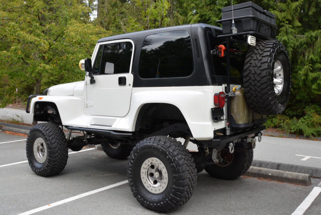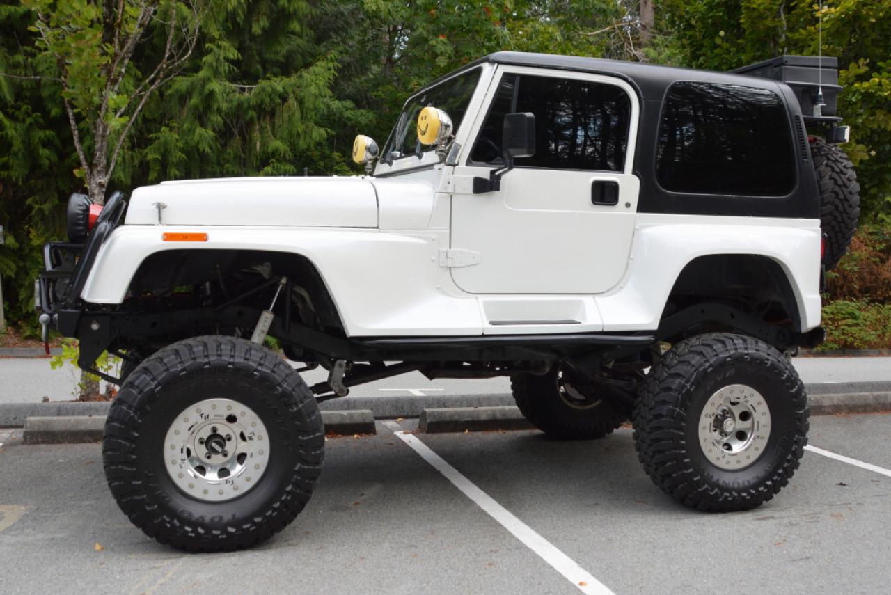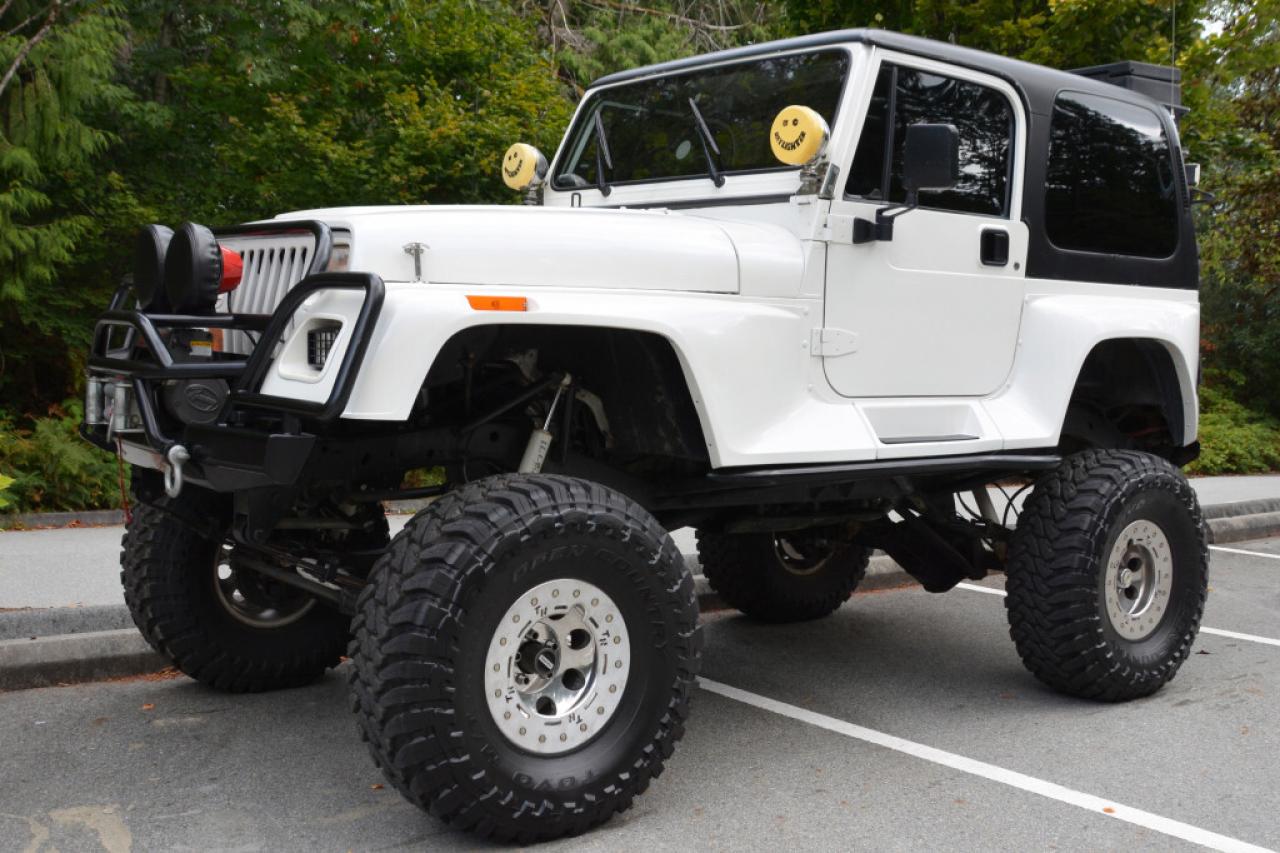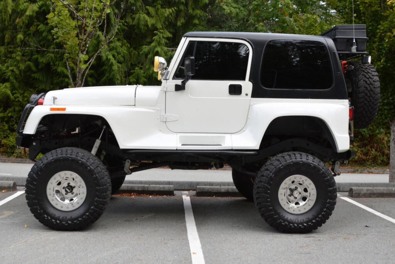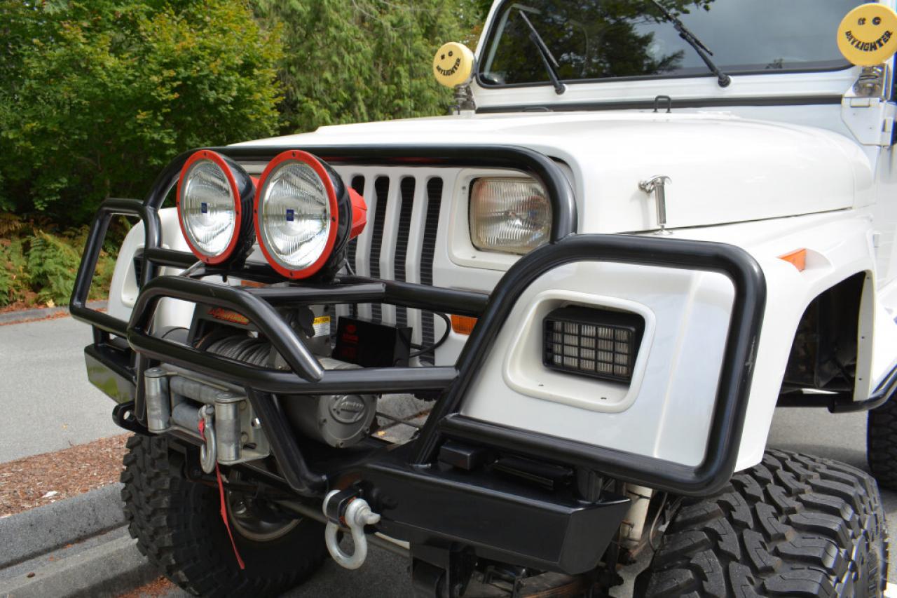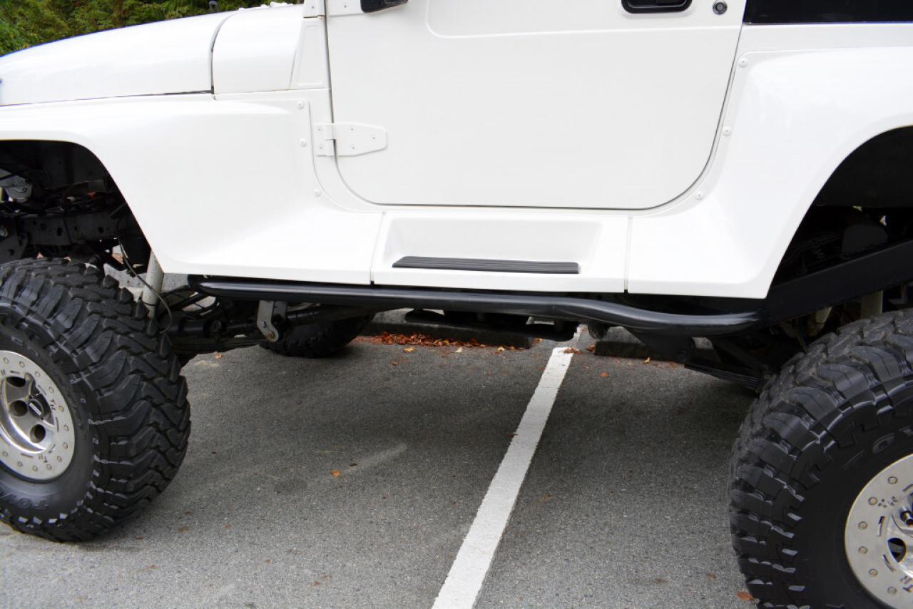 A local Jeep Wrangler YJ Renegade Lifted 4x4. Well equipped with Cloth seats with two-tone seat covers, Alpine CD deck, Aux input, Custom center console with downward firing subwoofer, Motorola CB radio, Passport radar detector, All weather floor mats, Steel front bumper and bull bar, Ramsey platinum 9500lb winch, Daylighter and Hella HID front off road lights, Hella rear off road lights, Steel rear bumper with trailer hitch, Dual Scepter 20L water containers, High level jack, Rock sliders, BeCool radiator, Dual batteries, ARB Air locking differentials with compact air compressor, Rancho in-cab shock air controller, Rancho Illusion shocks, Huge lift kit, 15 Mickey Thompson Classic wheels with 35 Toyo Open Country tires and Trailready TR beadlocks. 4.0L Inline 6 cylinder mated to a 5 speed manual transmission rated by the factory at 180hp / 220lb-ft. A 1 year warranty is included in the purchase price of this vehicle. Well maintained and just serviced. Leasing and financing available. All trades accepted.