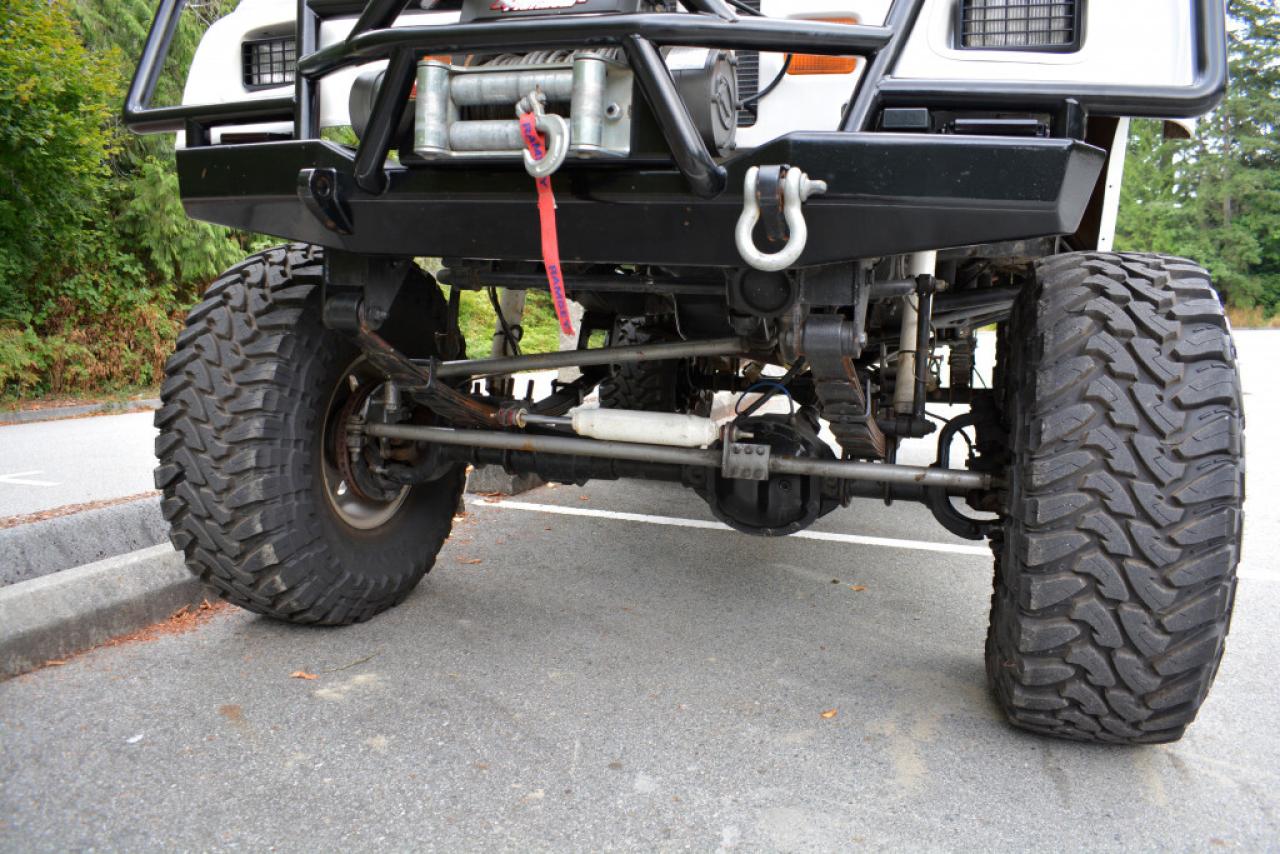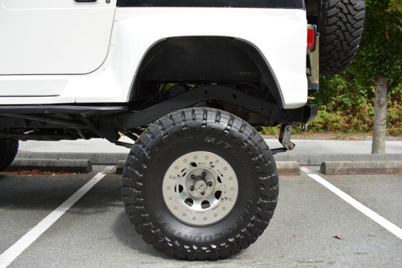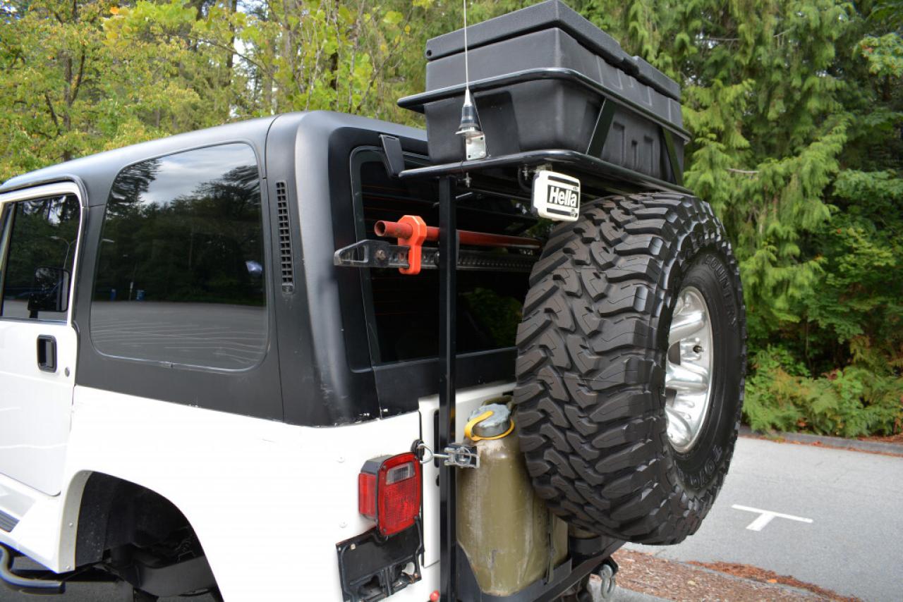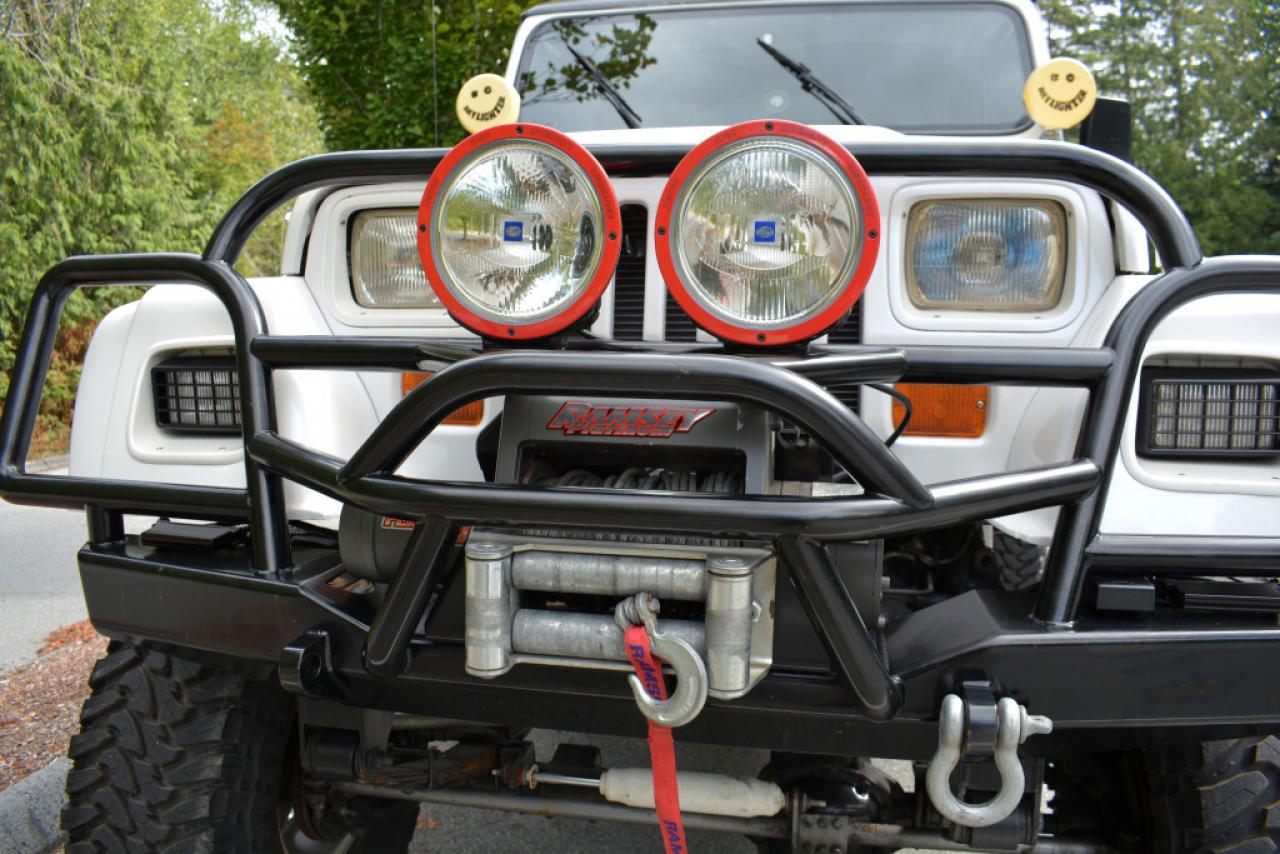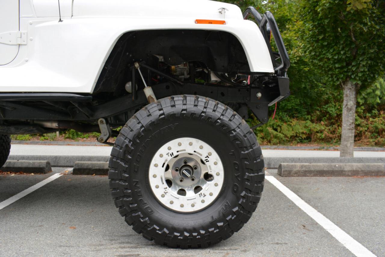 A local Jeep Wrangler YJ Renegade Lifted 4x4. Well equipped with Cloth seats with two-tone seat covers, Alpine CD deck, Aux input, Custom center console with downward firing subwoofer, Motorola CB radio, Passport radar detector, All weather floor mats, Steel front bumper and bull bar, Ramsey platinum 9500lb winch, Daylighter and Hella HID front off road lights, Hella rear off road lights, Steel rear bumper with trailer hitch, Dual Scepter 20L water containers, High level jack, Rock sliders, BeCool radiator, Dual batteries, ARB Air locking differentials with compact air compressor, Rancho in-cab shock air controller, Rancho Illusion shocks, Huge lift kit, 15 Mickey Thompson Classic wheels with 35 Toyo Open Country tires and Trailready TR beadlocks. 4.0L Inline 6 cylinder mated to a 5 speed manual transmission rated by the factory at 180hp / 220lb-ft. A 1 year warranty is included in the purchase price of this vehicle. Well maintained and just serviced. Leasing and financing available. All trades accepted.