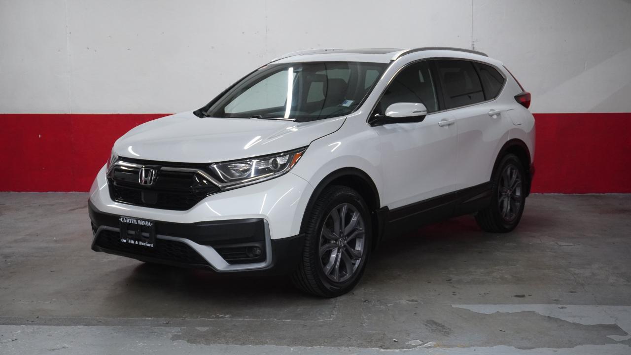 2020 CR-V SPORT AWD, PWR TAILGATE, RMT START, APPLE. THIS WHITE ON BLACK LEATHER/CLOTH COMBO 2020 HONDA CR-V SPORT HAS NO (0) ACCIDENTS. FRONT brakes are new. Rear brakes are at 6.5/10 mm. Front and rear tires are at 9/10 32nds. This 2020 Cr-v sport has bluetooth, remote start, backup and blindspot cameras, Apple Carplay, Android auto, sunroof, fog lights, alloy rims, pre collision mitigation, lane assist, adaptive cruise control, heated wheel, heated seats and many more features.