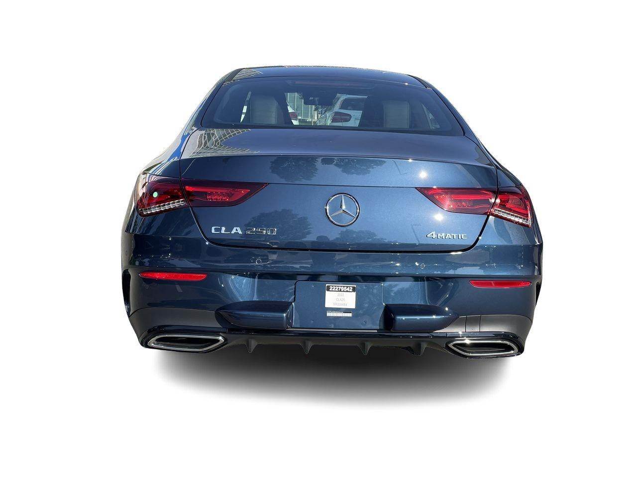 10.25" Central Media Display, 10.25" Digital Instrument Cluster, 360 Camera, Active Blind Spot Assist, Active Brake Assist w/Cross-Traffic Function, Active Distance Assist DISTRONIC®, Active Distance Assist DISTRONIC® (239), Active Emergency Stop Assist, Active Lane Change Assist, Active Lane Keeping Assist, Active Parking Assist, Active Speed Limit Assist, Active Steering Assist, Adaptive Highbeam Assist, Advanced Driving Assistance Package, Advanced LED High Performance Lighting System, Advanced Sound System, Ambient Lighting, Apple CarPlay, Auto-Dimming Rearview & Driver-Side Mirrors, Blind Spot Assist, Enhanced Stop & Go, Evasive Steering Assist, Exterior Power Folding Mirrors, Google Android Auto, Integrated Garage Door Opener, KEYLESS GO®, Live Traffic Information, Logo Projector, Map-Based Speed Adaptation, MB Navigation, MBUX Navigation Plus, Mirror Package, Navigation Package, Navigation Services, Night Package, Parking Package (P44), Parking Package (P47), Premium Package Lite, Smartphone Integration, Technology Package, Traffic Sign Assist, Vehicle Exit Warning, Wheels: 18" AMG 5-Twin-Spoke Aero Bi-Colour. Recent Arrival! 2022 Mercedes-Benz CLA CLA 250 Denim Blue Metallic 6-Speed Automatic 2.0L I4 DI Turbocharged 4MATIC® Certified. Certification Program Details: · 169+ Point Quality & Safety Inspection, Road-Tested, Star Certified Pre-Owned Warranty for up to 6 Years, 5-Day/600-Km Exchange Policy, 24/7, Personal Assistance, Trip Interruption, Coverage under six years old Fewer than 120,000 Km, CARFAX® Vehicle History Report Not every vehicle qualifies as a Mercedes-Benz Certified Pre-Owned (CPO). First, it must meet strict criteria that ensure its structure and appearance are up to brand standards and undergo robust interior and exterior inspections. We provide all recall campaigns and completed standard services, and the tires meet Mercedes-Benz factory standards. Buy and drive confidently, knowing your vehicle looks and performs like new. Call us today to book a test drive. We want your vehicle! If you're selling or considering a trade-in, we offer a quick, easy experience with competitive cash value. We can also help to pay out liens. Are you looking for financing options? We work with every major lender to secure the best solution for your needs. Plus, customers who lease via Dilawri Leasing are eligible to receive a reduction of up to 0.25% off existing rates.* Canada's largest automotive group, Dilawri, proudly offers outstanding new and pre-owned products and memorable customer service. The company's network represents 38 automotive brands at 82 franchised dealerships in Canada and the US. Dilawri is committed to leadership in business and the communities it serves. Since 2002, the Dilawri Foundation has contributed millions of dollars to charitable causes. Legal * © Dilawri Group of Companies. Offer provided through Dilawri LeasingTM on approved credit. An up to 0.25% rate reduction is available on Dilawri Certified pre-owned vehicles only. The customer will receive a 0.25% reduction on lease or finance rates currently available through Dilawri Leasing to a minimum of 0% APR. Some conditions apply. Contact your local Dilawri franchised dealership for details. Discover Your Next Vehicle at Mercedes-Benz Vancouver – Where Quality Meets Confidence. With over 50 years of serving the Vancouver community, Mercedes-Benz Vancouver is your trusted source for premium used vehicles. We're proud to be named one of AutoTrader's Best Price Dealers of 2024, a reflection of our commitment to fairness, transparency, and outstanding value. No Surprises, Just Great Pricing We use live market data to ensure every car is priced to sell, with no additional fees or gimmicks. What you see is what you pay — just add taxes. Our advertised price includes all fees up front.