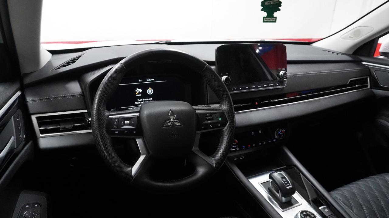 2024 OUTLANDER GT 7 PASS, GPS, LEATHER. BEAUTIFUL WHITE ON BLACK LEATHER MITSUBISHI OUTLANDER GT AWD WITH BALANCE OF 10 YEAR OR 160,000 KMS, WHICHEVER COMES FIRST POWERTRAIN WARRANTY. 1 OWNER WITH NO ACCIDENTS. THIS 2024 Outlander gt comes very well equipped with leather seats, heated seats and mirrors, 7 passenger seating, panorama sunroof, rear passenger window sunshades, gps, bose sound system, front and rear pre collision mitigation, rear cross traffic alert, front and rear backup sensors, heads up display, active lane assist, fog lights, power driver's seat with memory and too many more features to list. Amazing balance of warranty, low kms, no accidents and great trim level makes this car an easy choice! book your test drive asap.
