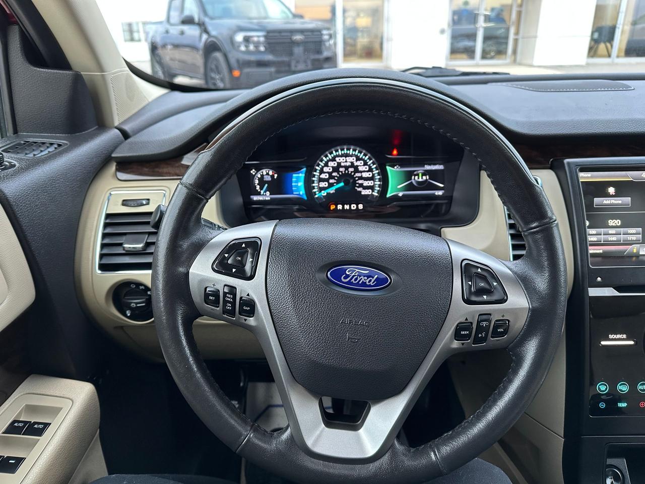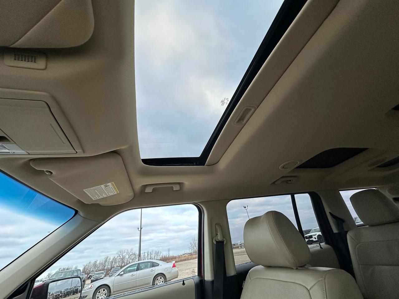 2015 Ford Flex, 3.5L V6, ONLY 81,715 kms! Includes active park assist, adaptive cruise, heated steering wheel, power tilt/telescoping steering wheel, power third row seat, 10 way power heated/cooled front seats, panoramic roof , navigation and more! Come down for a test drive or give us a call for more information!
