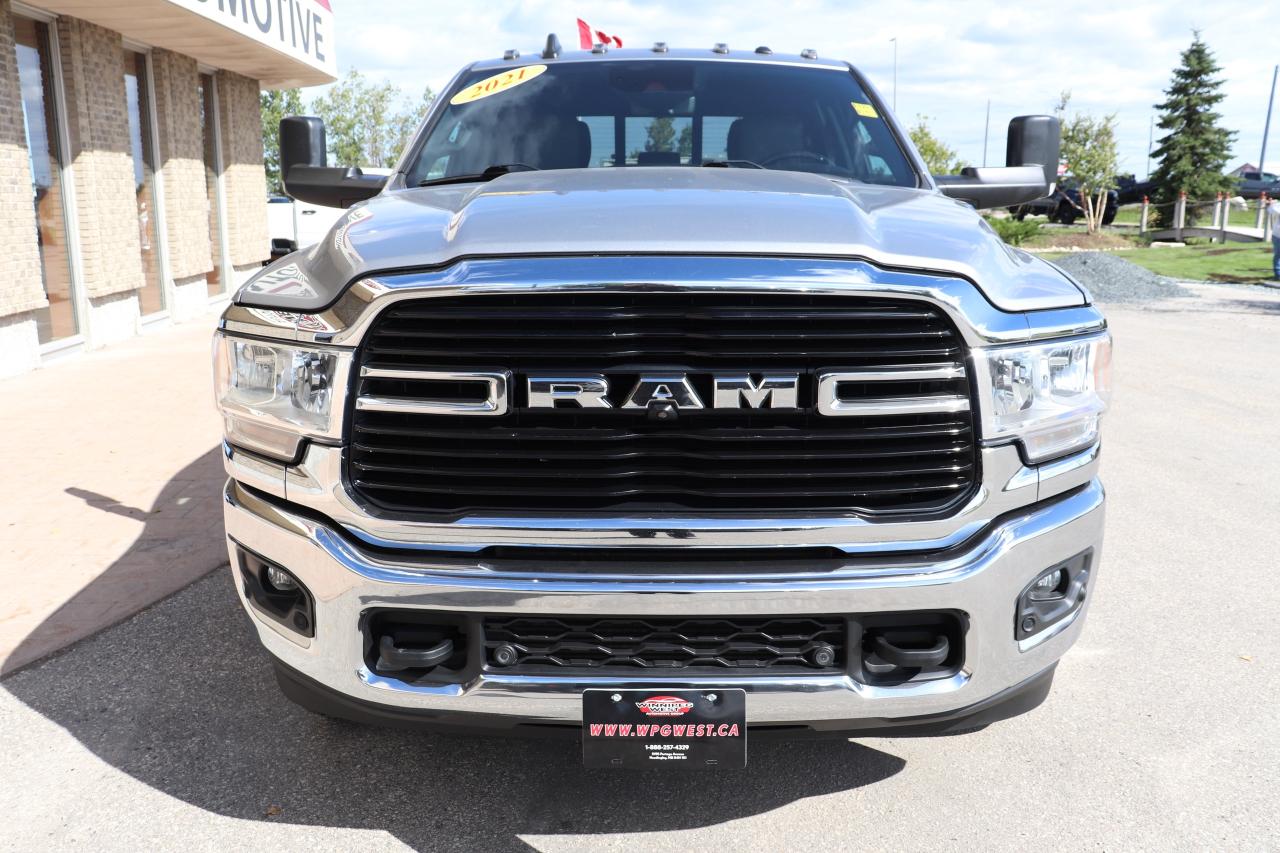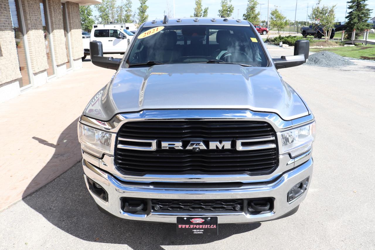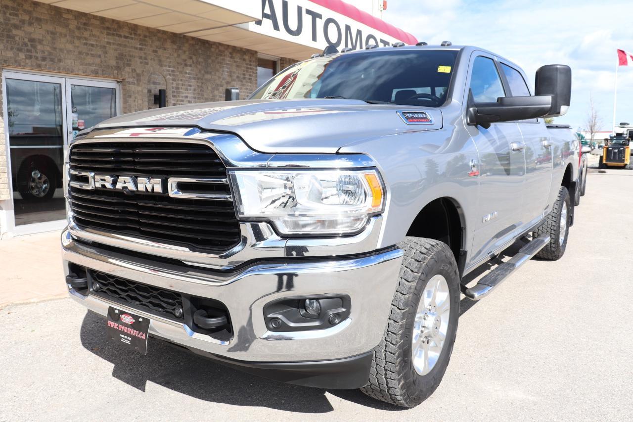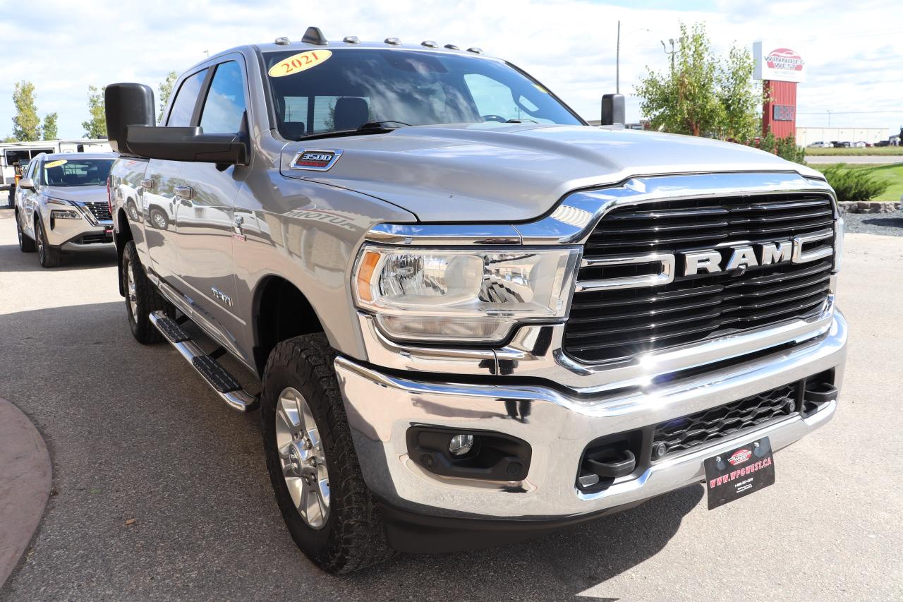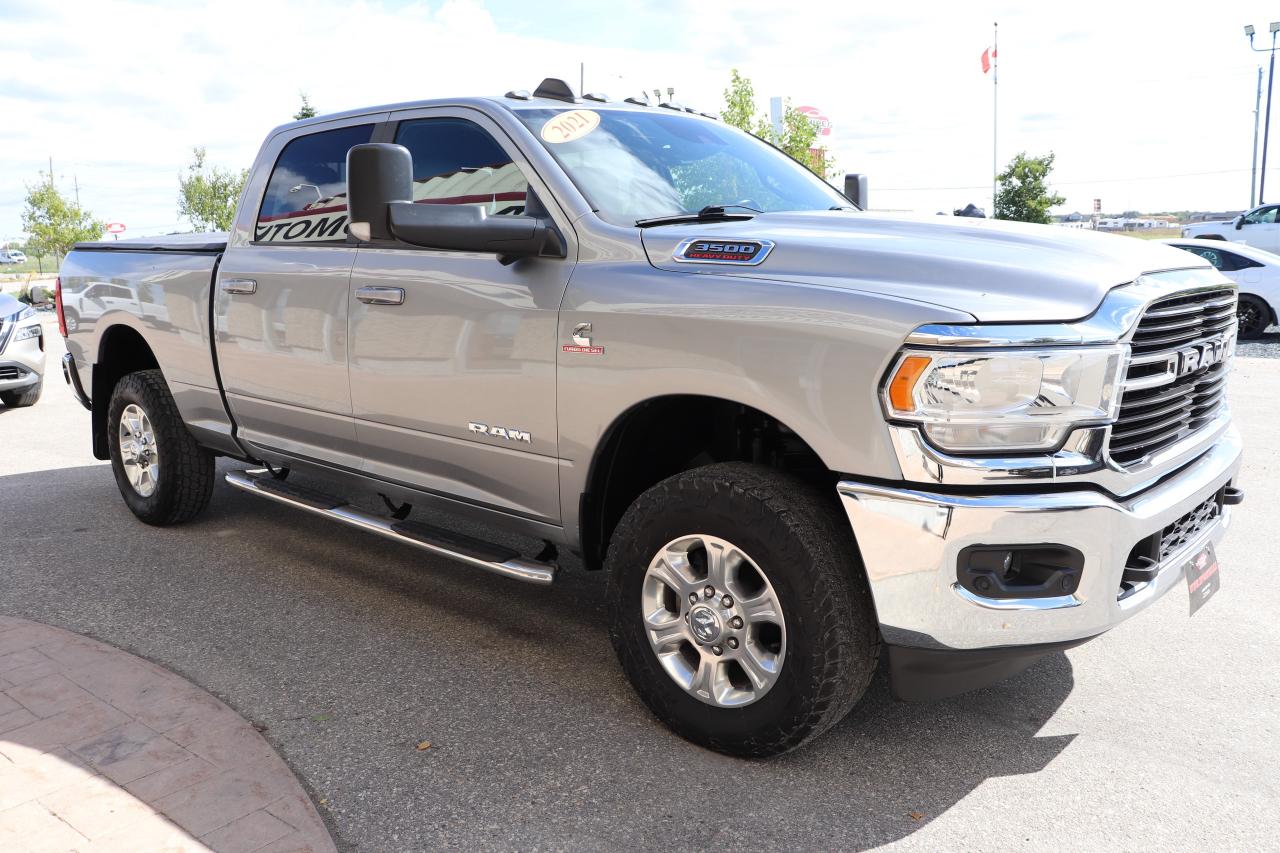 NOT THE AVERAGE CUMMINS!! STILL AS NEW HARD-TO-FIND TOTALLY LOADED INCLUDING ADAPTIVE CRUISE, LANE DEPARTURE AND THE 6.7L HIGH OUTPUT CUMMINS DIESEL WITH 1075FT/LBS OF TORQUE MATCHED TO THE HEAVY DUTY AISIN 6-SPEED TRANSMISSION & 4X4, VERY WELL SERVICED WESTERN CANADIAN TRUCK! THIS TRUCK IS WELL EQUIPPED & VERY SHARP NEW GENERATION 2021 RAM 3500 BIG HORN CREW CAB LEVEL B EQUIPMENT GROUP WITH 6.7L HO CUMMINS WITH MASSIVE 420HP/1075 TQ!!! - LOADED WITH OPTIONS, VERY CLEAN AND READY TO WORK!!
