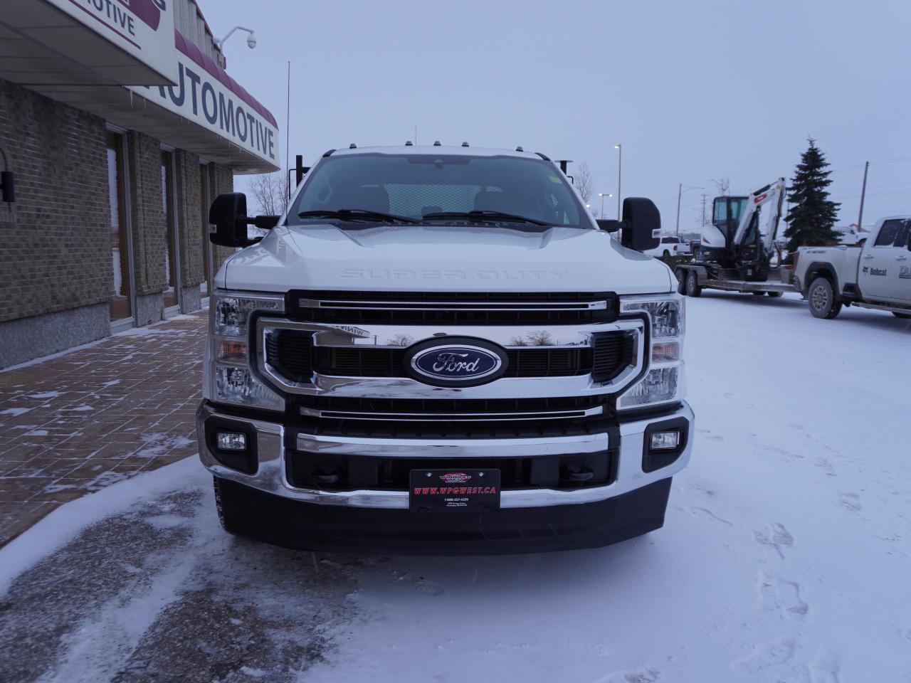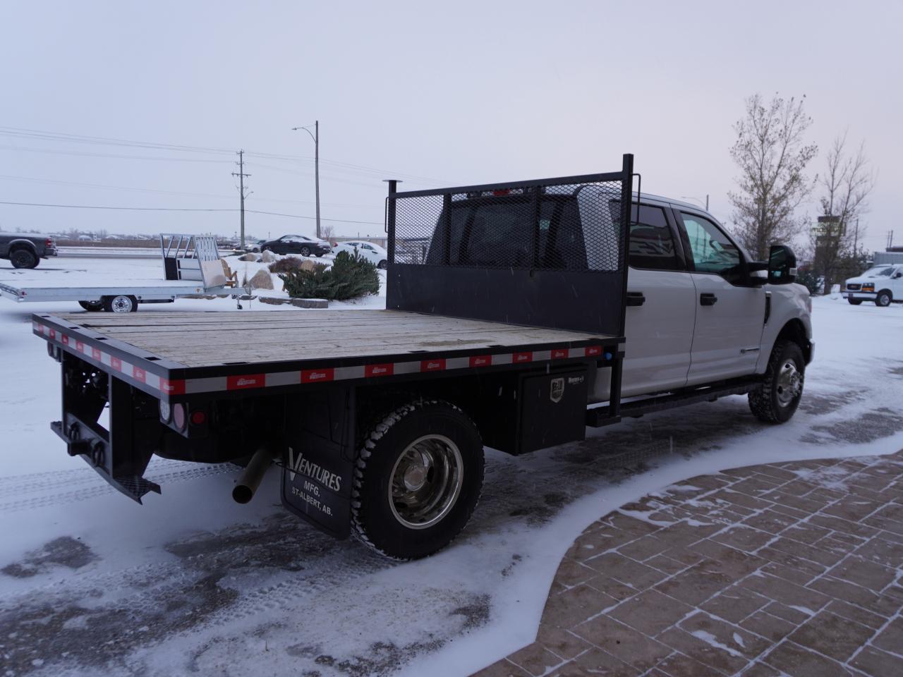VERY LOW KMS AND GREAT VALUE. CLEAN WESTERN CDN HISTORY! THIS FLAT DECK TRUCK IS READY FOR ALL YOUR HD WORK NEEDS, AMAZINGLY VERSATILE FOR SO MANY THINGS! SAVE BIG OVER NEW TRUCK COST PLUS THE FLAT DECK UPGRADES WITH THIS HARD-TO-FIND CREW CAB 4X4. These trucks are so versatile you will wonder why you didn't buy a flat deck sooner! This 2022 Ford F-350 Crew Cab XLT PREMIUM 4X4 is great for all your HD work needs plus you can carry the whole crew with you. Well Equipped with the right options make this the right truck including the, loaded with all the right options and more including the work/tow ready 6.7L POWERSTROKE DIESEL (475hp / 1050 lb-ft tq), The all -new 10-speed automatic transmission and Auto 2 stage 4x4 with locking rear differential. Options include air, tilt, cruise, PW, PL, digital instrument cluster, remote entry, Power 6 passenger seating, SYNC audio with AM/FM/AUX/USB and Satellite input, Bluetooth for phone and media, transfer case skid plates, HD tow package with Ext tow mirrors & brake controller, tow hooks plus so much more! The Heavy-Duty flat-deck includes a headboard, stake pockets and tie down supports and it is gooseneck ready making it ready for highway, landscaping or just about any construction project you can think of. This is a work ready truck that's Loaded with options, clean and great looks with Premium Aluminum Alloy OEM Wheels with brand NEW A/T Tires.