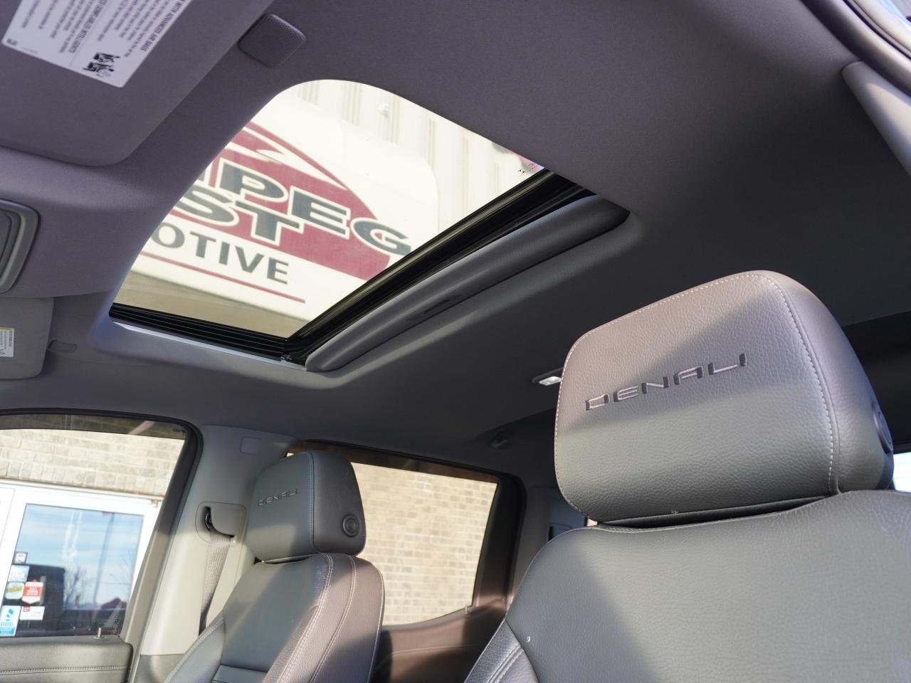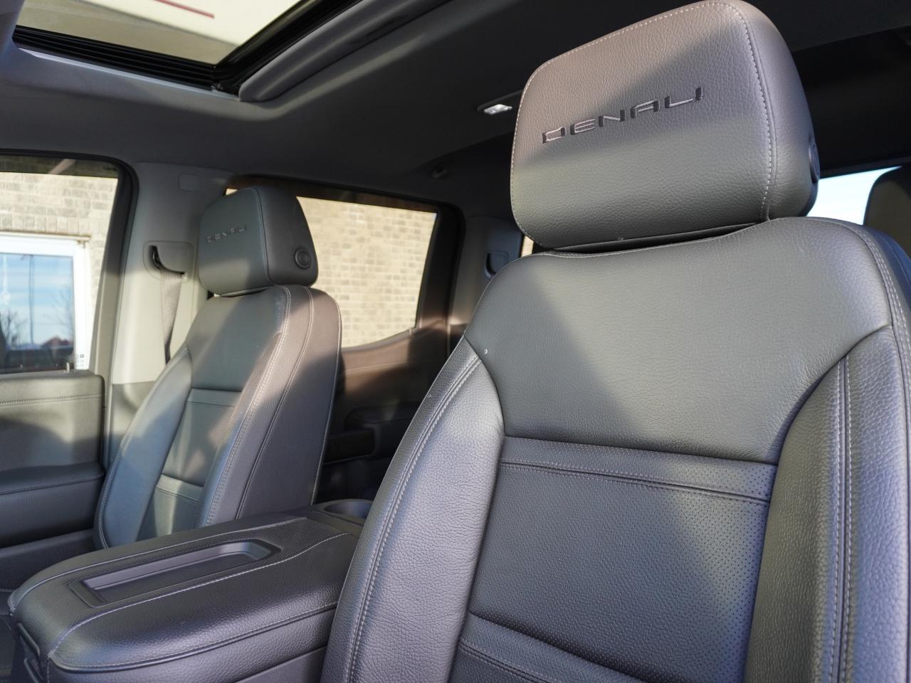 VERY LOW KMS - HUGE VALUE - STUNNING AND SPOTLESS ONYX BLACK ON BLACK, DEALER SERVICED, TOP OF THE LINE AND COMPLETELY LOADED WITH ALL OPTIONS 2021 GMC SIERRA 1500 DENALI 6.2L V8 4X4 W/10-SPEED TRANSMISSION! EQUIPPED WITH EVERYTHING YOU WOULD WANT AND MORE IN A TRUCK, FROM HEATED AND COOLED SEATS TO SUNROOF, THIS TRUCK HAS IT ALL! OF COURSE FACTORY REMOTE START, DRIVER ALERT PKG WITH BLIND SPOT, LANE DEPARTURE AND EVEN MUCH MORE!