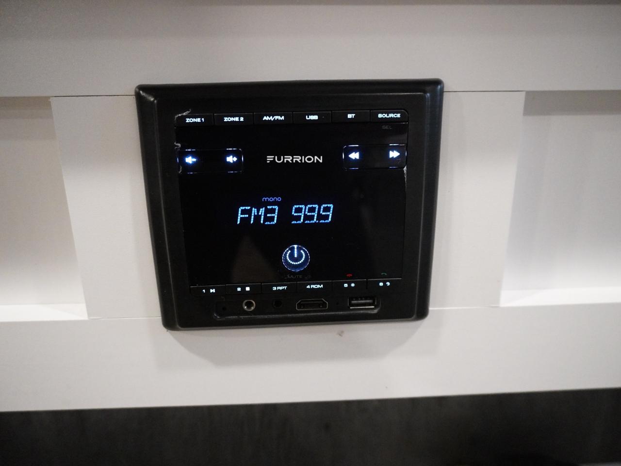 Entertainment Ready – Bluetooth multimedia stereo, indoor/outdoor speakers, flat screen TV.