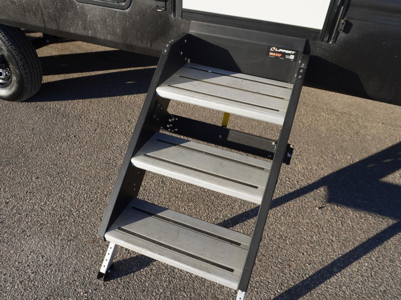 Luxury Comforts – Faux leather seating, upgraded solid steps, built-in vacuum system.